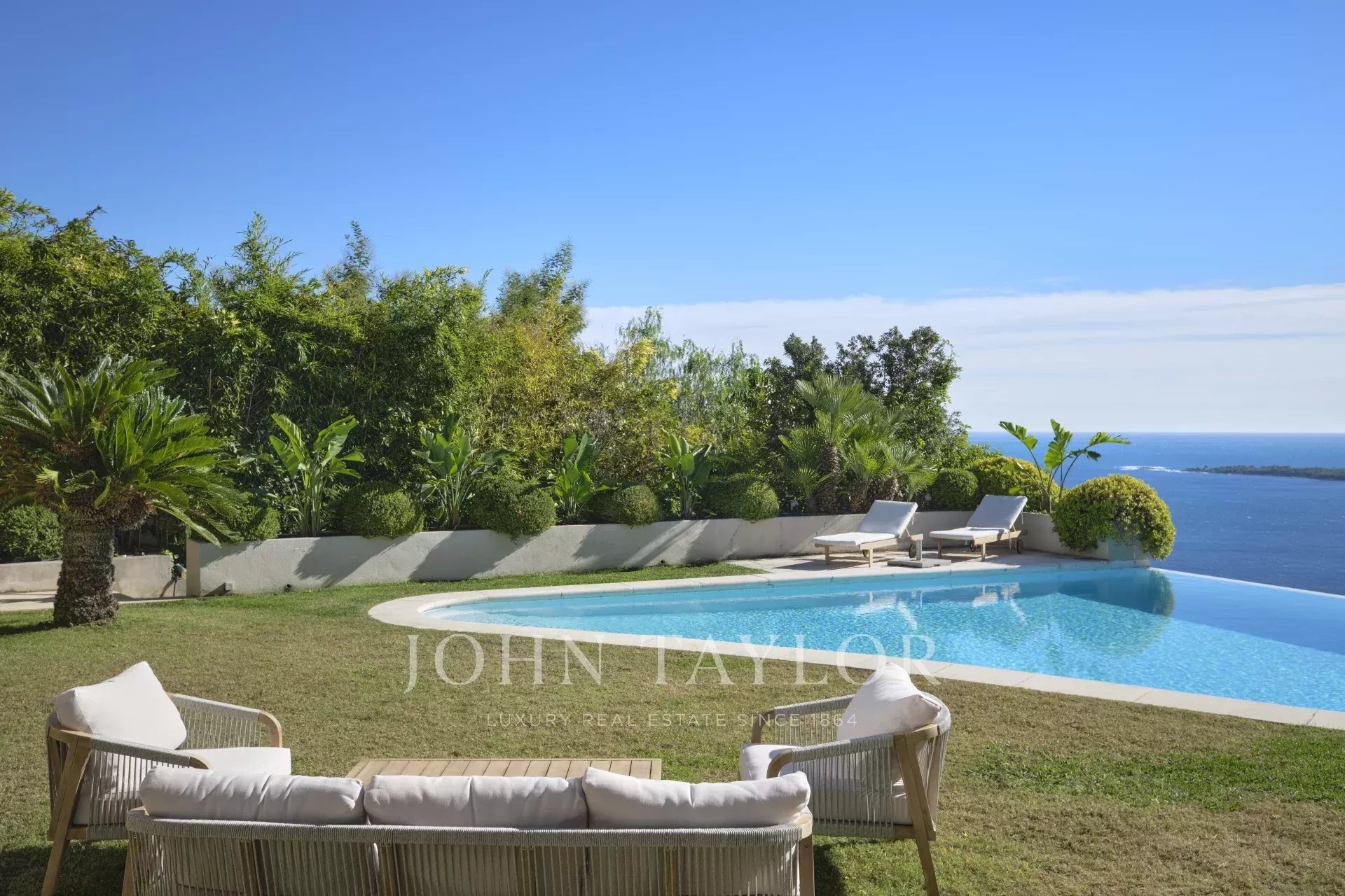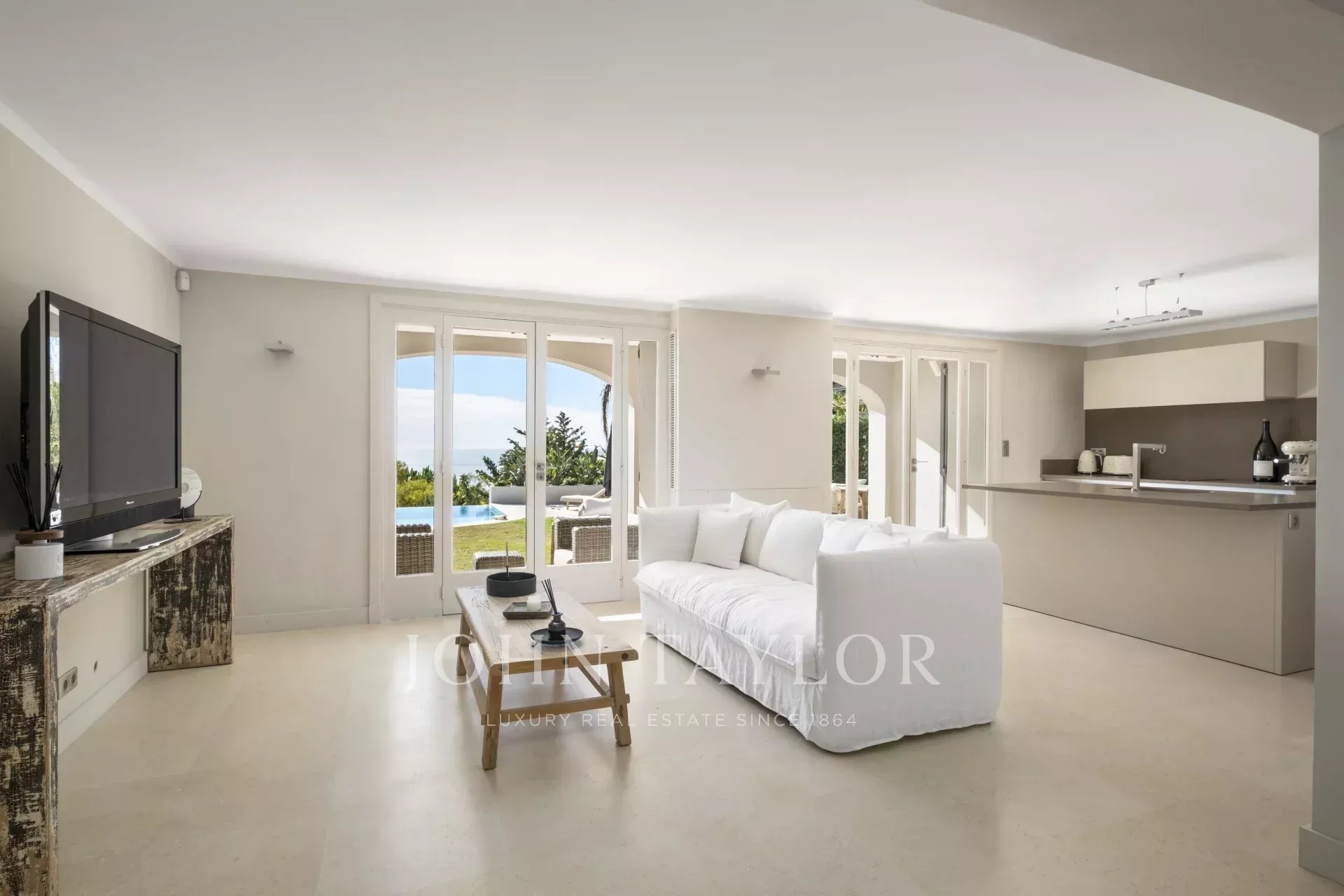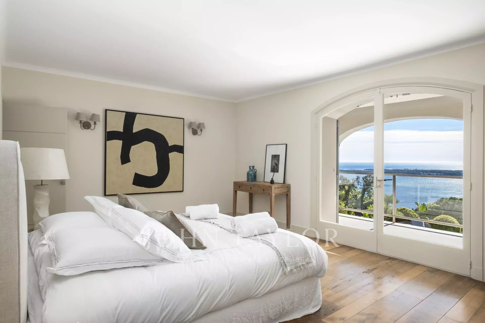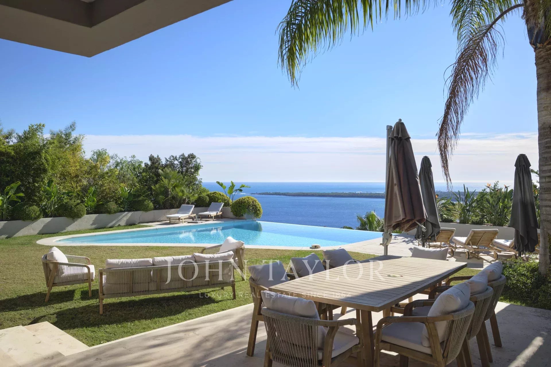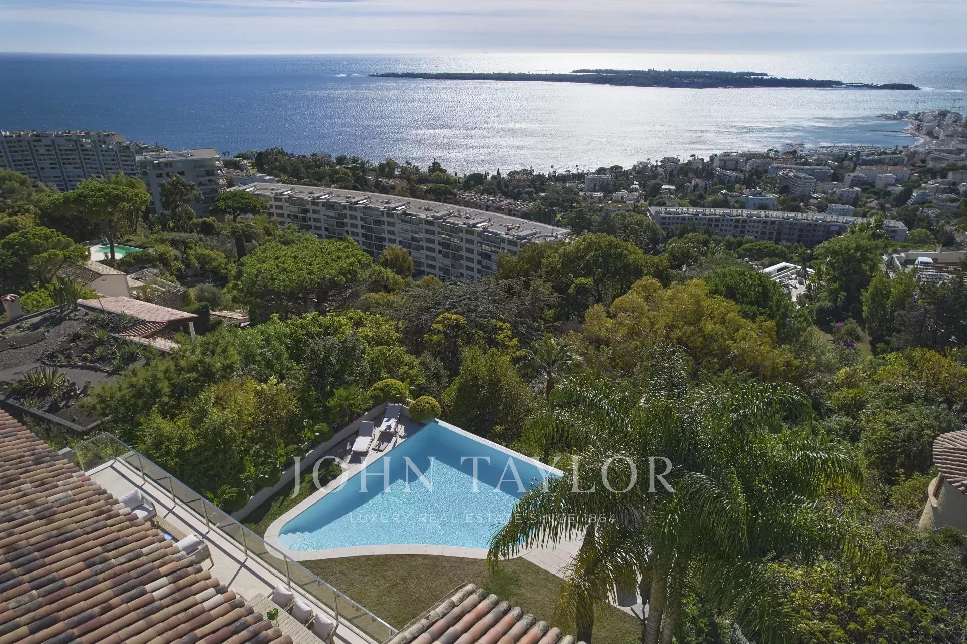 Situada no bairro Californie, oferece vistas excepcionais sobre o Cap d'Antibes e l'Estérel a partir de todas as divisões da casa.