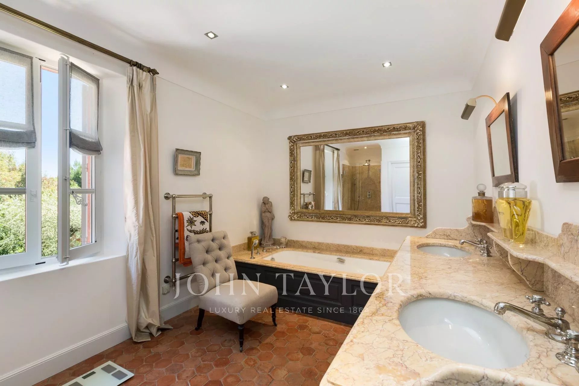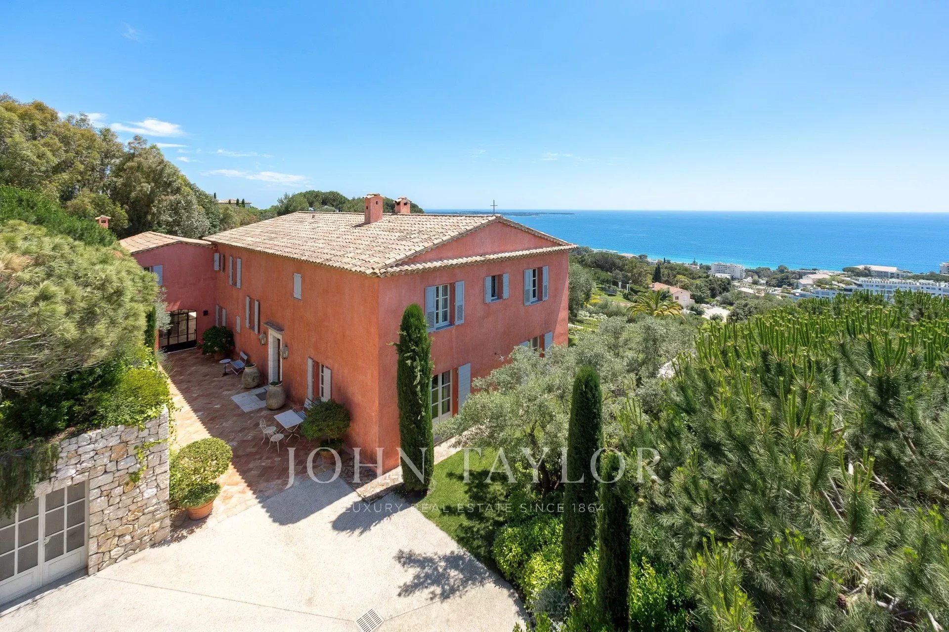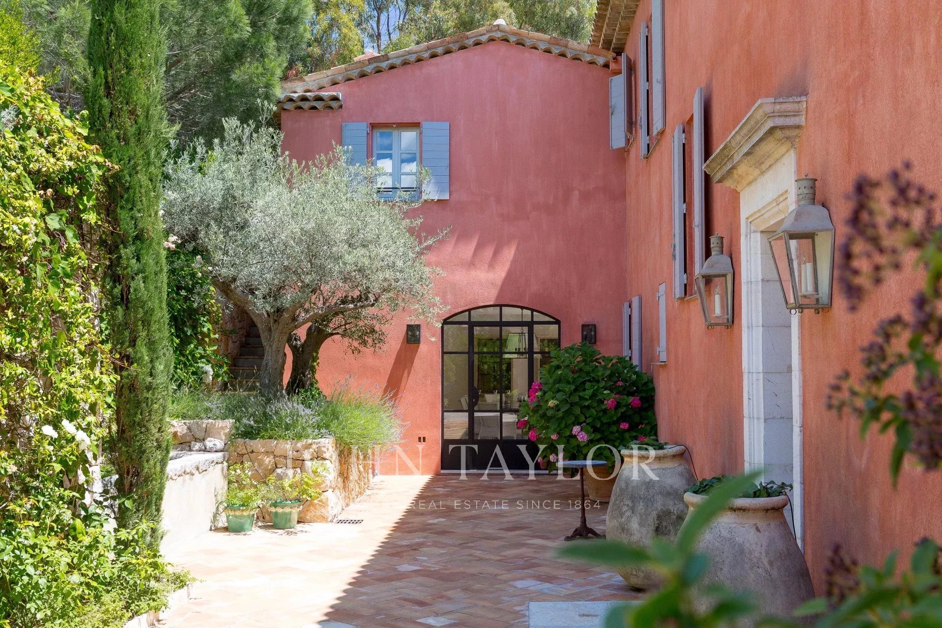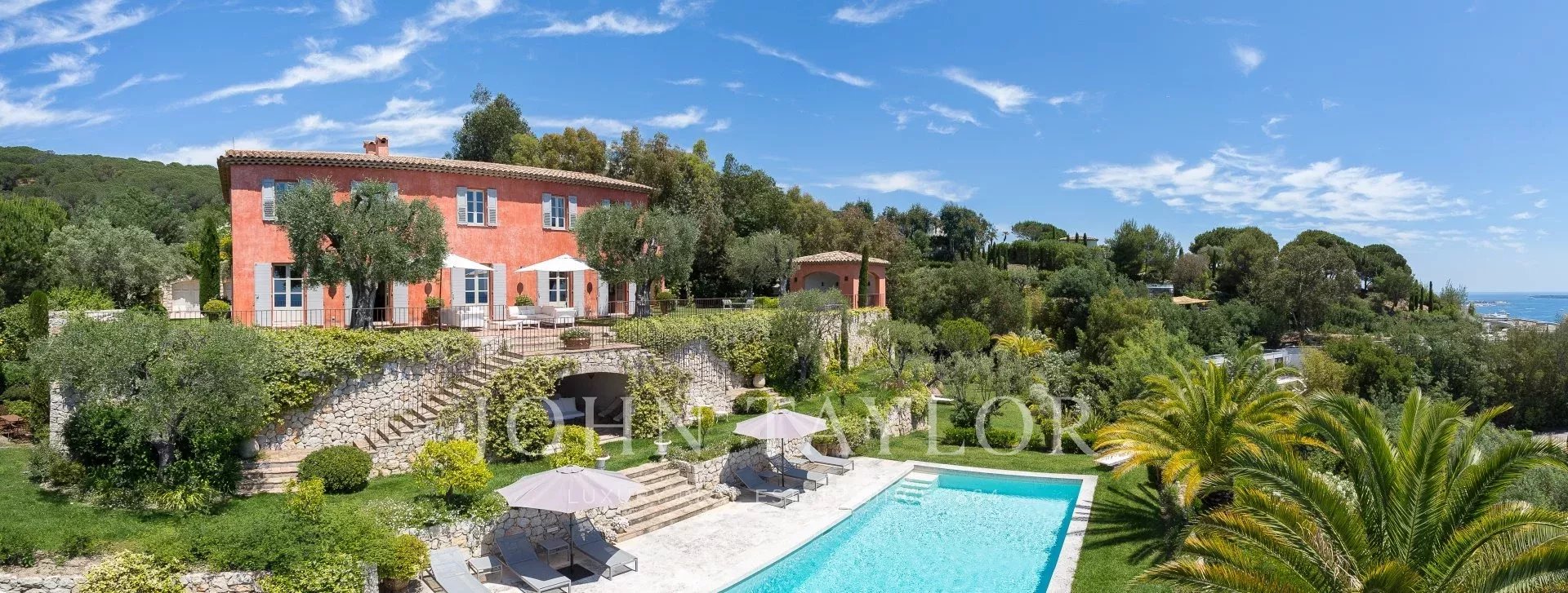 Situada no bairro de Croix des Gardes, a poucos minutos do centro de Cannes, esta grande casa Bastide (500 m2) goza de uma bela vista para o mar sobre a baía de Cannes e as montanhas Esterel, num terreno de 4.400 m2.