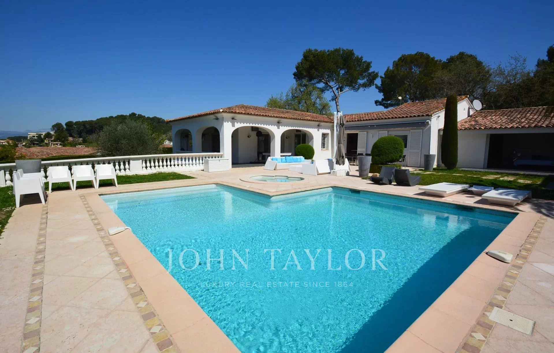 Nas alturas de Cannes, numa propriedade tranquila e segura, uma propriedade de 400 m2 com ar condicionado no coração de 3.000 m2 de terreno ajardinado.