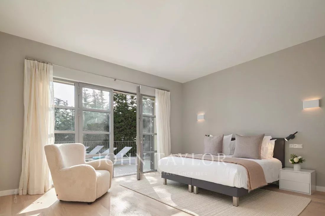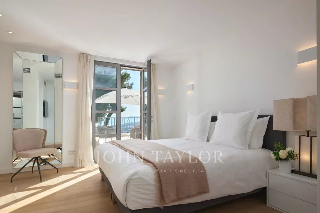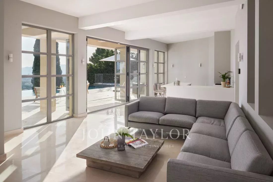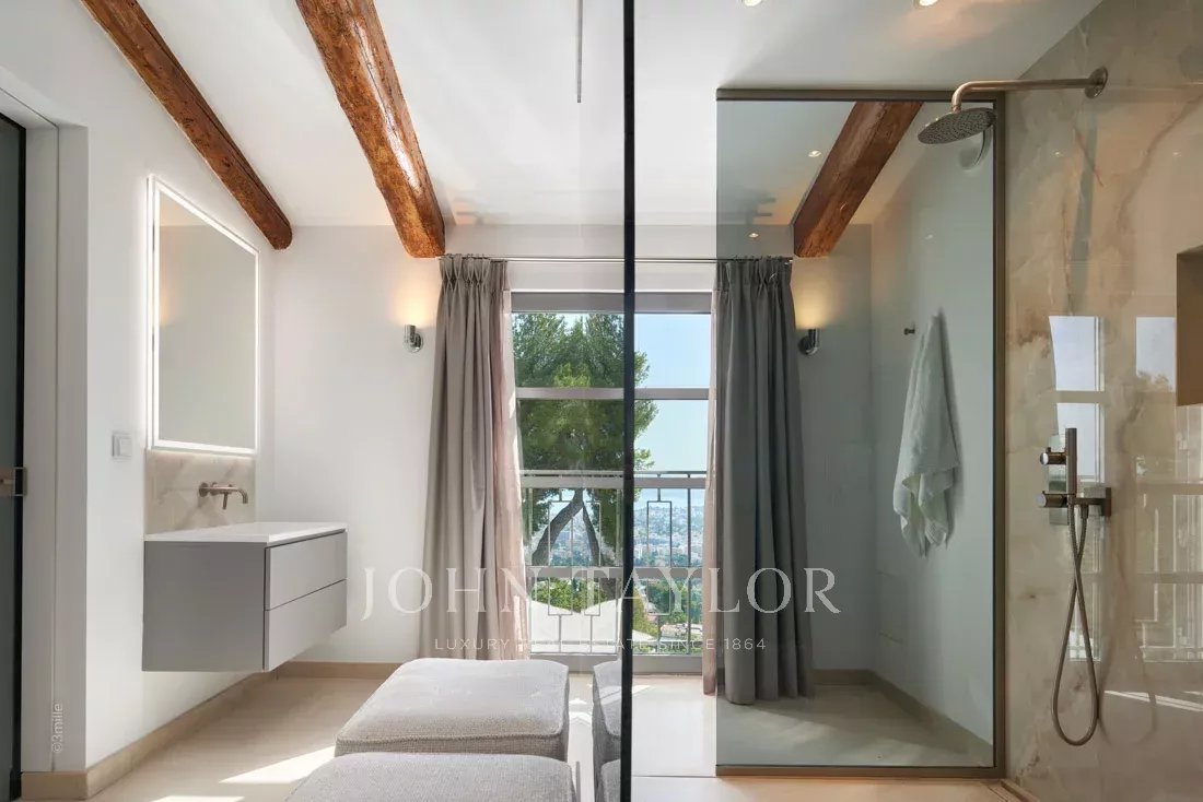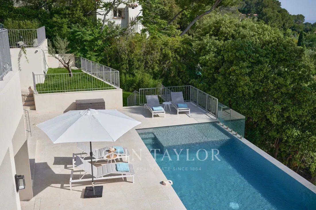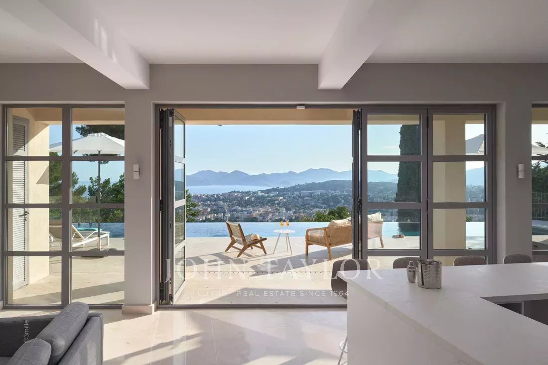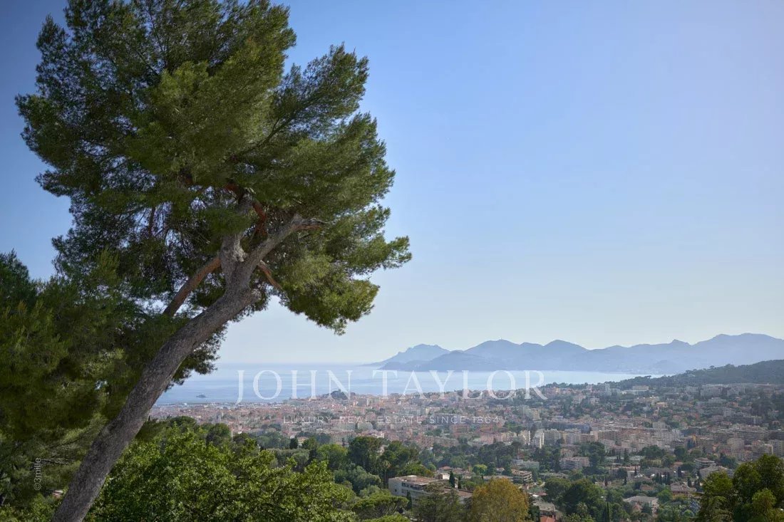 Situada nas colinas acima de Cannes, esta bonita moradia, totalmente renovada com um nível muito elevado, tem cerca de 340 m² e está inserida em jardins paisagísticos com cerca de 2.300 m² e uma piscina. Oferece salas de receção espaçosas e vistas panorâmicas sobre a baía de Cannes, as montanhas Esterel e o mar.