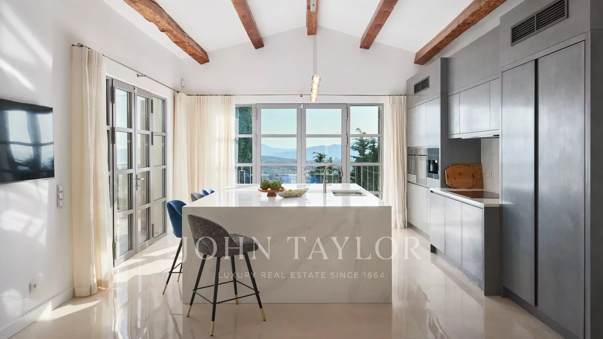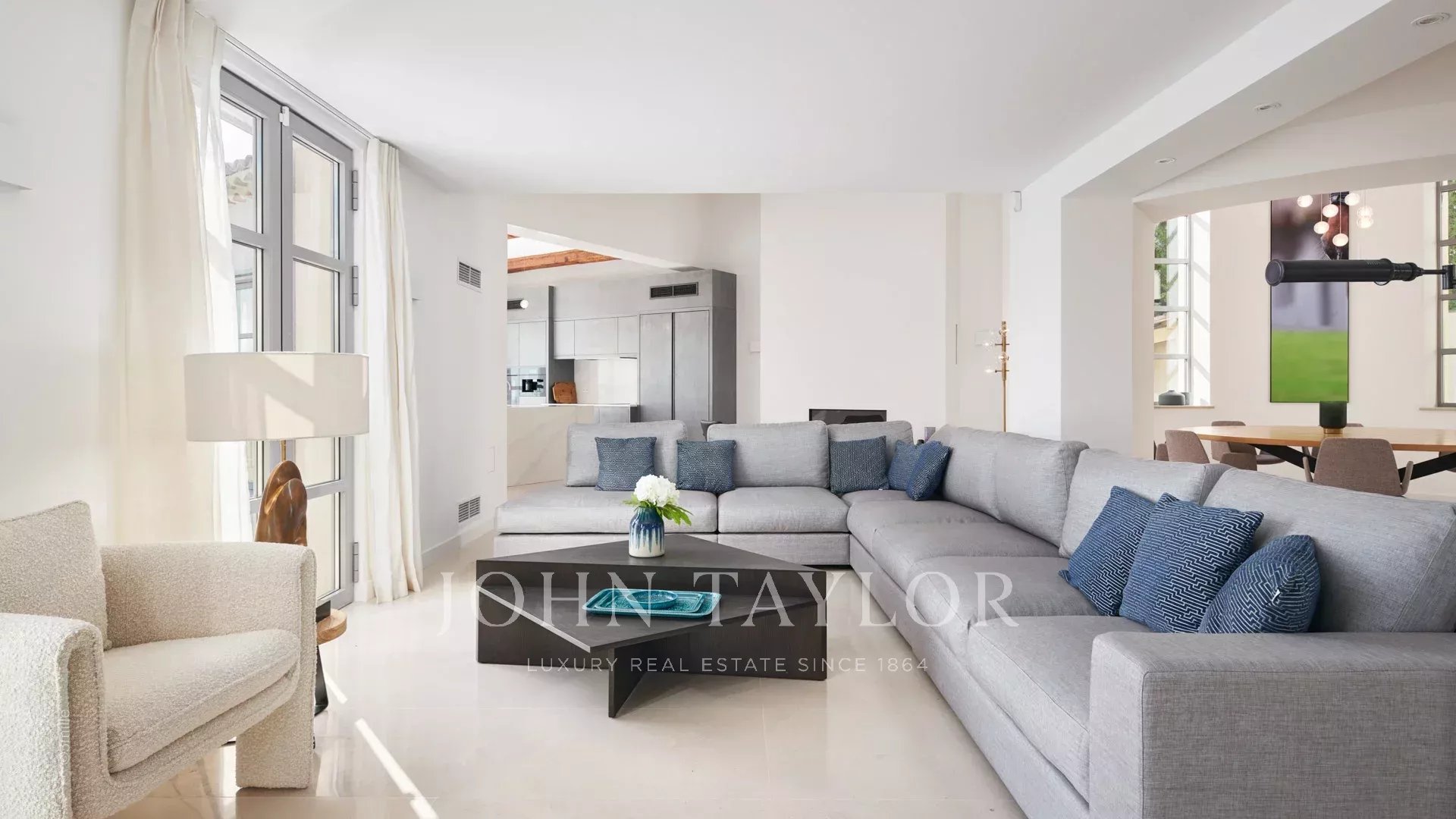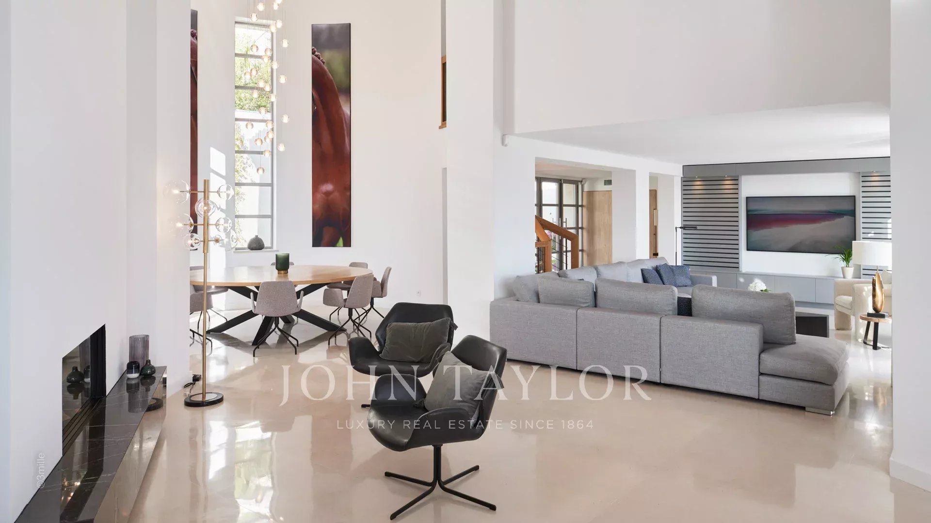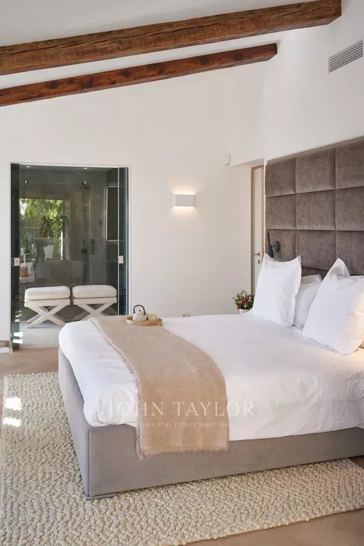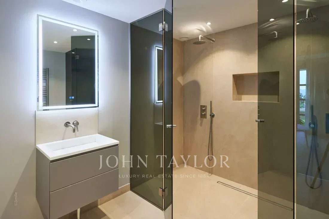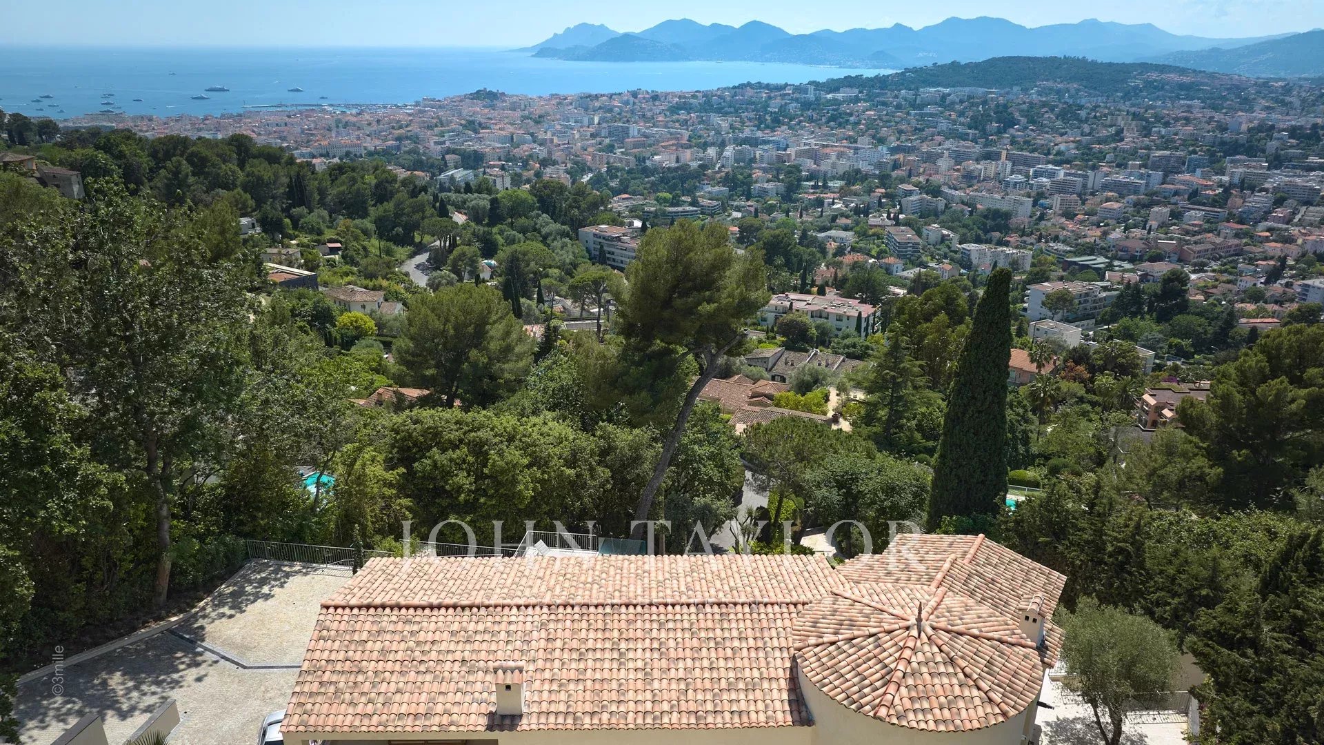 Situada nas colinas acima de Cannes, esta bonita moradia, totalmente renovada com um nível muito elevado, tem cerca de 340 m² e está inserida em jardins paisagísticos com cerca de 2.300 m² e uma piscina. Oferece salas de receção espaçosas e vistas panorâmicas sobre a baía de Cannes, as montanhas Esterel e o mar.