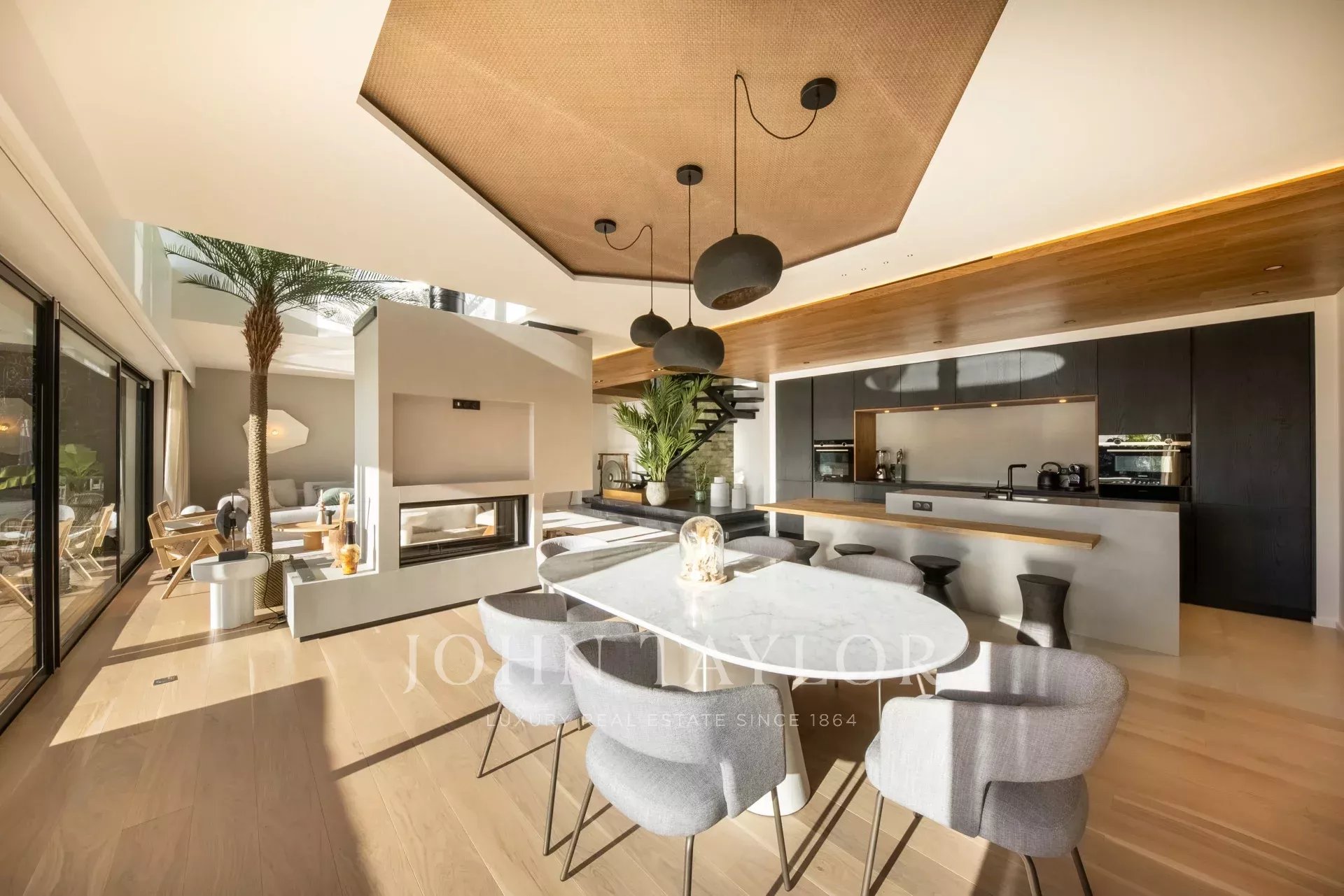 Perto do centro de Cannes, num bairro tranquilo de Le Cannet, esta moderna moradia de dois pisos com 220 m2 apresenta caraterísticas soberbas e uma decoração zen e minimalista.