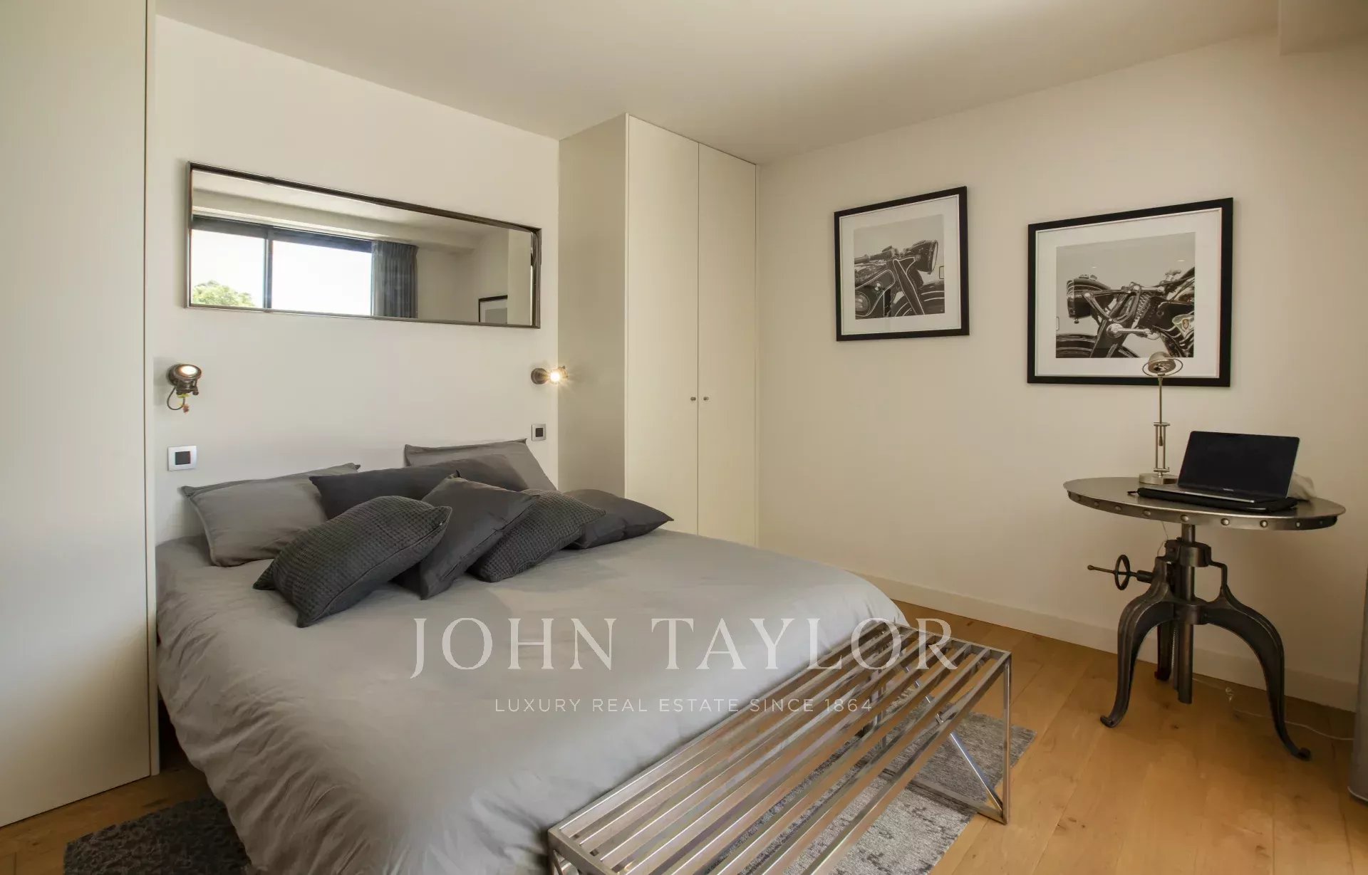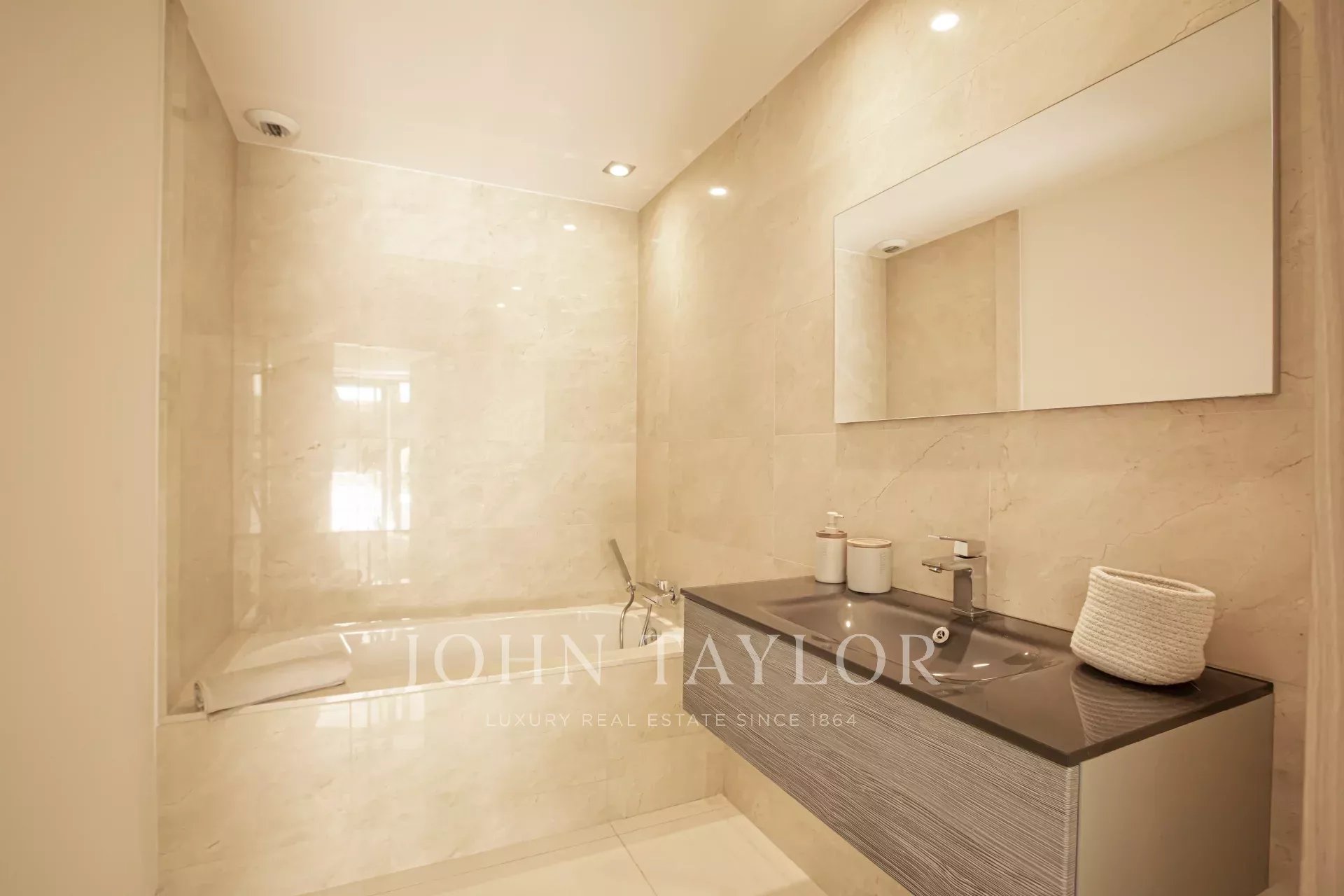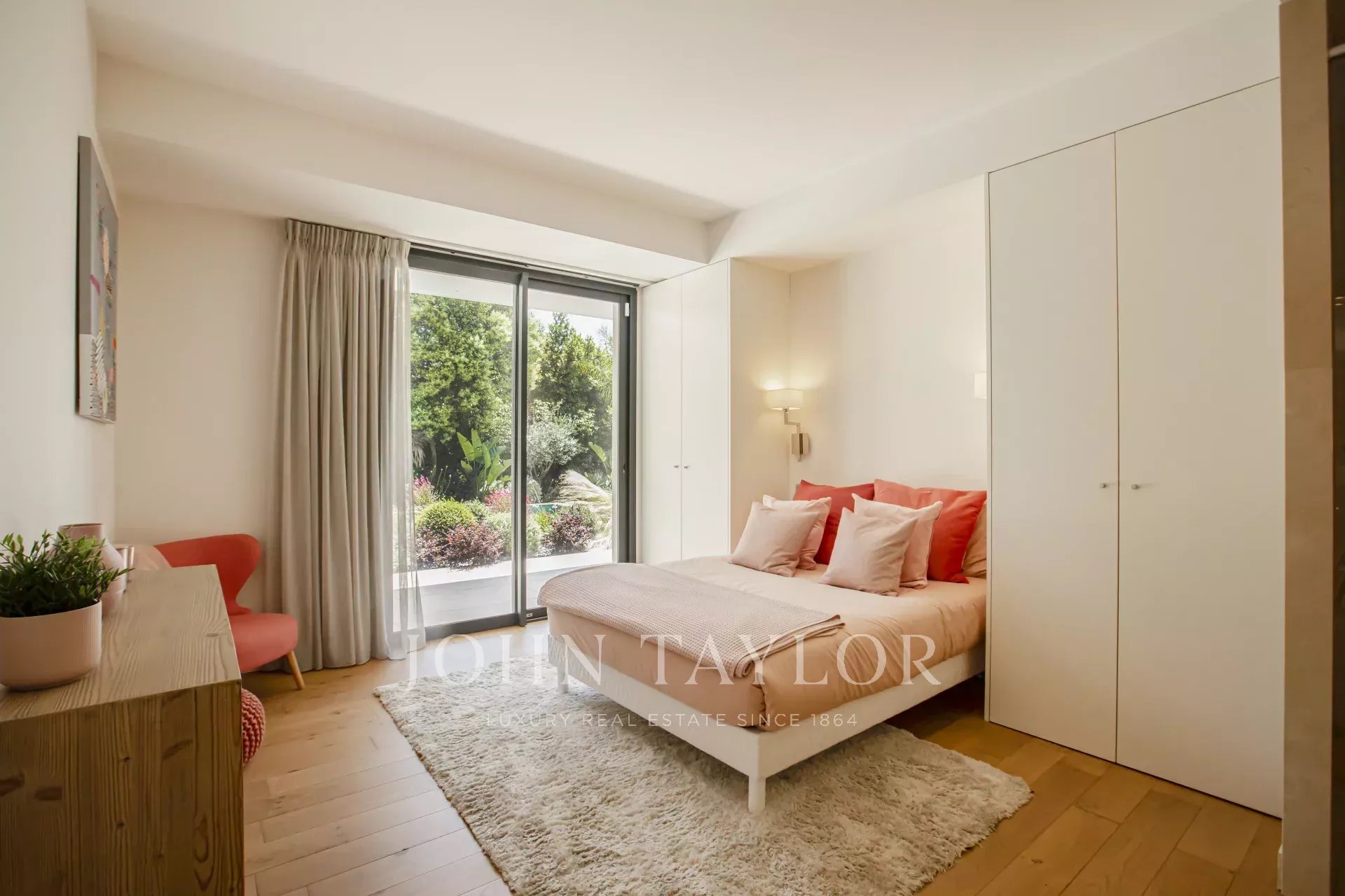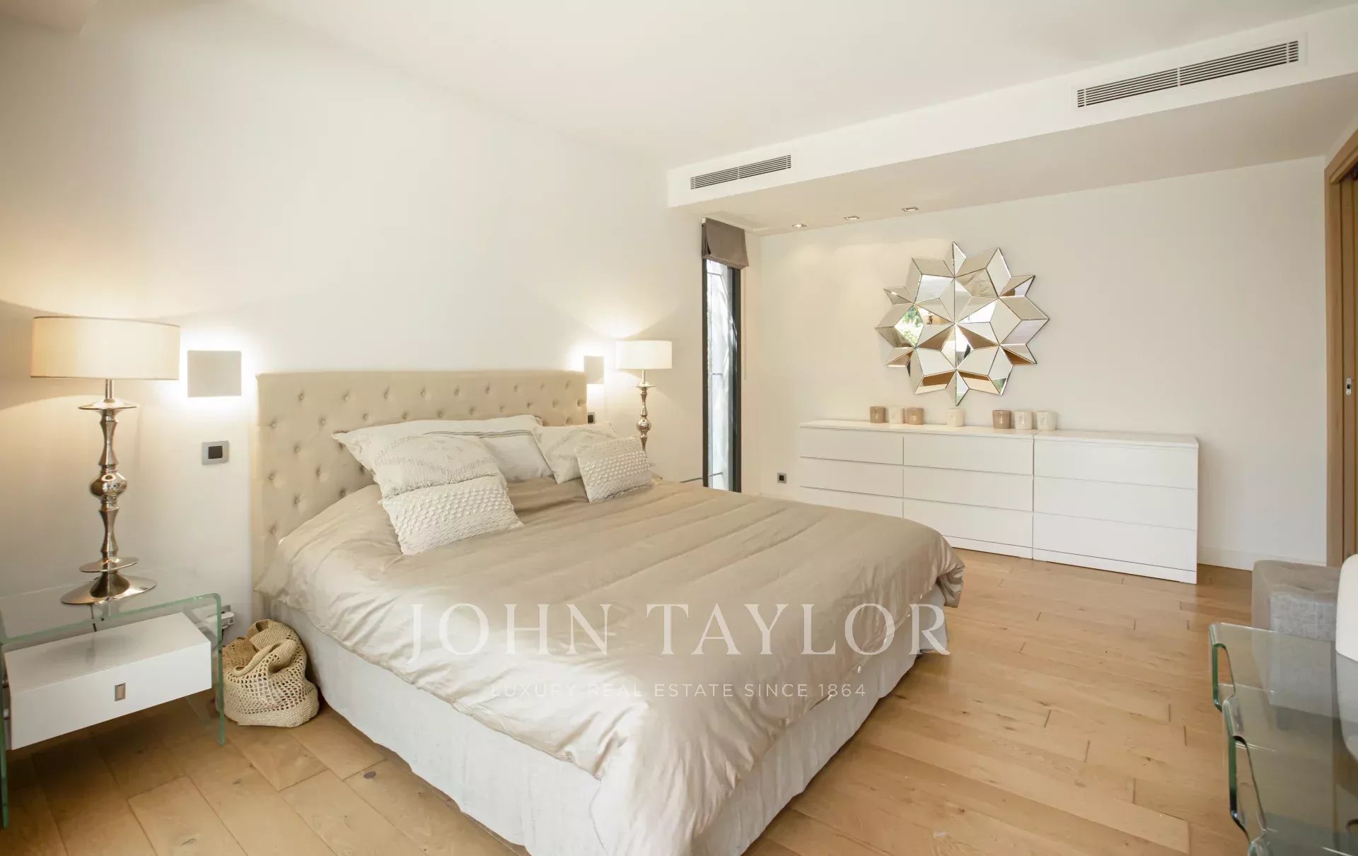 Nas alturas de Cannes, numa zona residencial perto da antiga aldeia de Le Cannet, bela moradia contemporânea com ar condicionado, 240 m2 de área de habitação, inserida em 1.374 m2 de terreno arborizado e exótico.