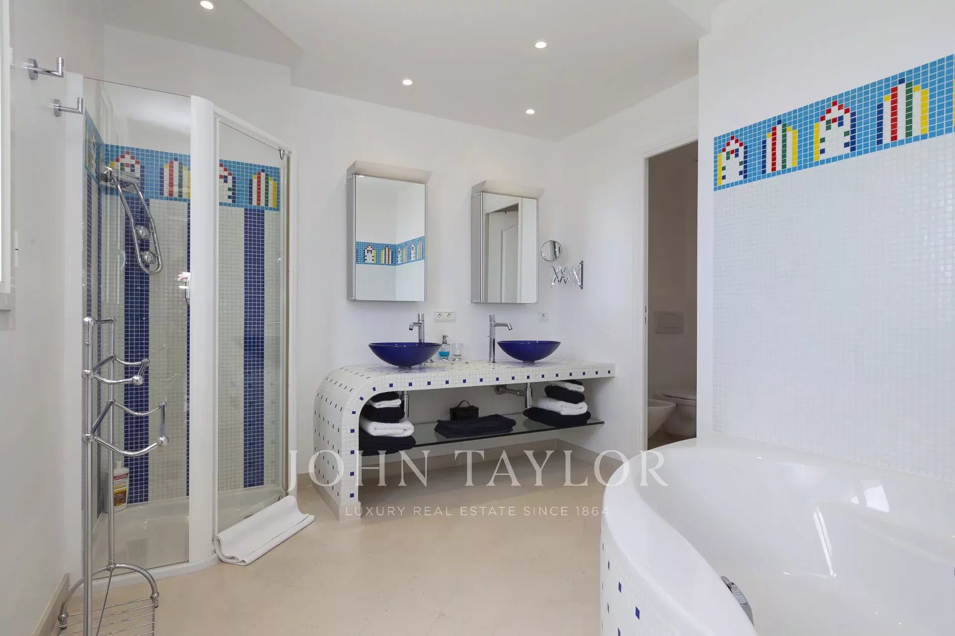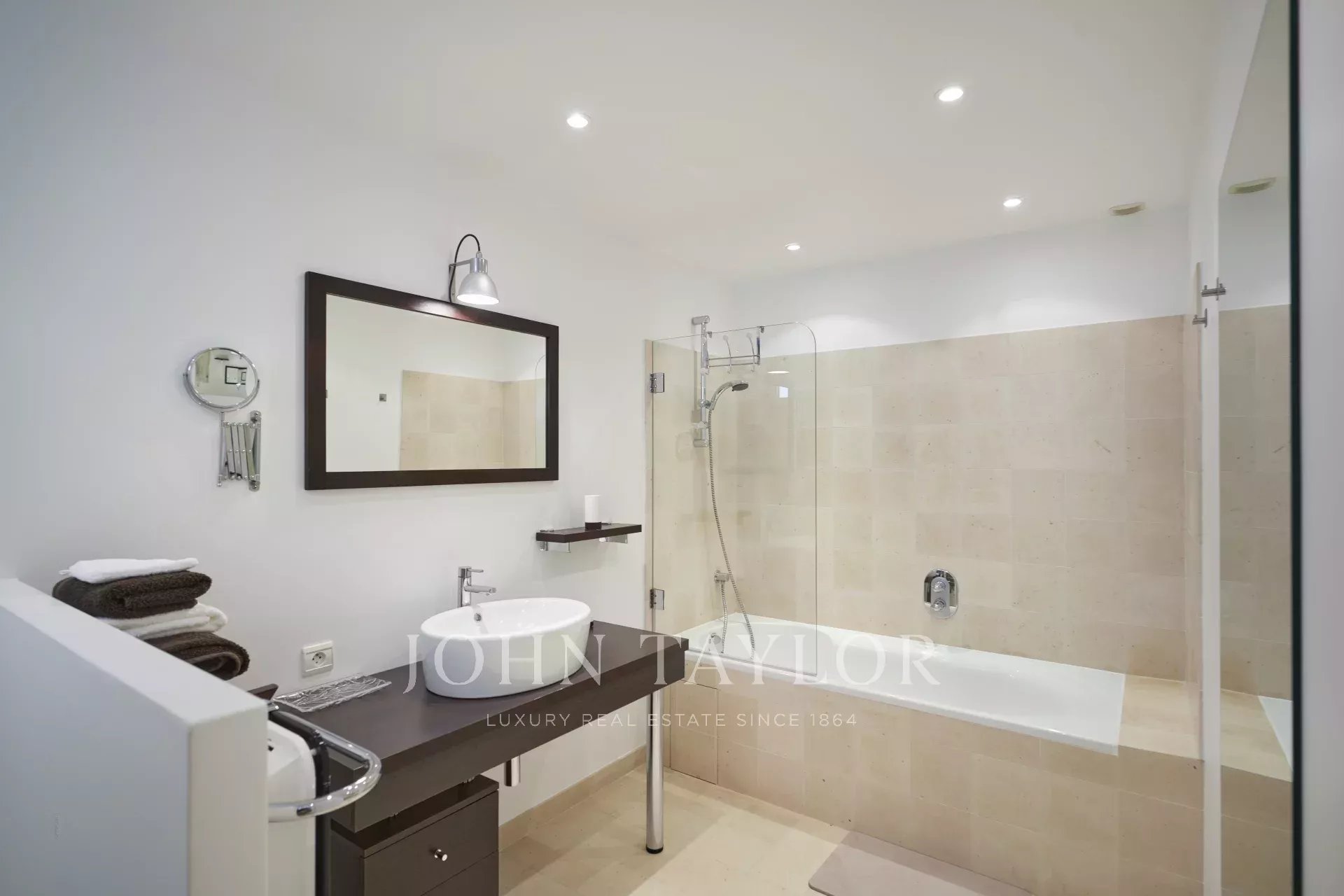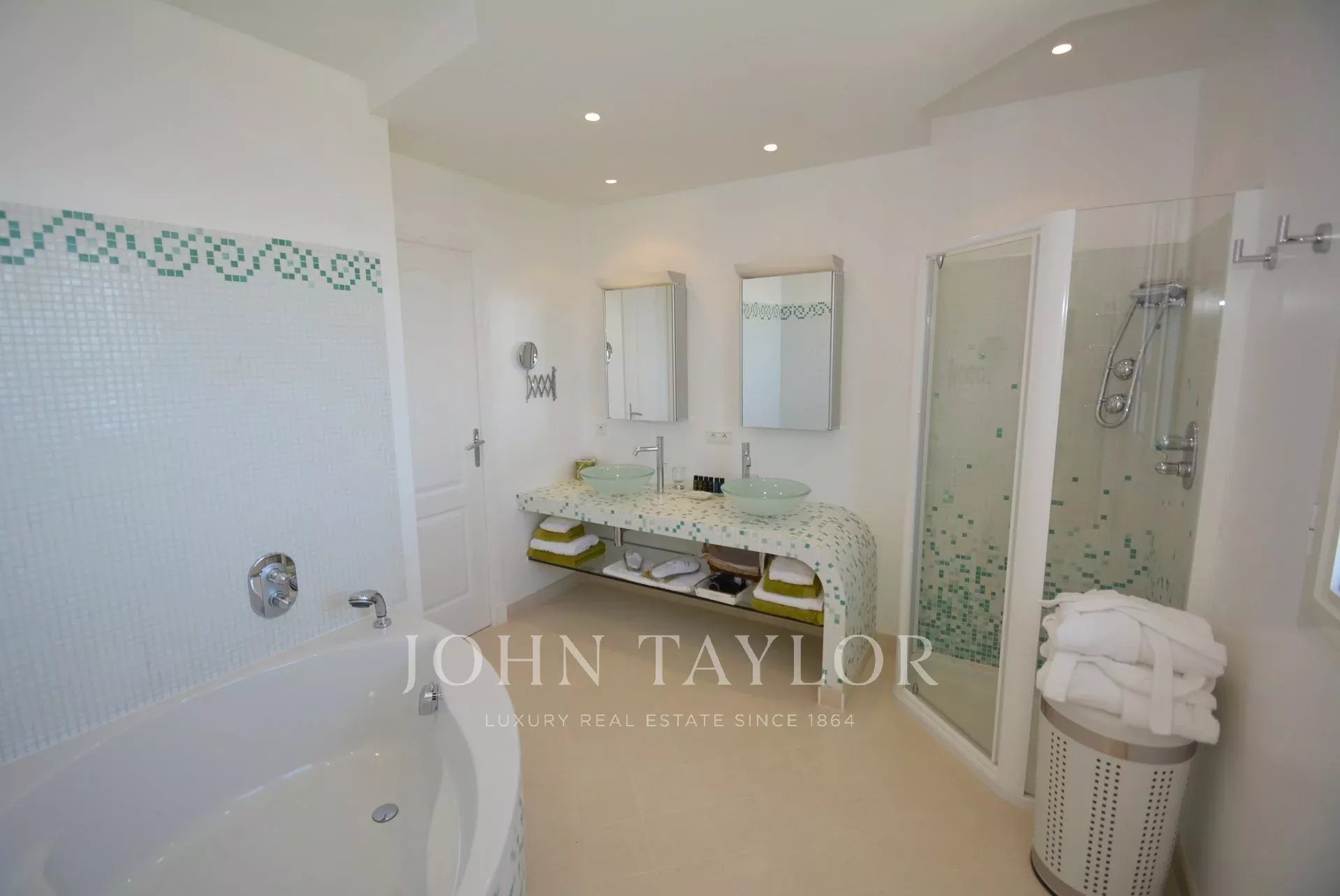 Moradia de estilo neo-provençal, recentemente construída, com uma decoração decididamente contemporânea. Situada no bairro "Super Cannes", esta moradia totalmente climatizada dispõe de 400 m2 de área habitável e de uma vista soberba sobre o mar, desde a ponta do Cap d'Antibes até Cannes e as ilhas Lérins.