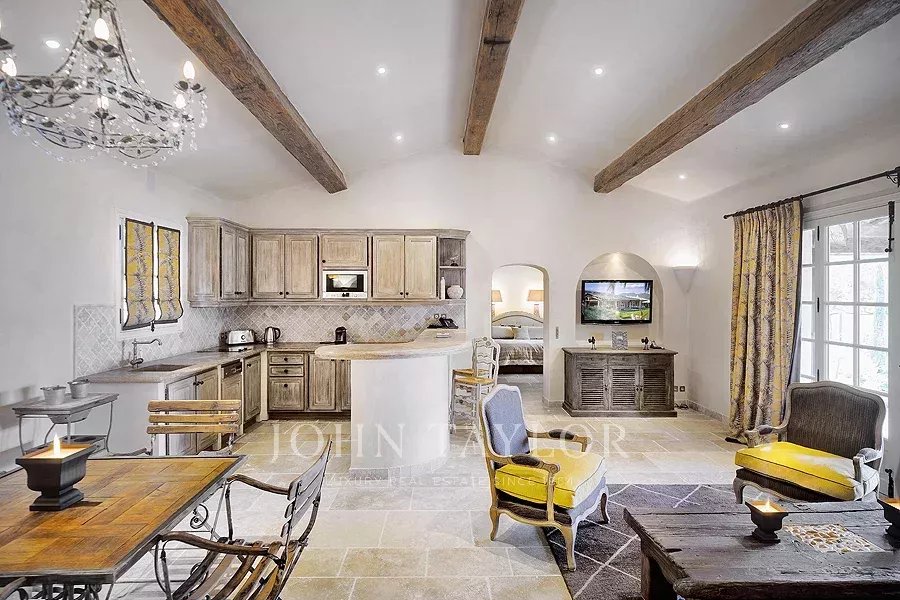 Esta propriedade deslumbrante está situada em 30 hectares de parque, plantado com oliveiras e lavanda, apenas a 20 minutos da Croisette, a 10 minutos do aeroporto de Cannes Mandelieu e a 30 minutos do aeroporto internacional de Nice Côte d'Azur. A propriedade é acessível por helicóptero e é ideal para férias em total privacidade. Um refúgio de paz num ambiente verdejante.
