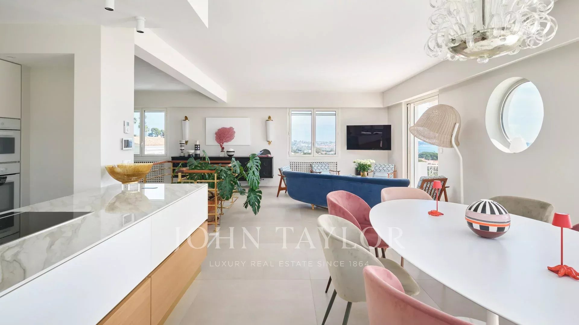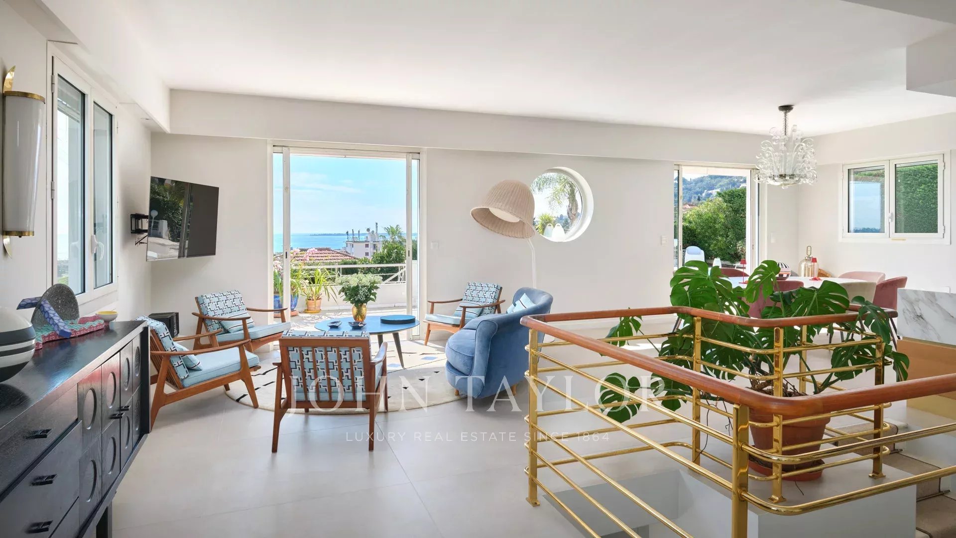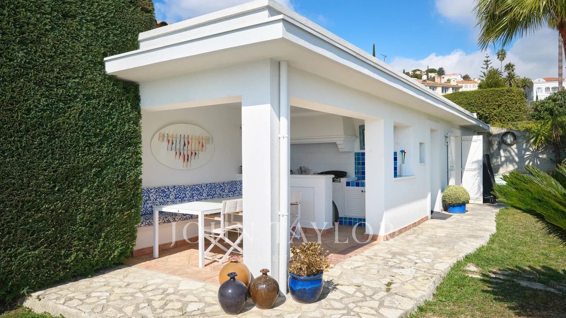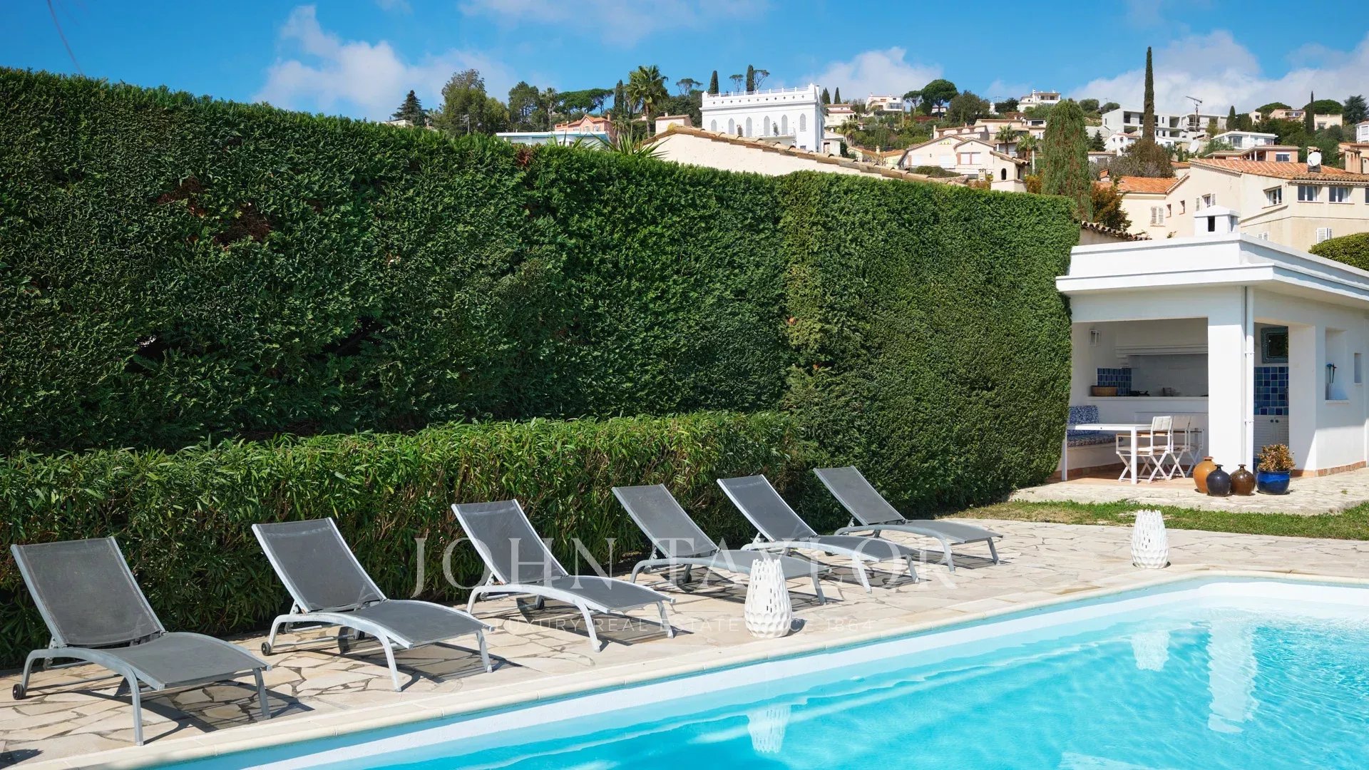 Nas alturas do Golfe-Juan e a 800 m das praias, no coração de um jardim de 1.000 m2, uma moradia moderna com cerca de 180 m2 de área de habitação e belas vistas para o mar.