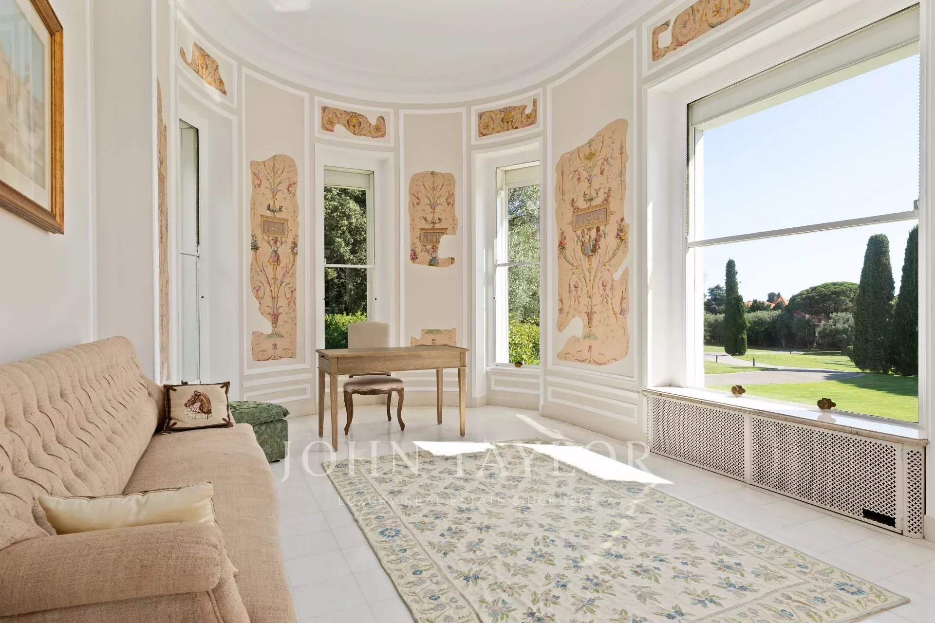Um excelente exemplo da arquitetura dos anos 20, esta propriedade excecional está situada na parte mais alta de Cap d'Antibes, no coração de mais de 4,5 hectares de parque quase totalmente coberto por um maravilhoso relvado inglês.