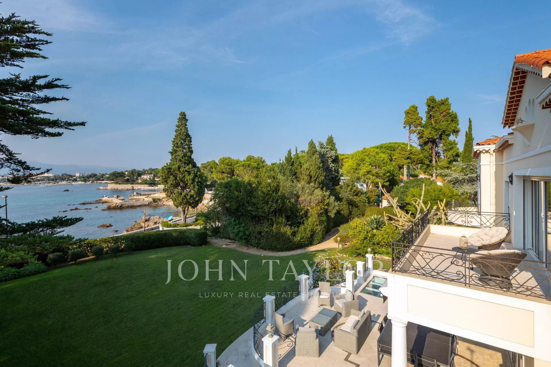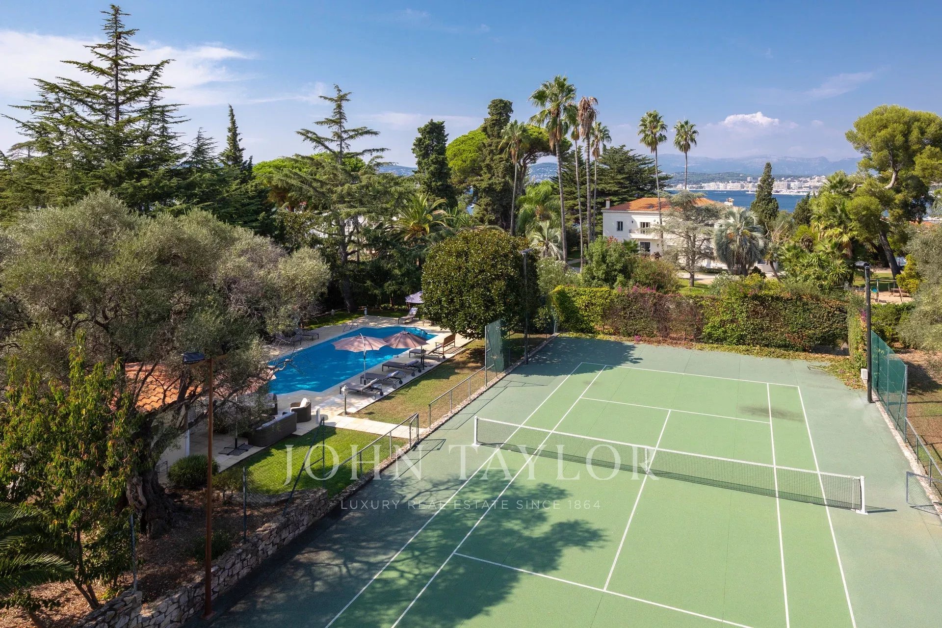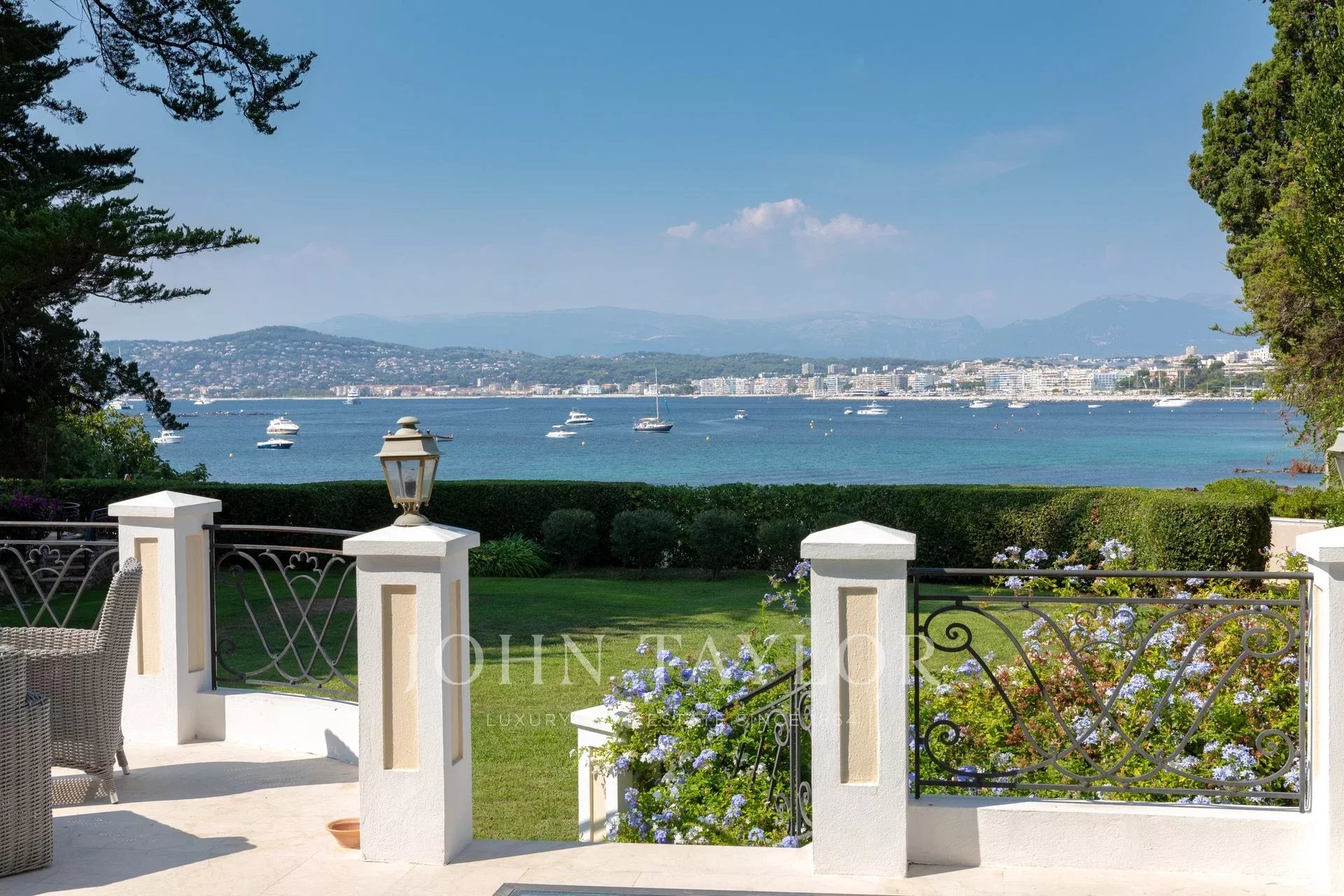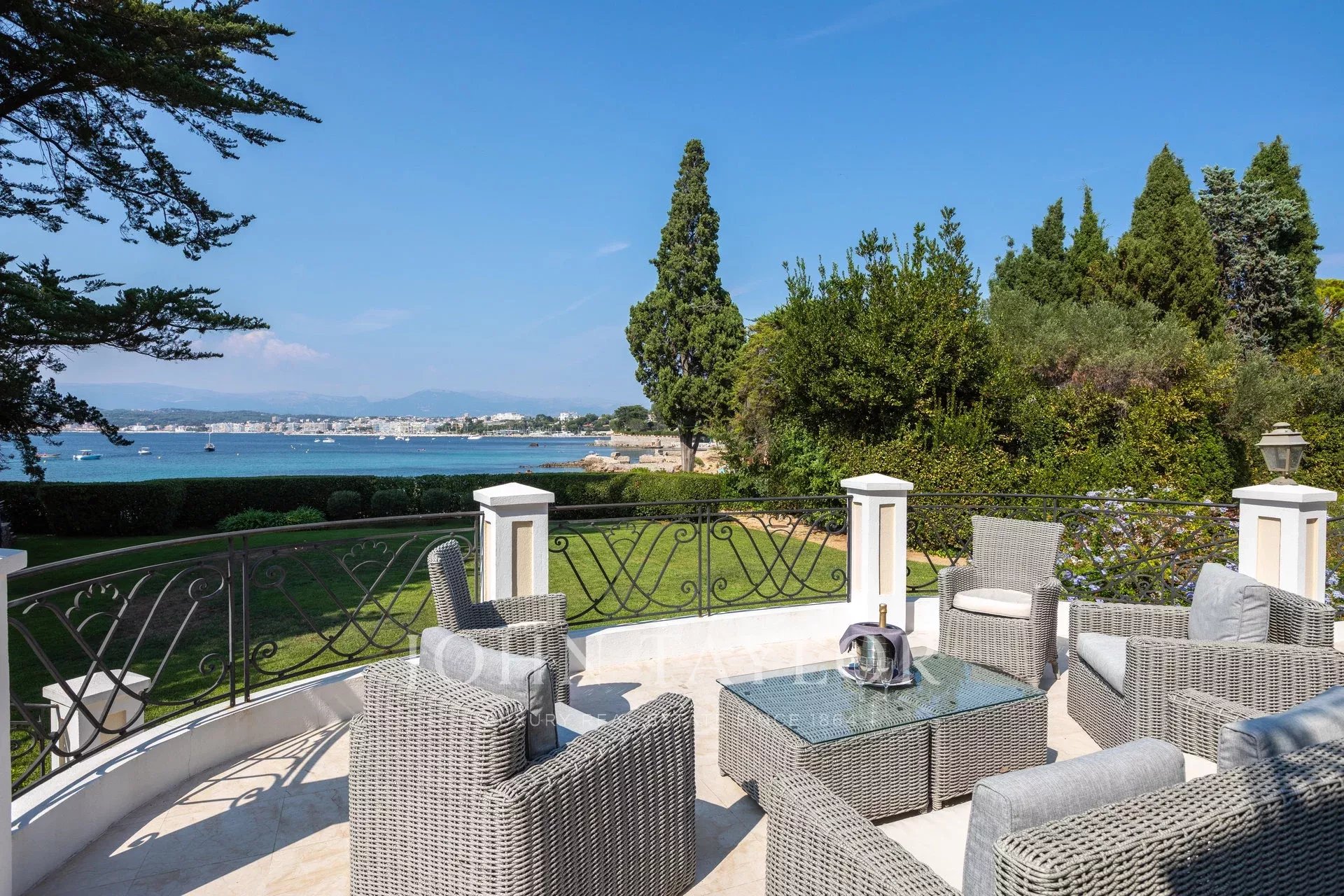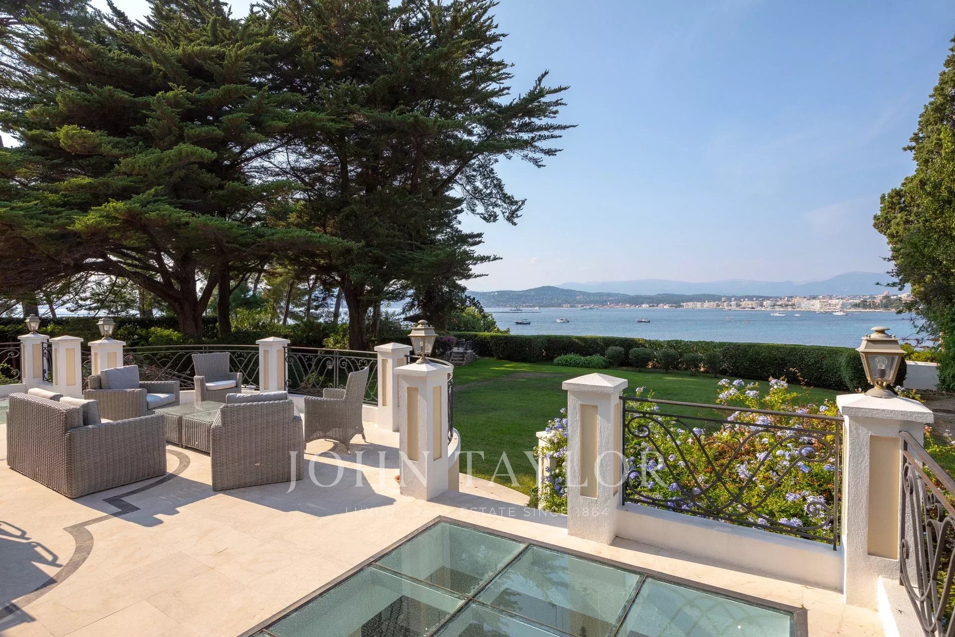 Esplêndida propriedade de 3 pisos na Boulevard du Littoral. Apenas a alguns minutos a pé do hotel Eden Roc, desfruta de belas vistas sobre a Baía de Juan Les Pins, as Ilhas Lérins e o Esterel. Totalmente renovada e com ar condicionado, está rodeada por 9.000 m2 de terrenos bem concebidos, com relvados, flores e belas árvores.