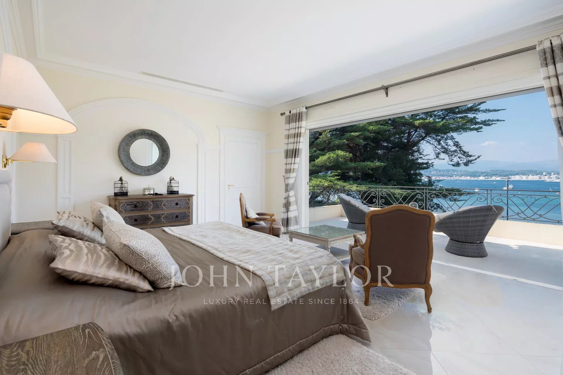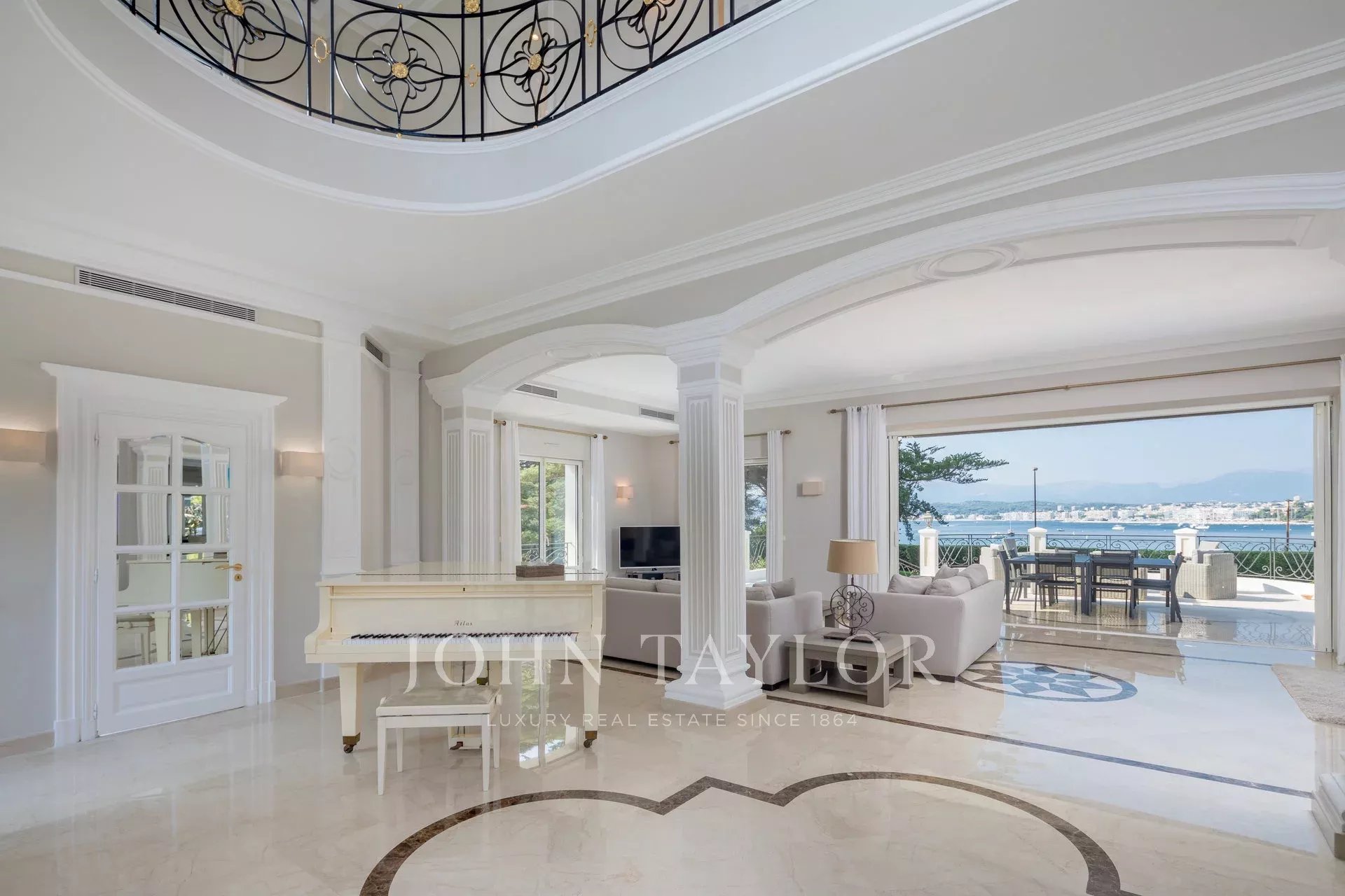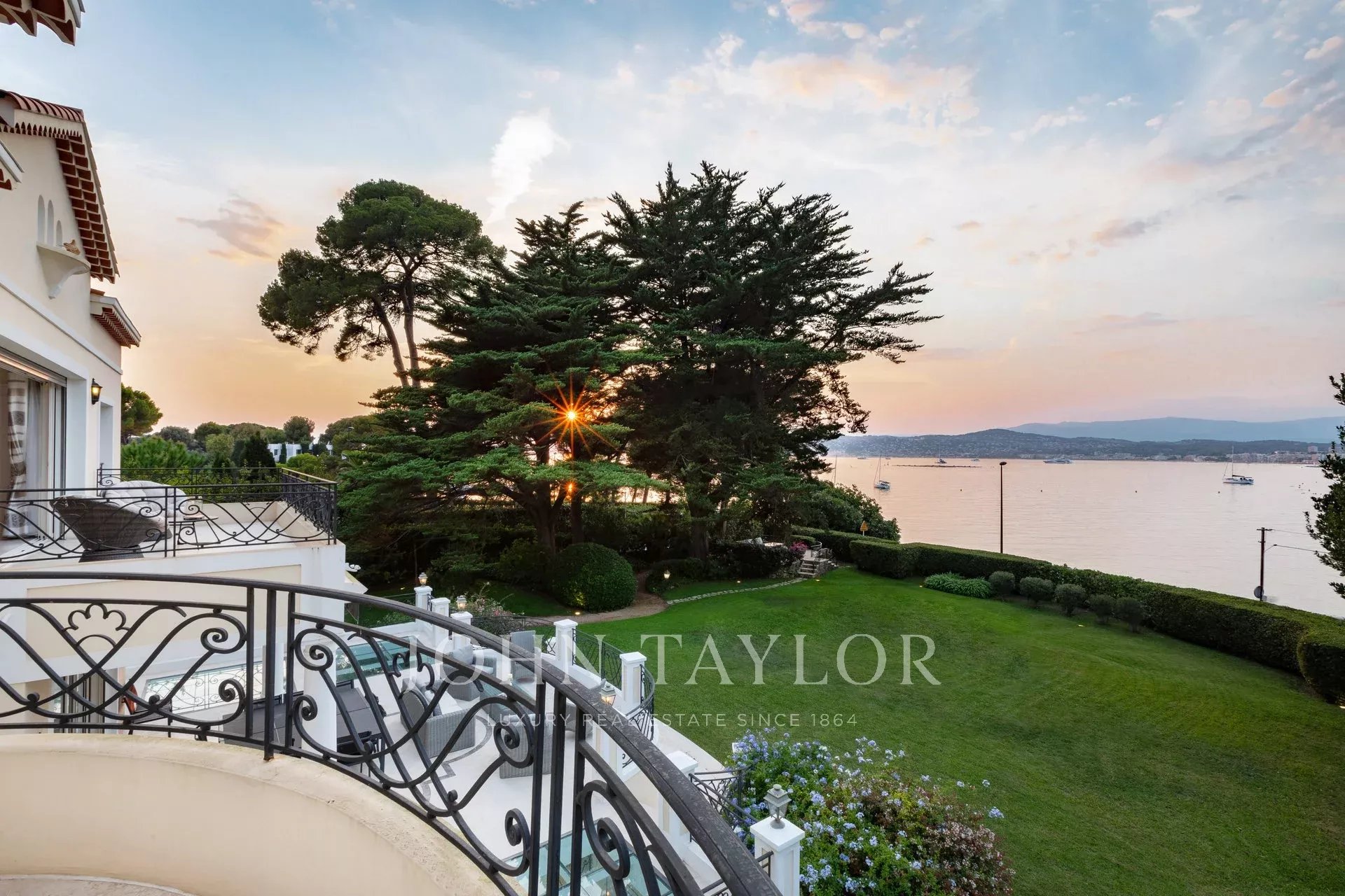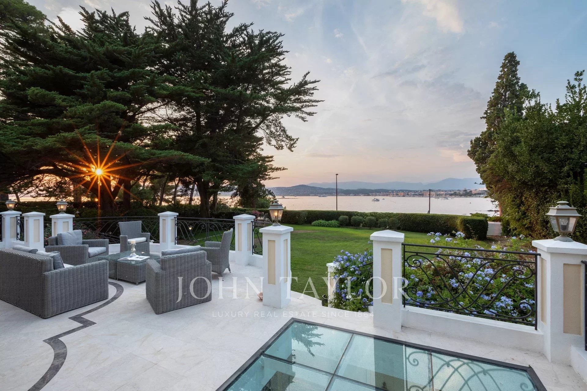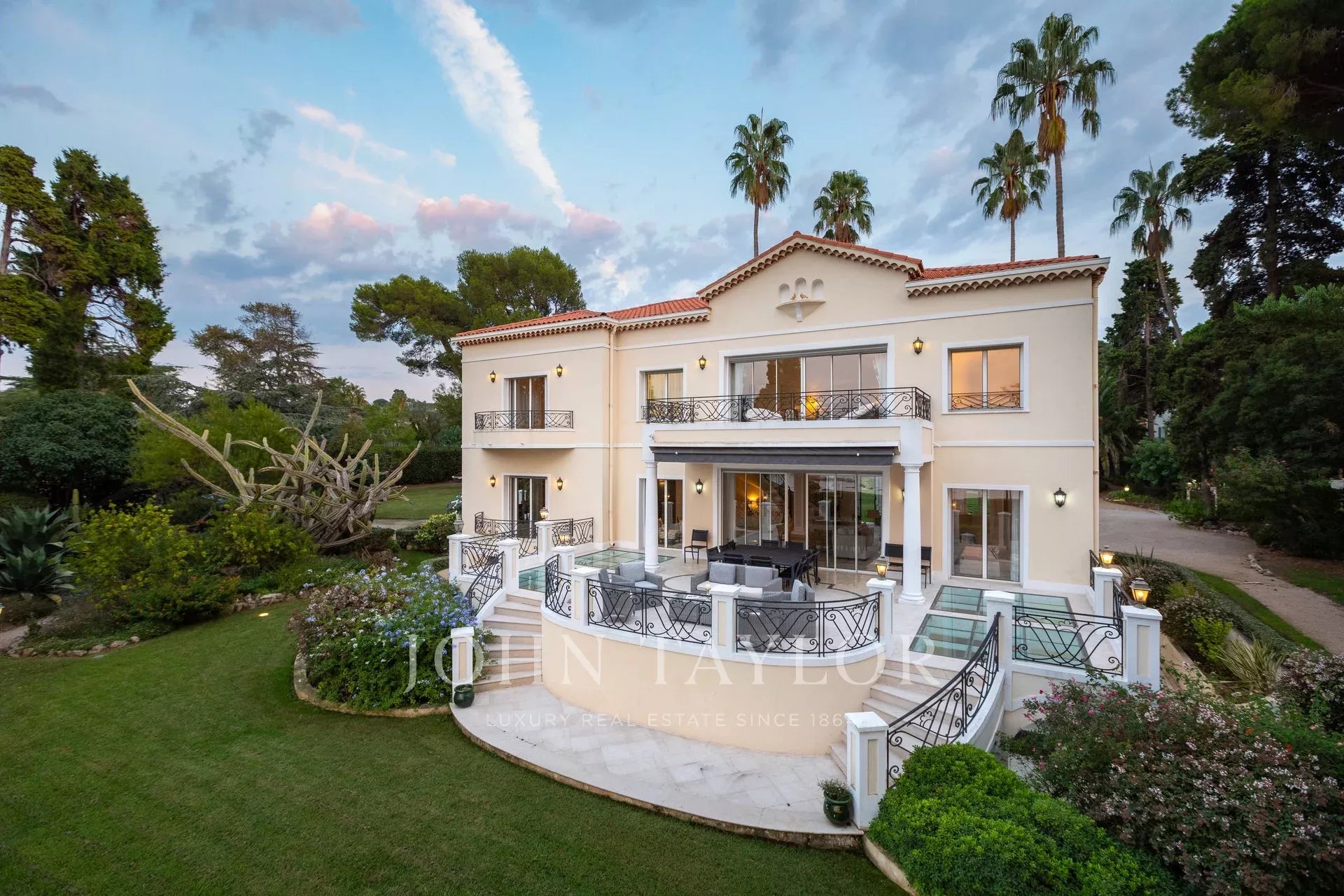 Esplêndida propriedade de 3 pisos na Boulevard du Littoral. Apenas a alguns minutos a pé do hotel Eden Roc, desfruta de belas vistas sobre a Baía de Juan Les Pins, as Ilhas Lérins e o Esterel. Totalmente renovada e com ar condicionado, está rodeada por 9.000 m2 de terrenos bem concebidos, com relvados, flores e belas árvores.