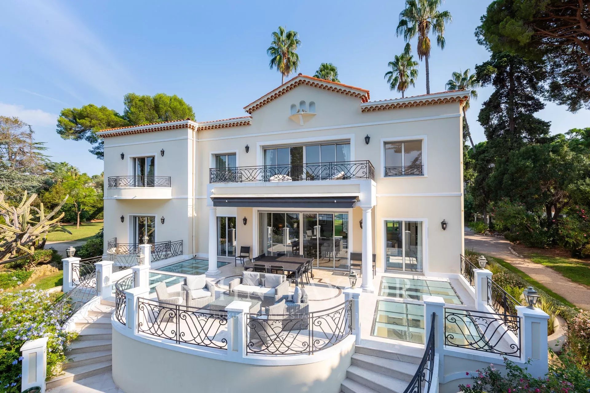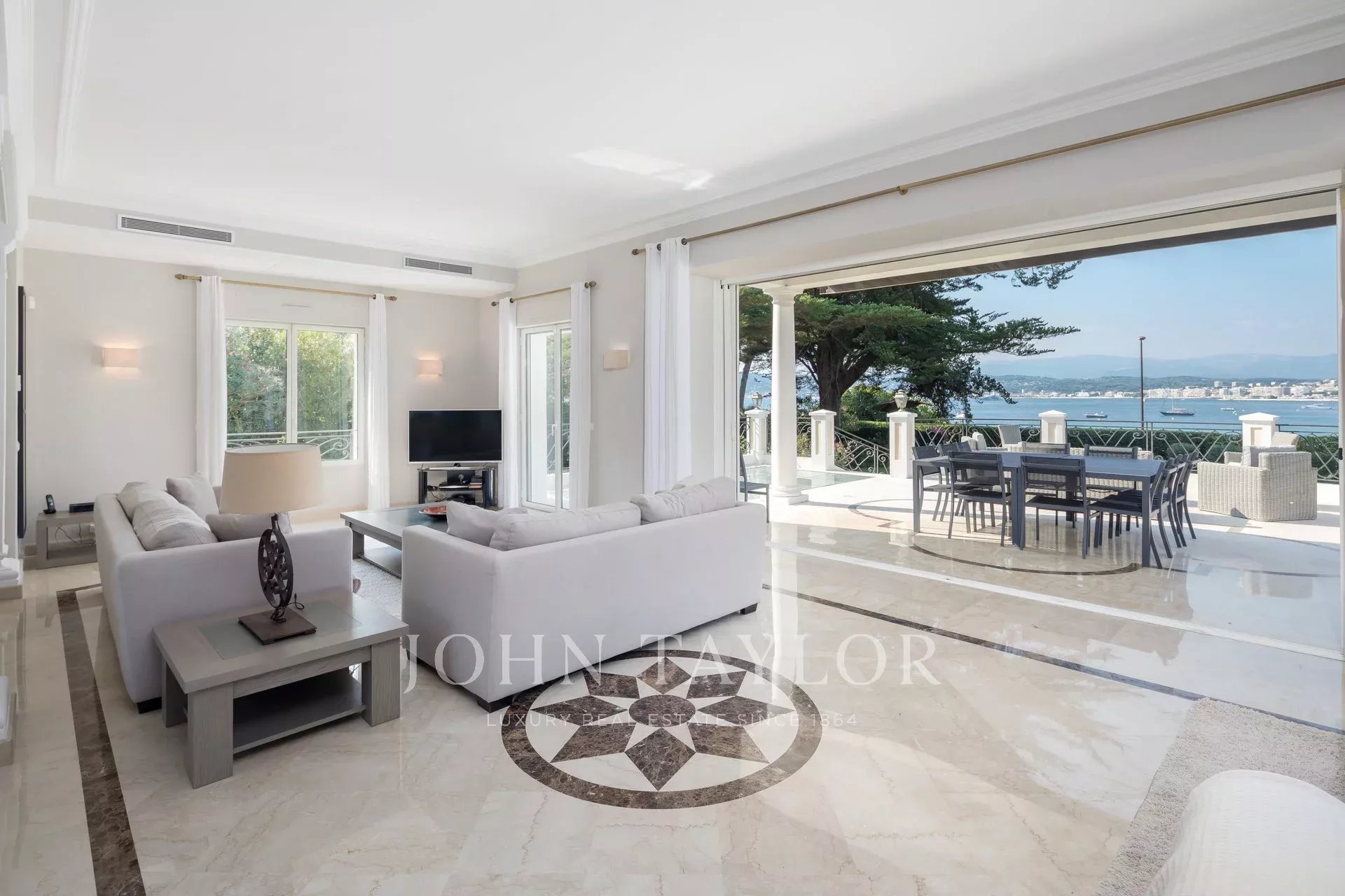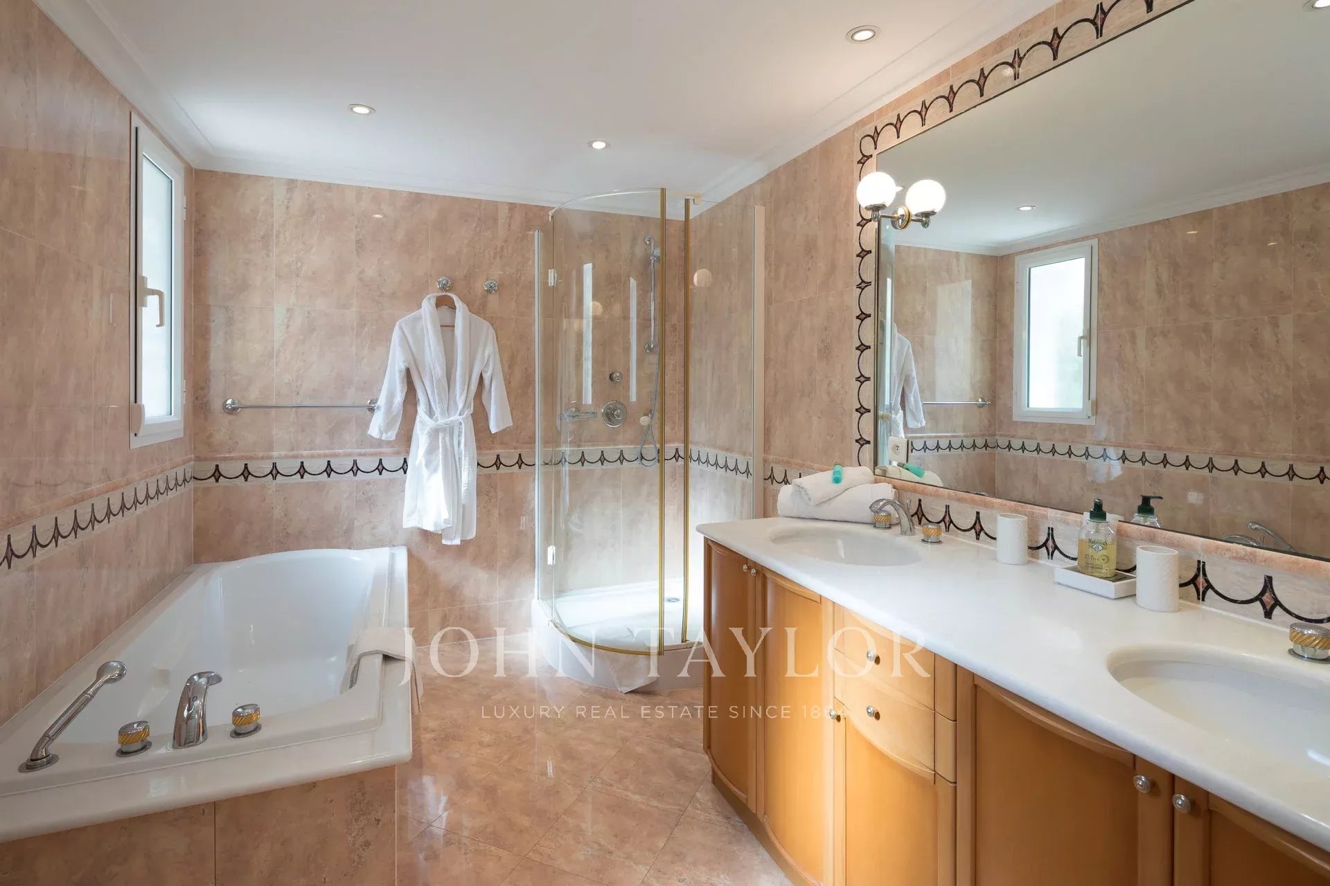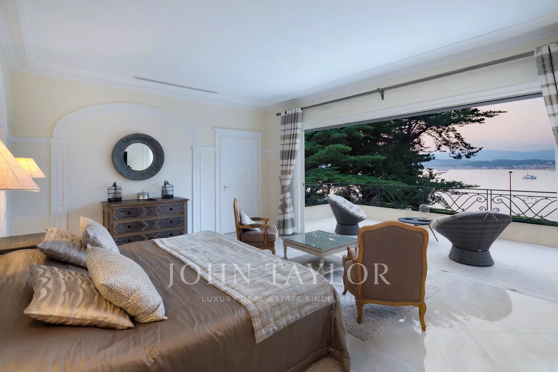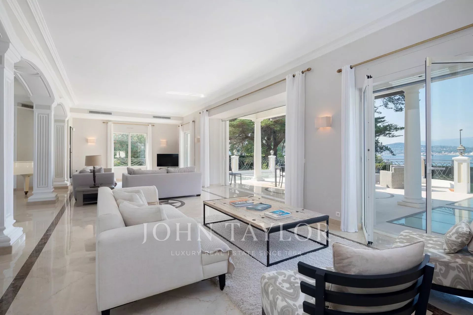 Esplêndida propriedade de 3 pisos na Boulevard du Littoral. Apenas a alguns minutos a pé do hotel Eden Roc, desfruta de belas vistas sobre a Baía de Juan Les Pins, as Ilhas Lérins e o Esterel. Totalmente renovada e com ar condicionado, está rodeada por 9.000 m2 de terrenos bem concebidos, com relvados, flores e belas árvores.