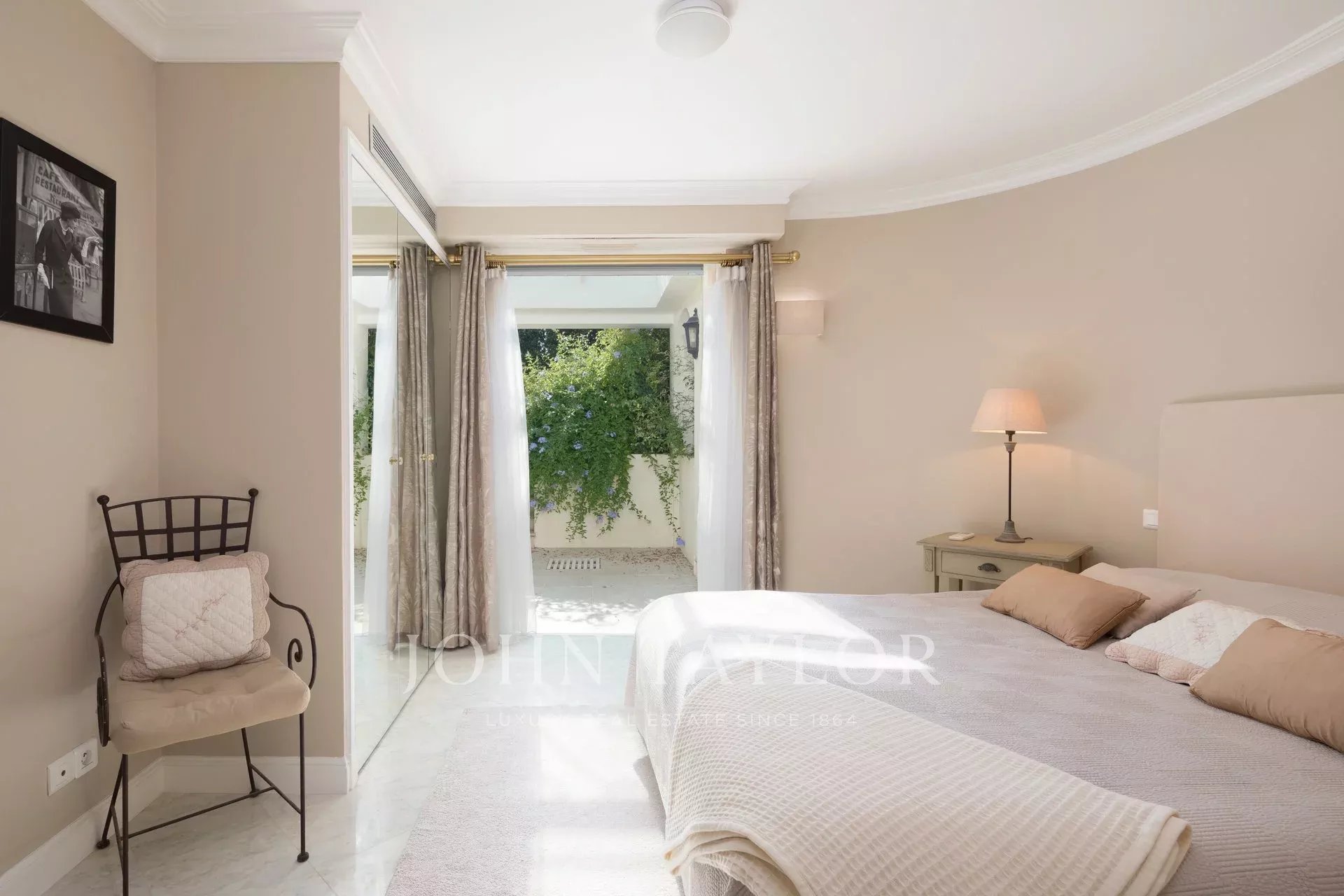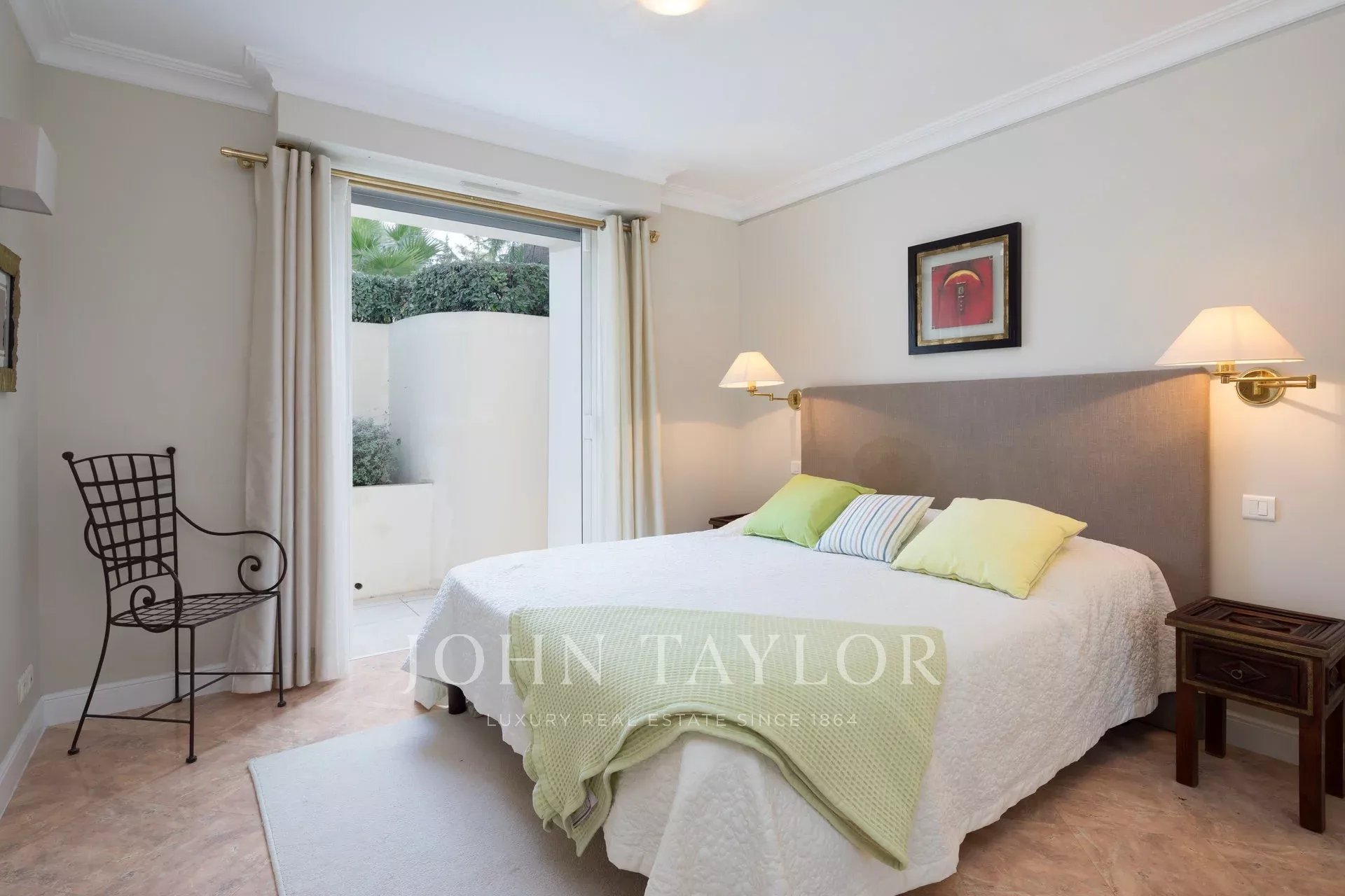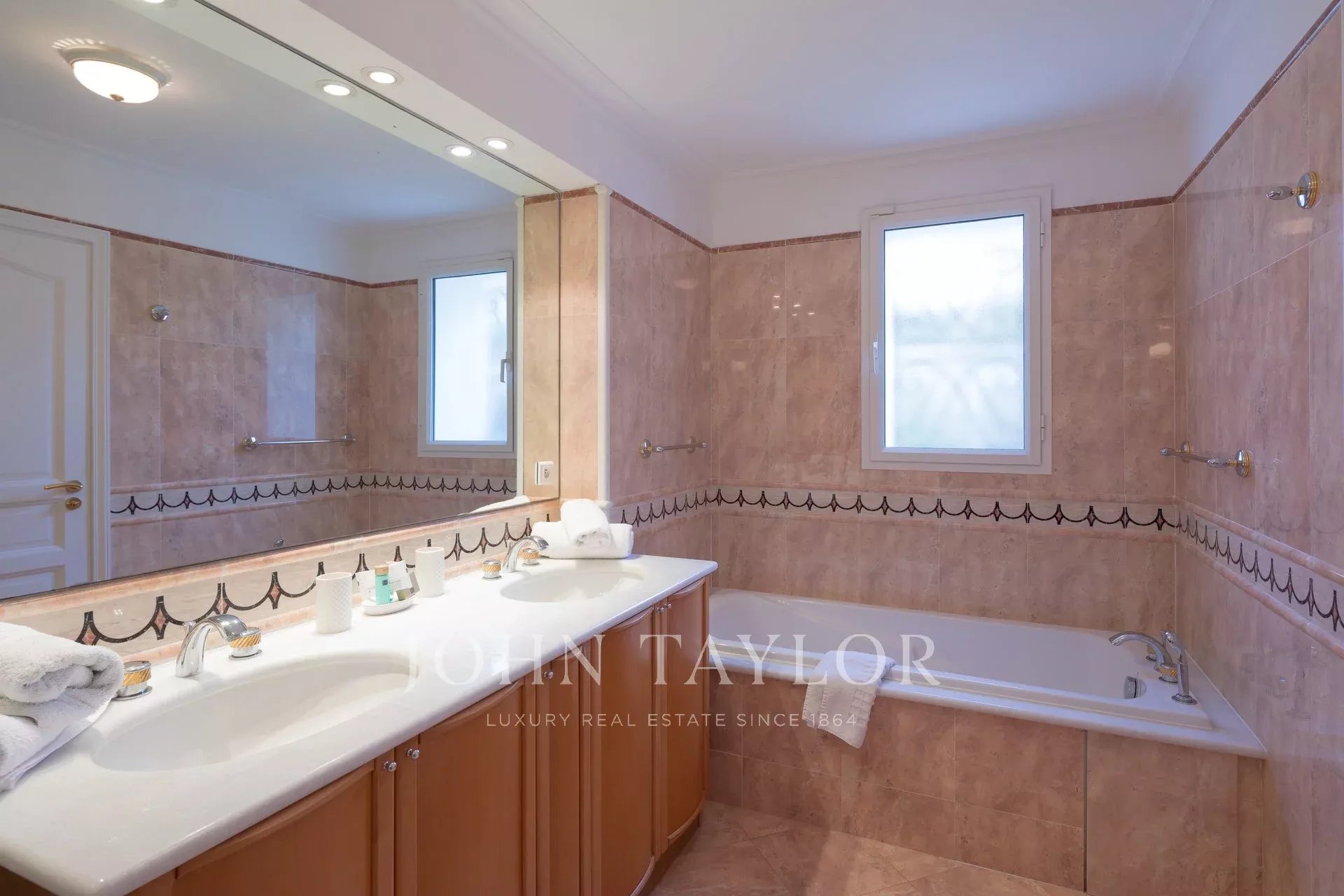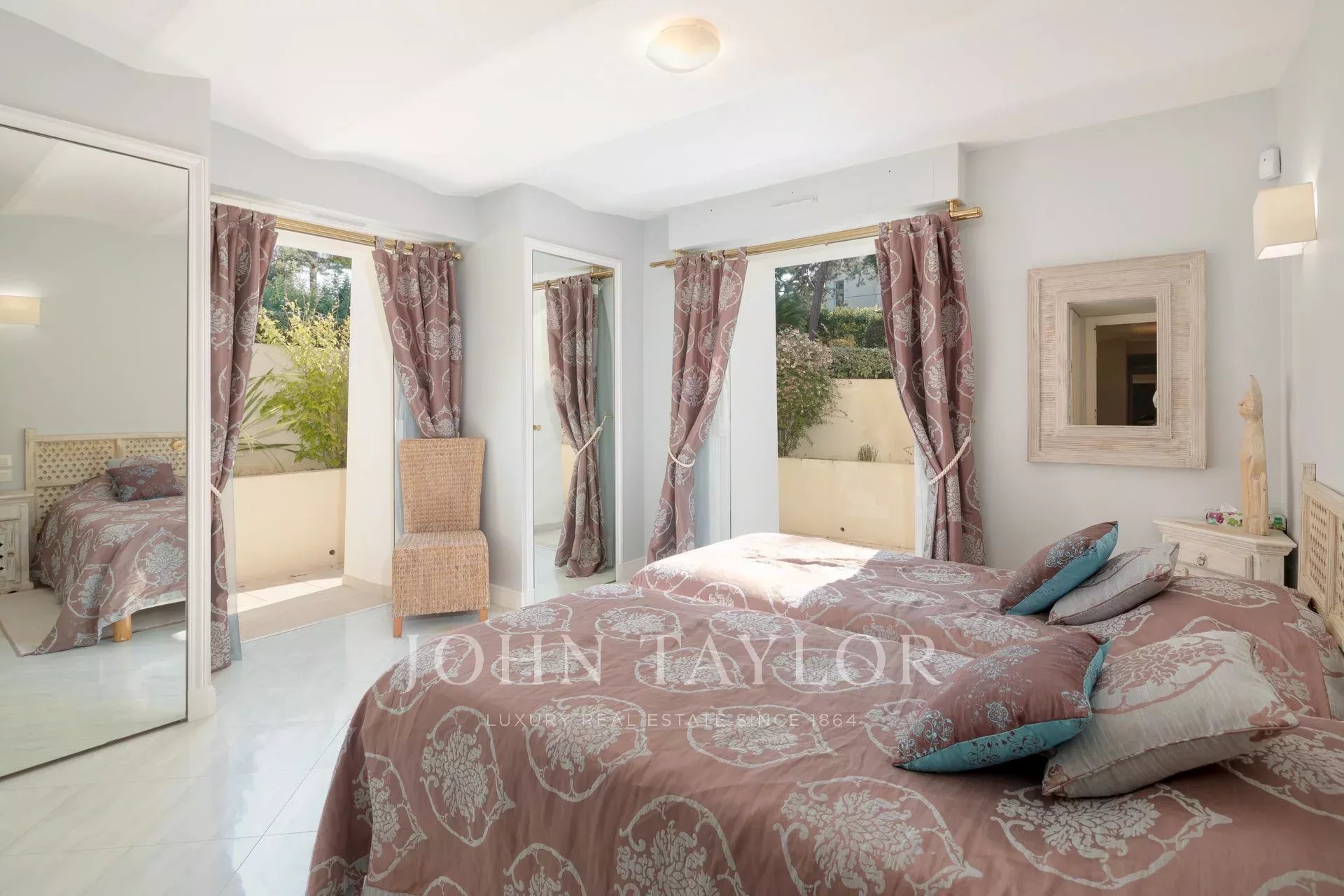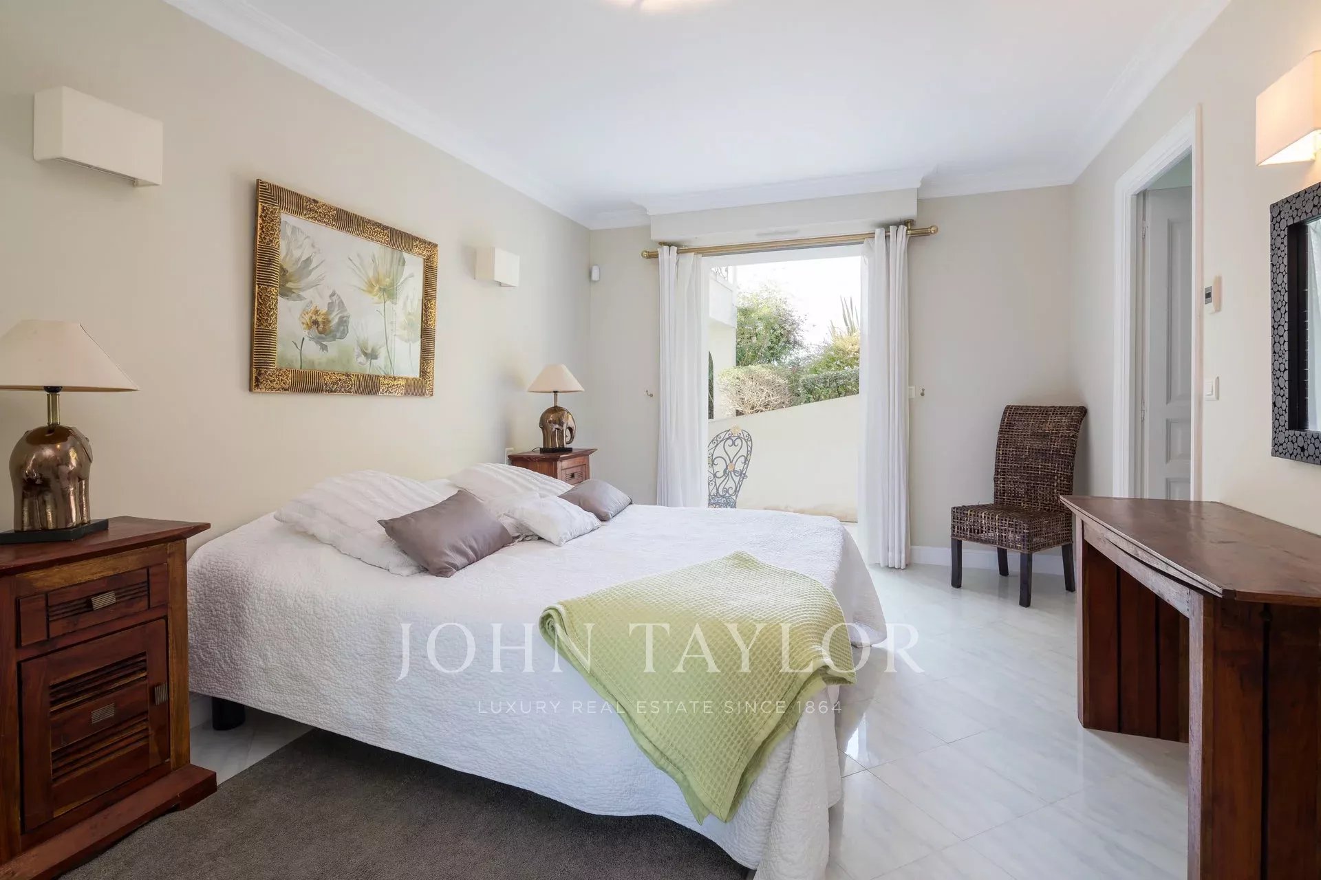 Esplêndida propriedade de 3 pisos na Boulevard du Littoral. Apenas a alguns minutos a pé do hotel Eden Roc, desfruta de belas vistas sobre a Baía de Juan Les Pins, as Ilhas Lérins e o Esterel. Totalmente renovada e com ar condicionado, está rodeada por 9.000 m2 de terrenos bem concebidos, com relvados, flores e belas árvores.