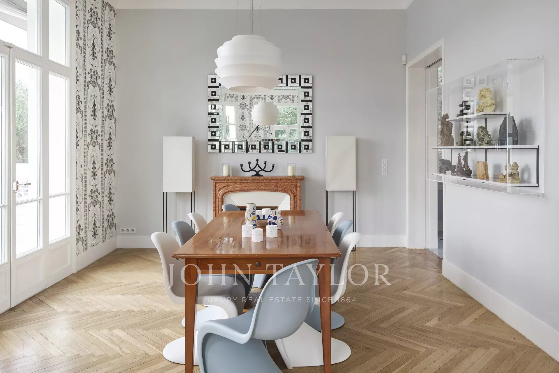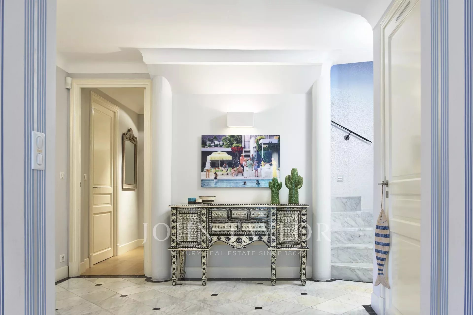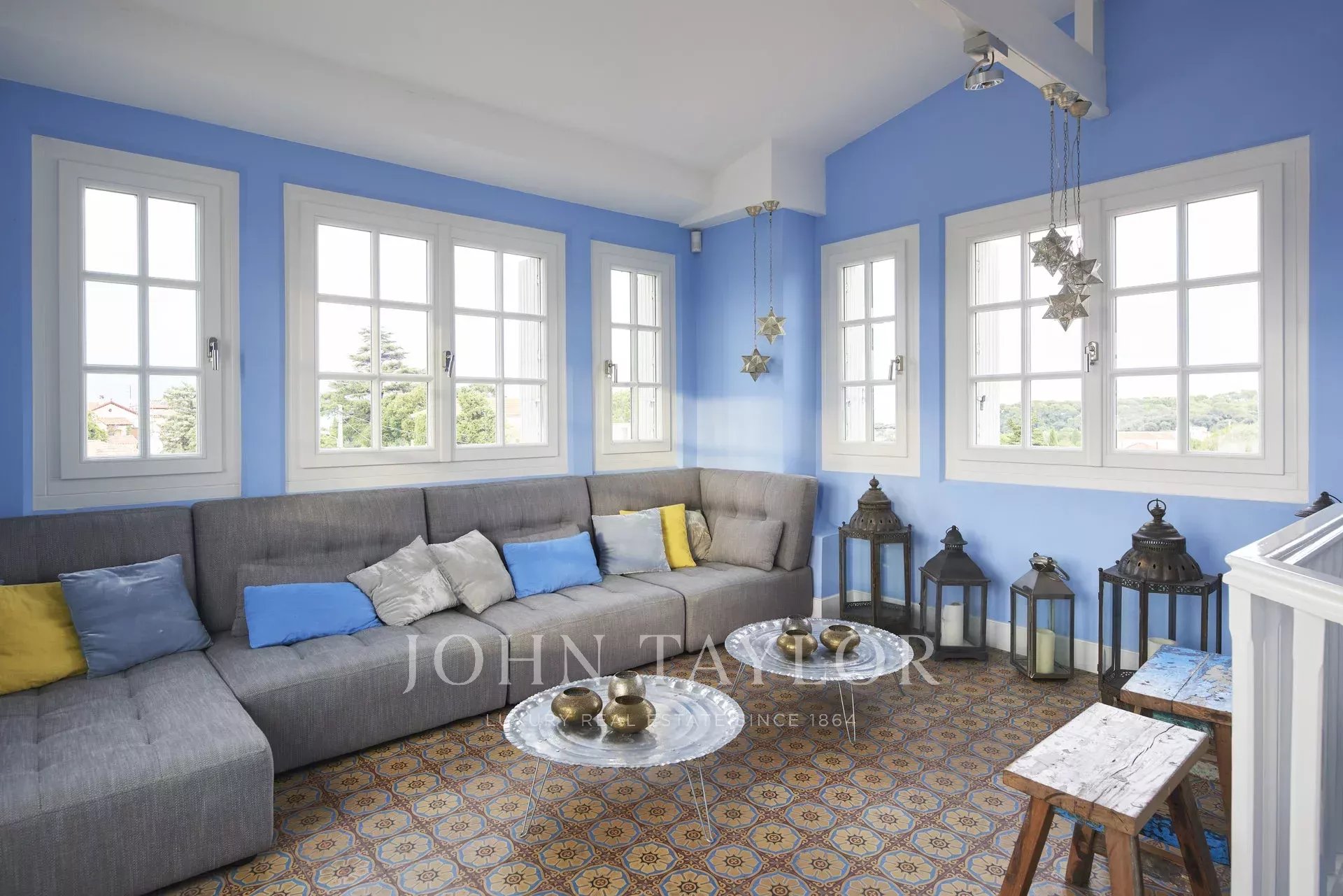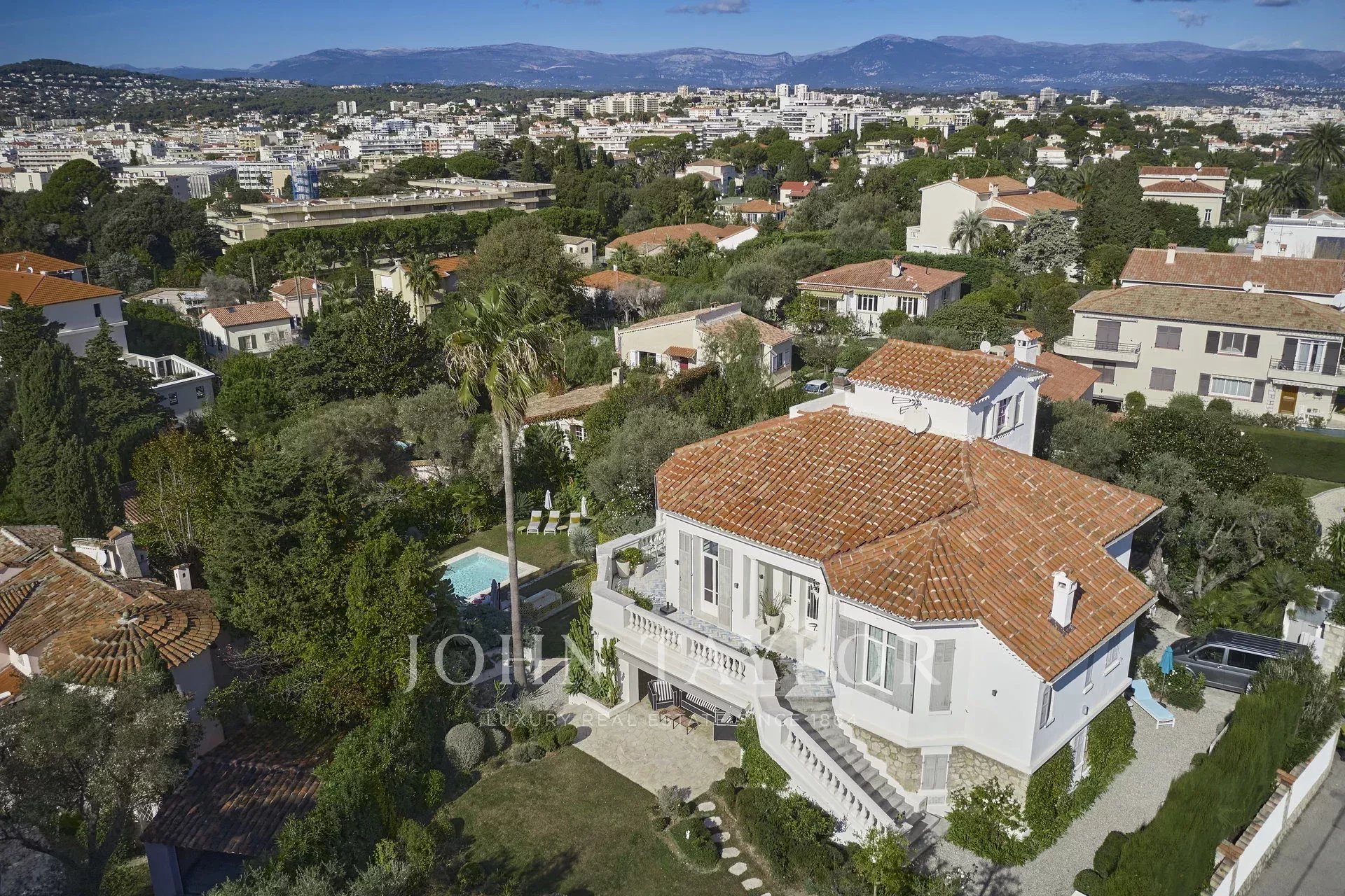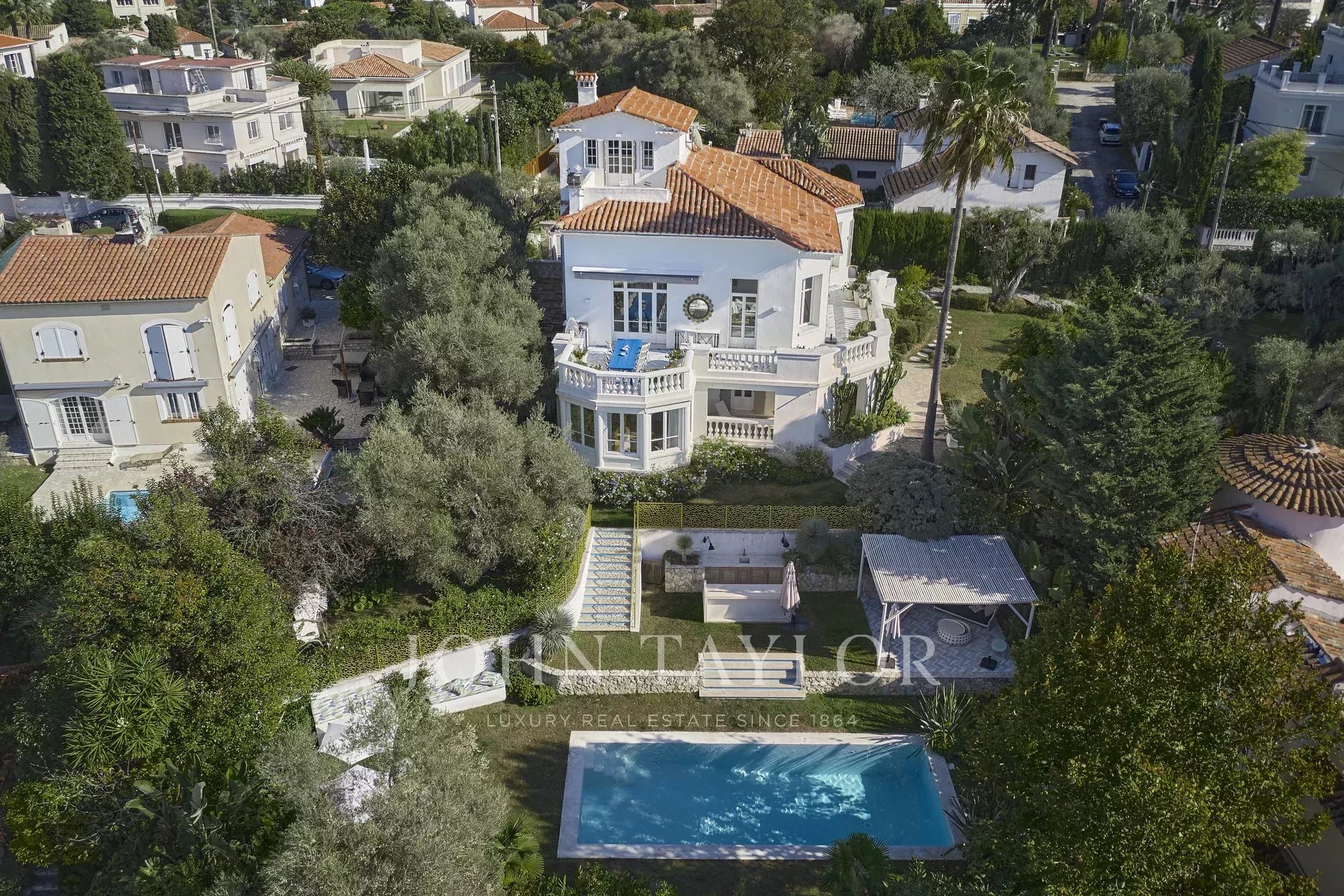 Datada de 1925, esta bela moradia "Art Deco" recentemente renovada, com 350 m2 de área habitacional, está situada em 1.600 m2 de terreno, a uma curta distância a pé de Juan-les-Pins e Antibes. Localização tranquila no final de uma rua sem saída.