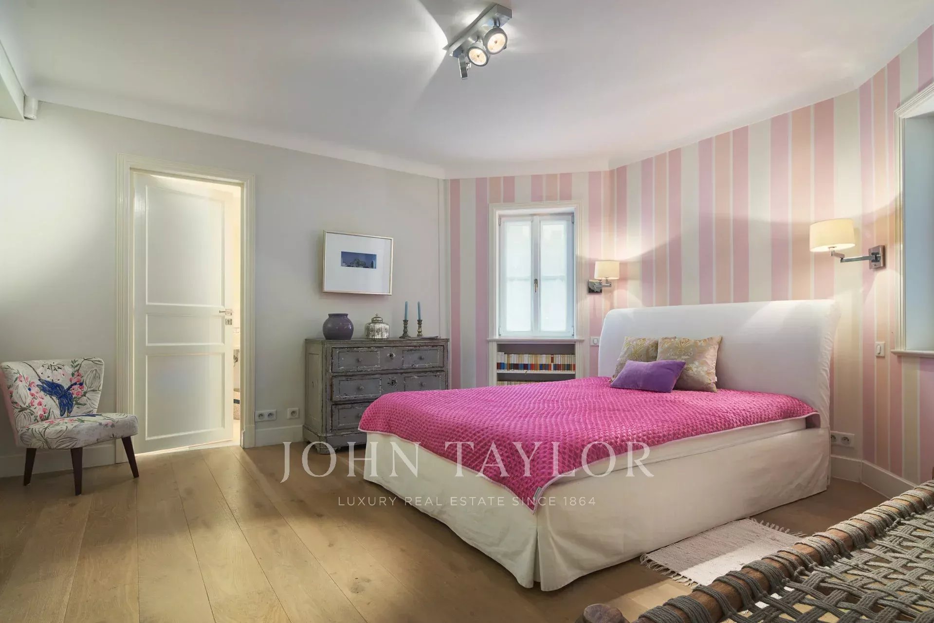 Com entrada própria a partir da garagem, este apartamento principal abre-se para um terraço com vista para o jardim e é composto por: quarto (cama de 180 cm) - pequena sala de estar / escritório - quarto de vestir - casa de banho com banheira, duche / WC