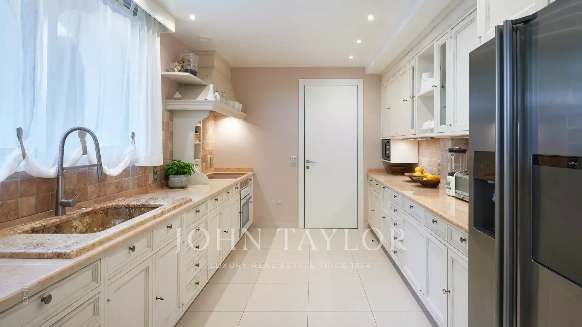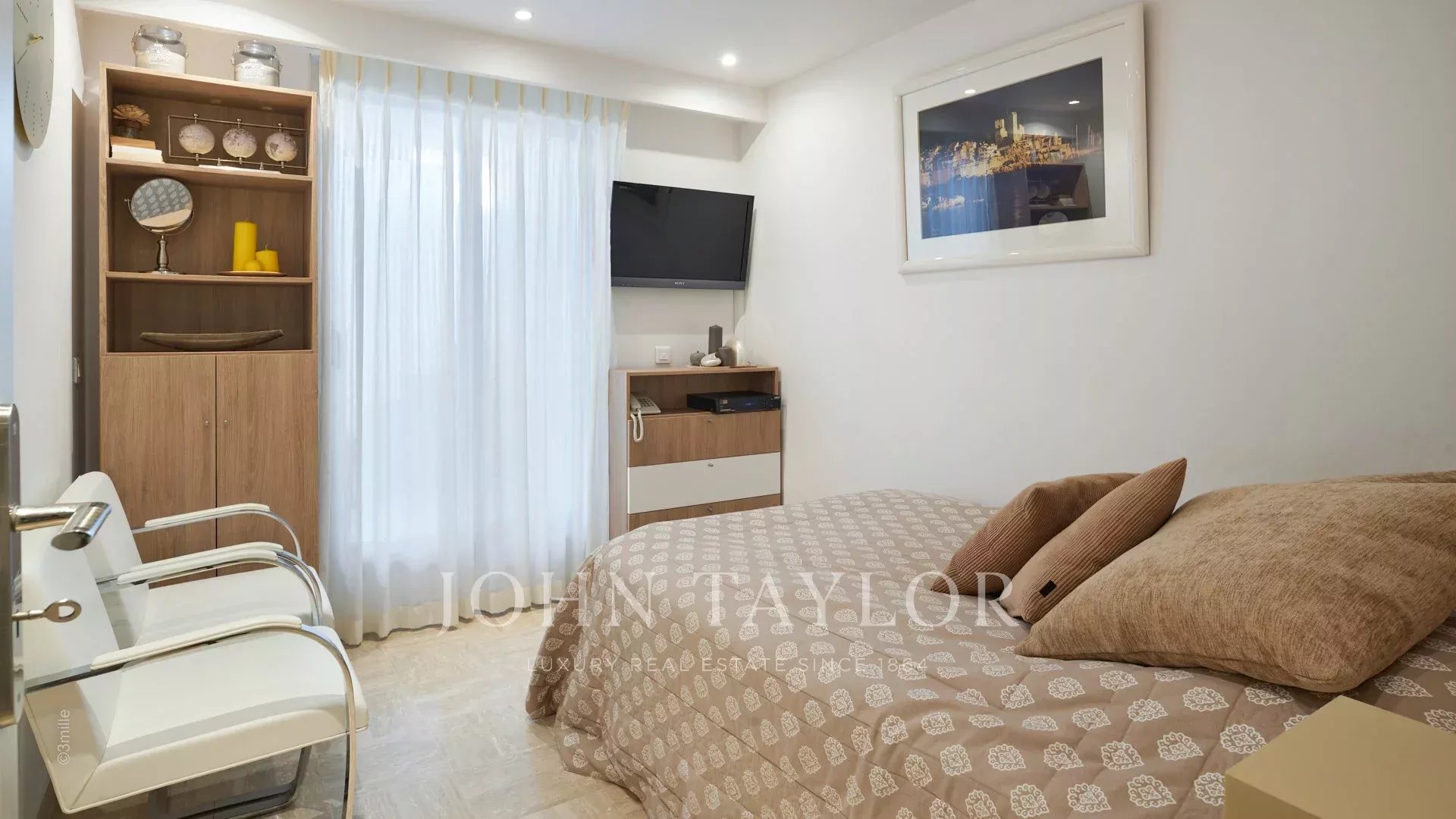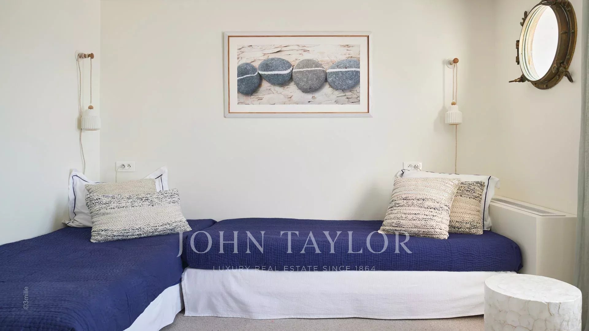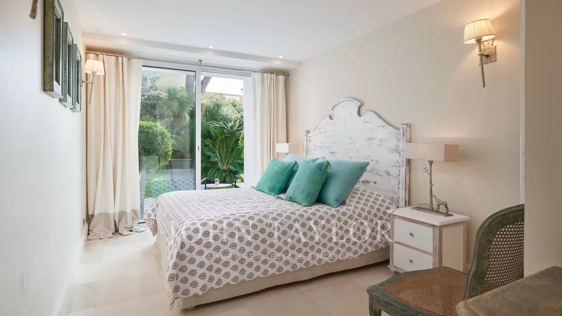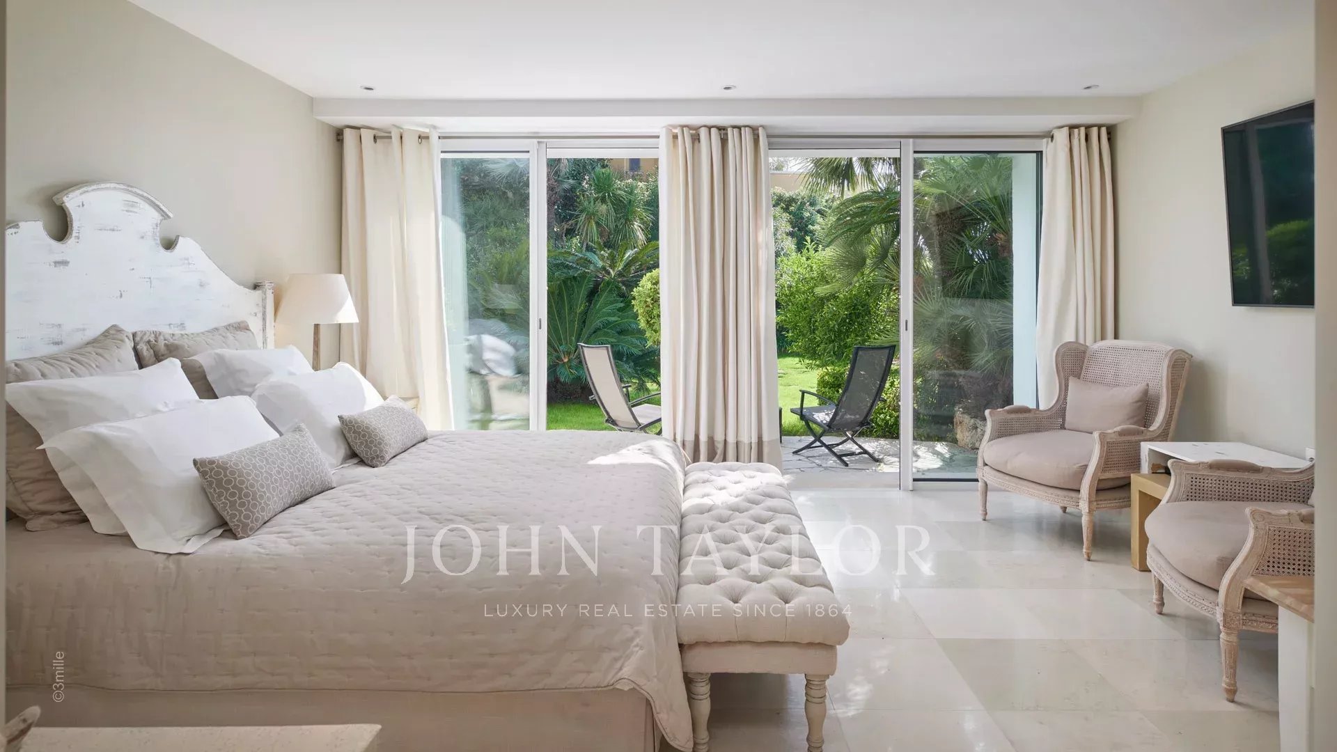 A entrada conduz a uma vasta sala de receção que se abre para um magnífico terraço com vista para o mar e para a Antibes antiga, composta por uma sala de estar e de jantar com capacidade para 12 pessoas.