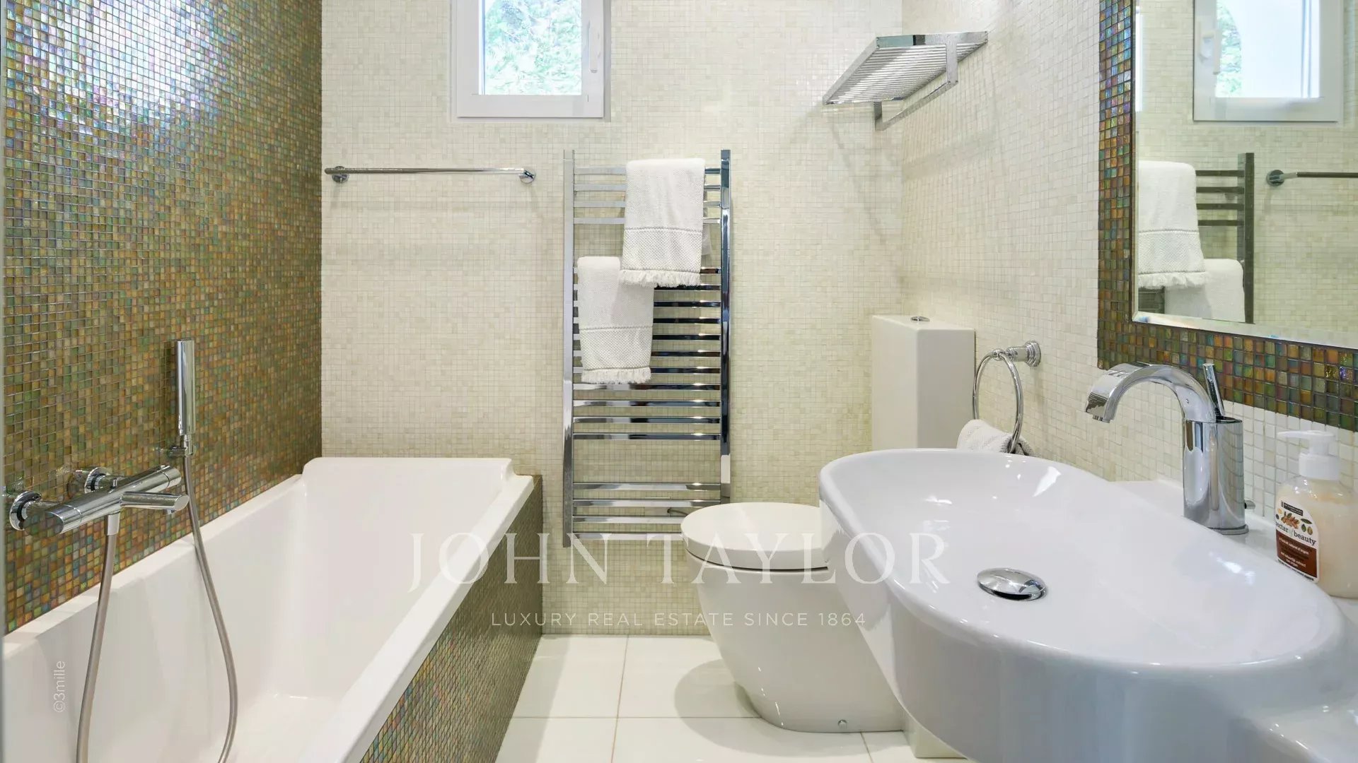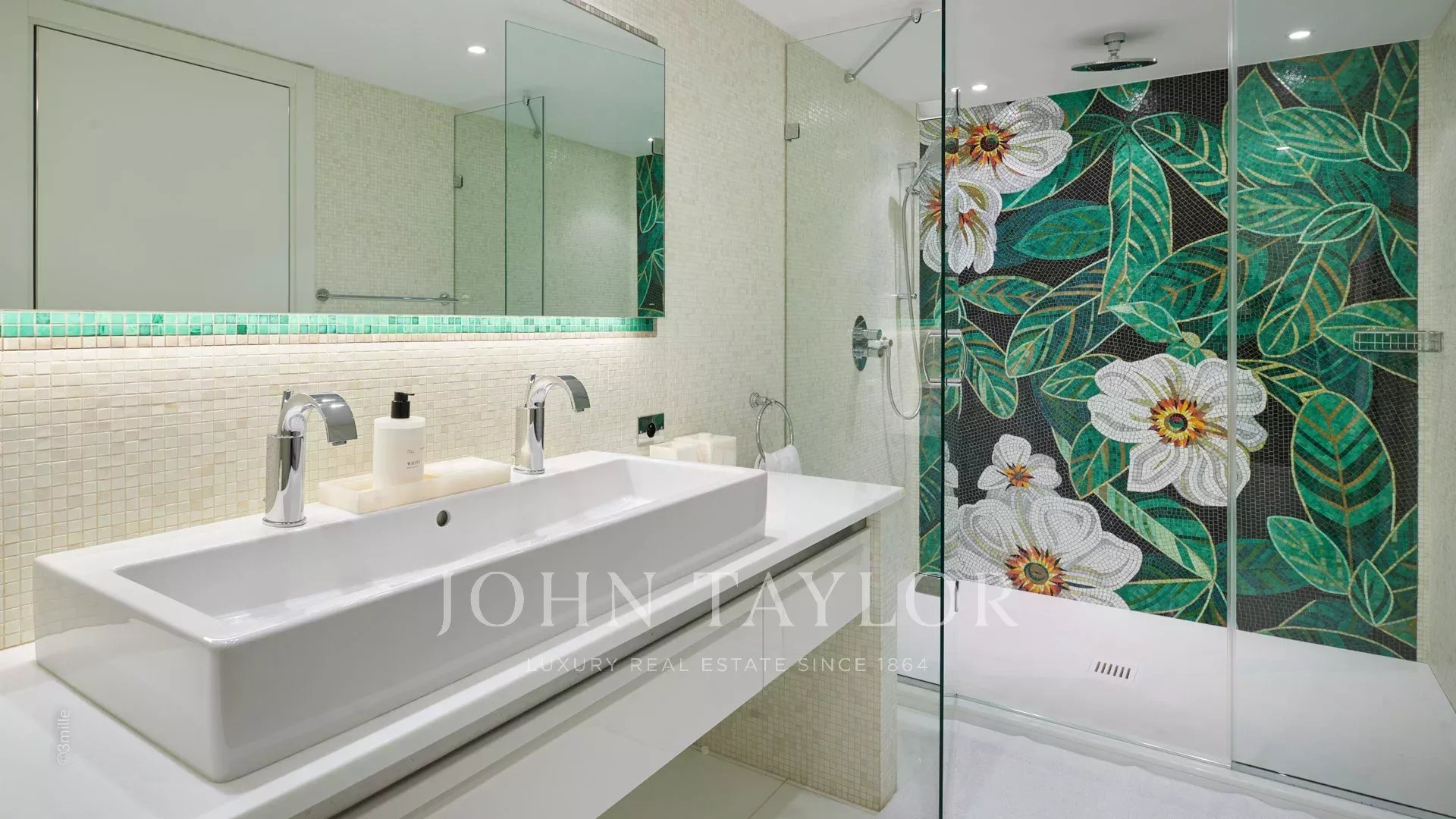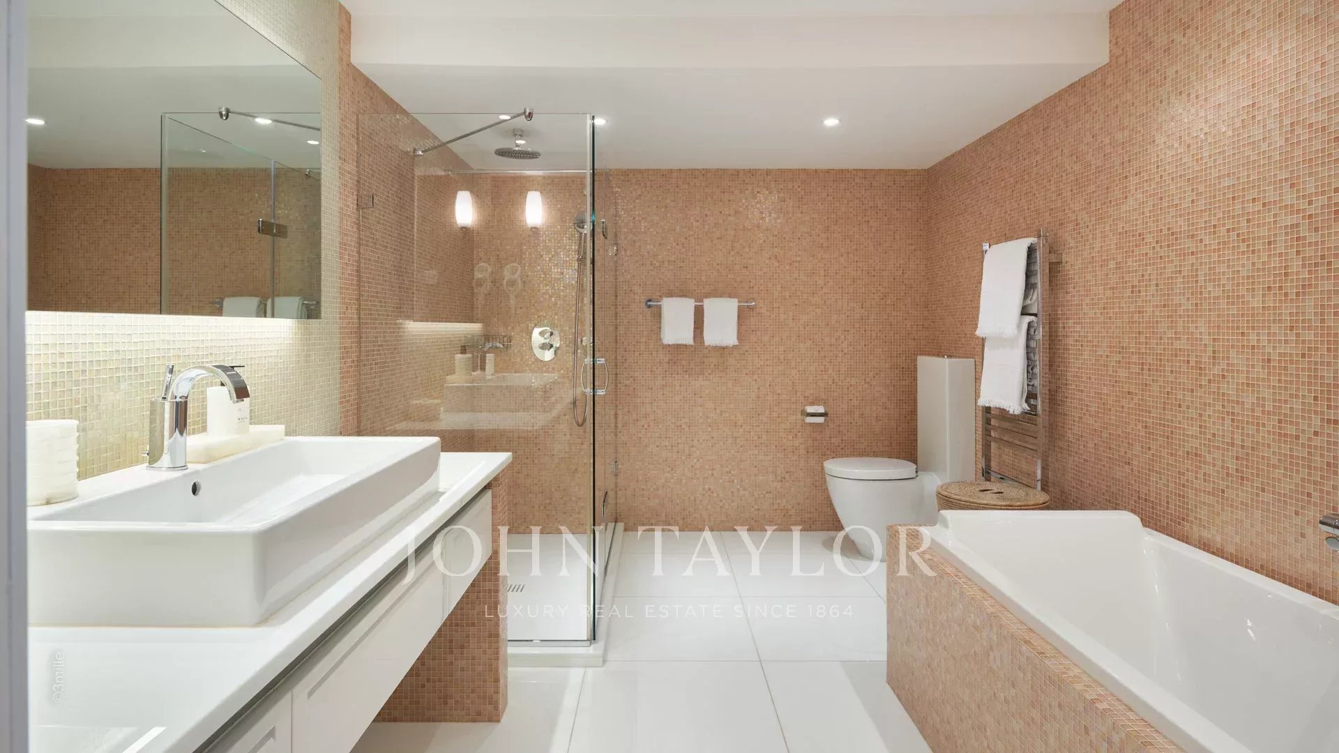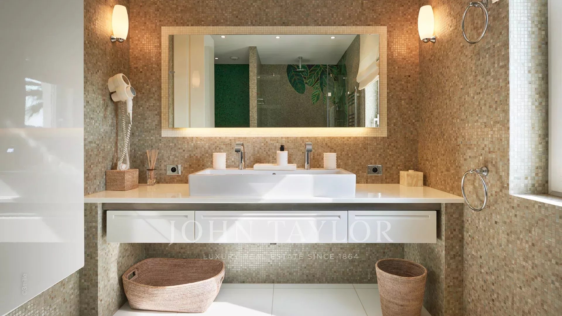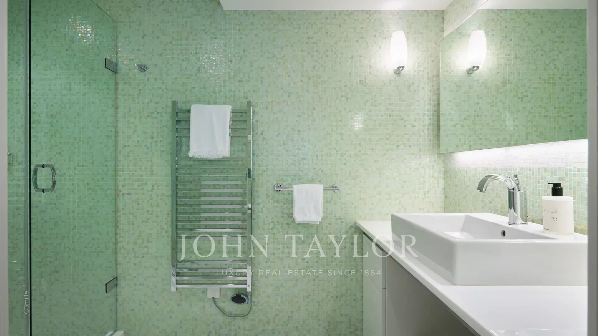 A entrada conduz a uma vasta sala de receção que se abre para um magnífico terraço com vista para o mar e para a Antibes antiga, composta por uma sala de estar e de jantar com capacidade para 12 pessoas.