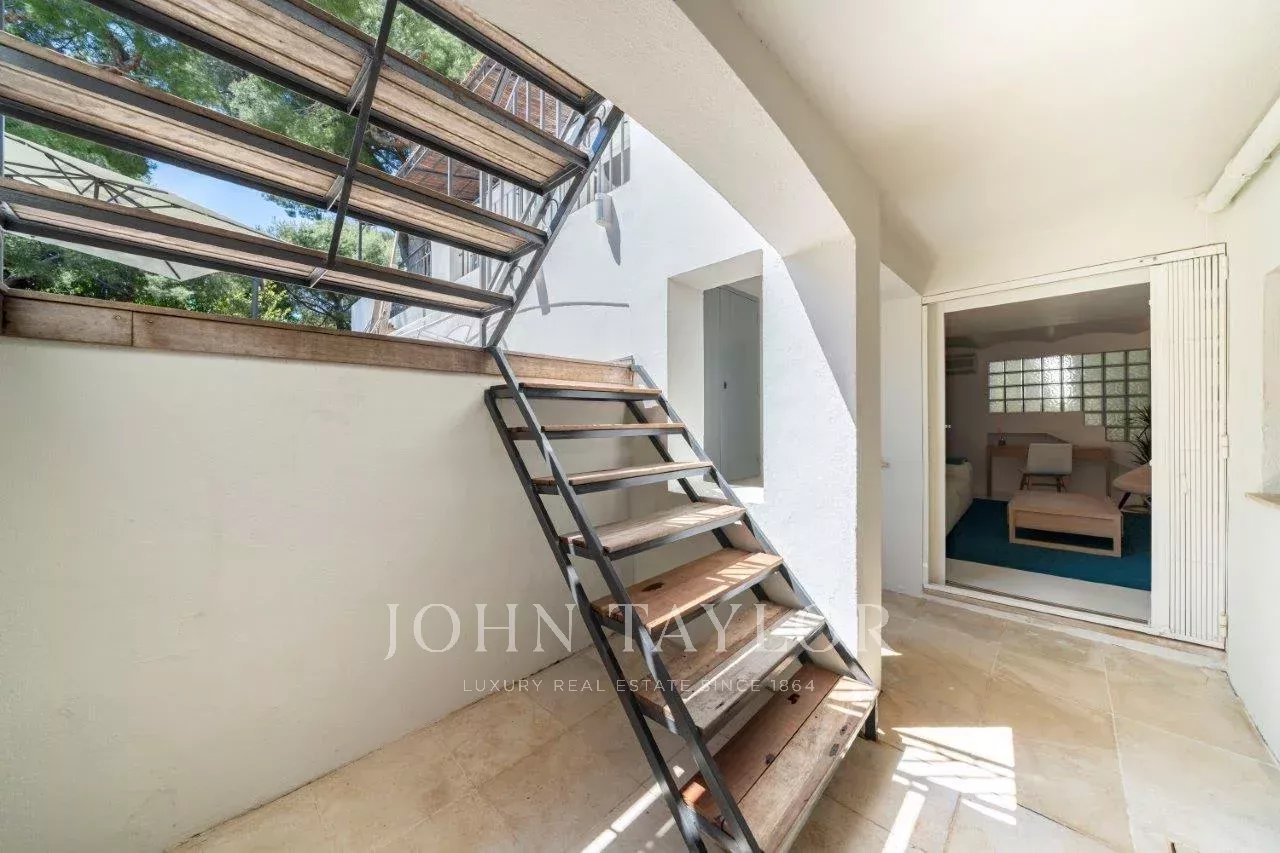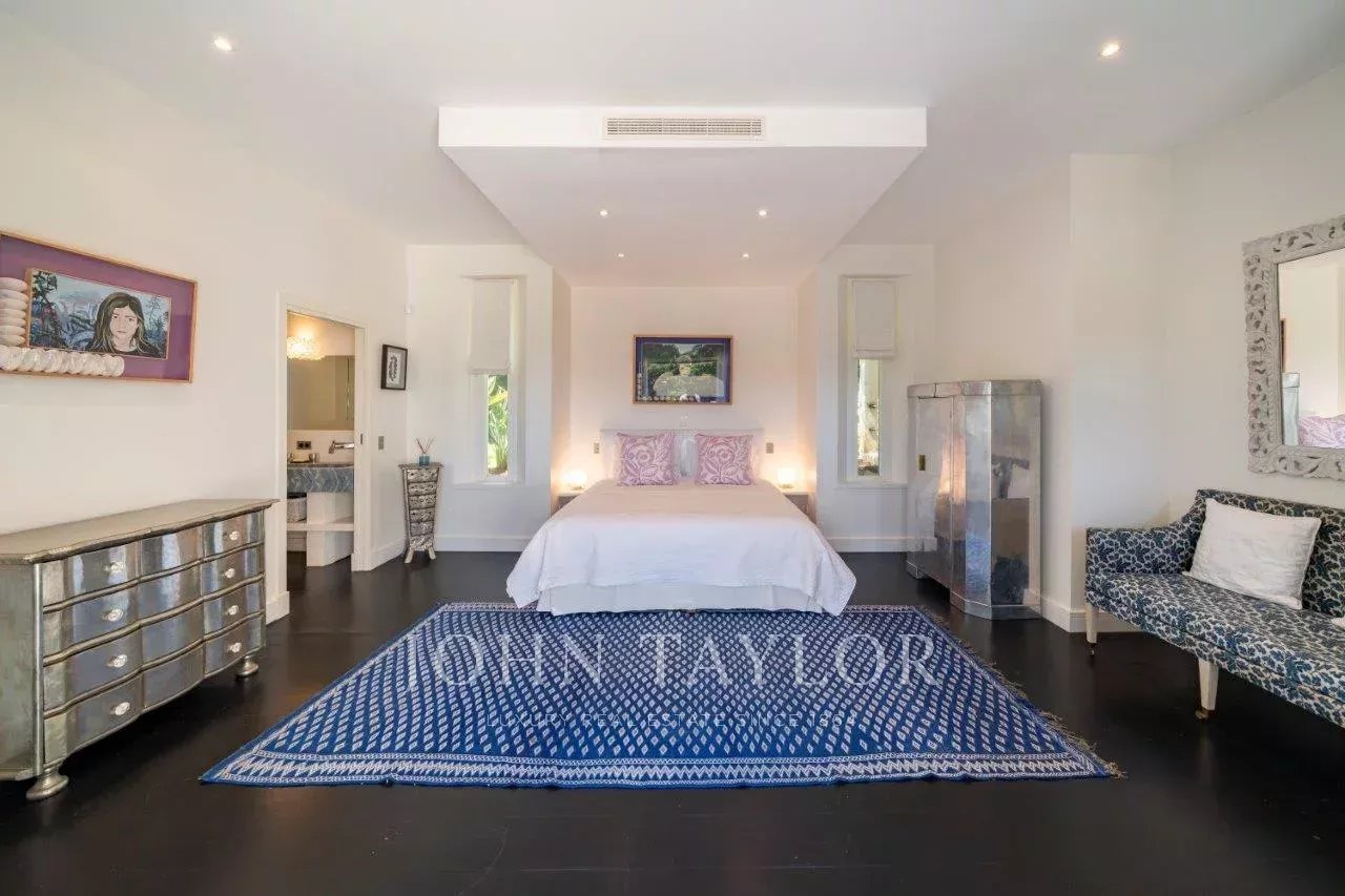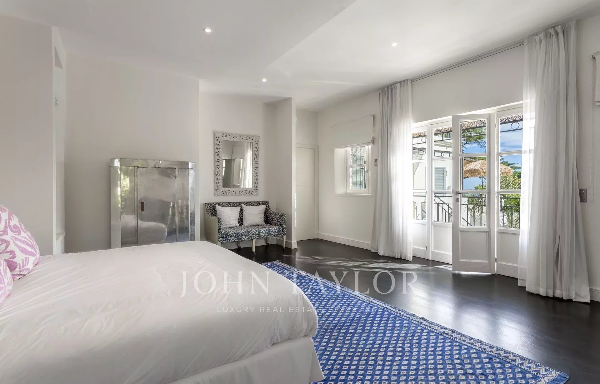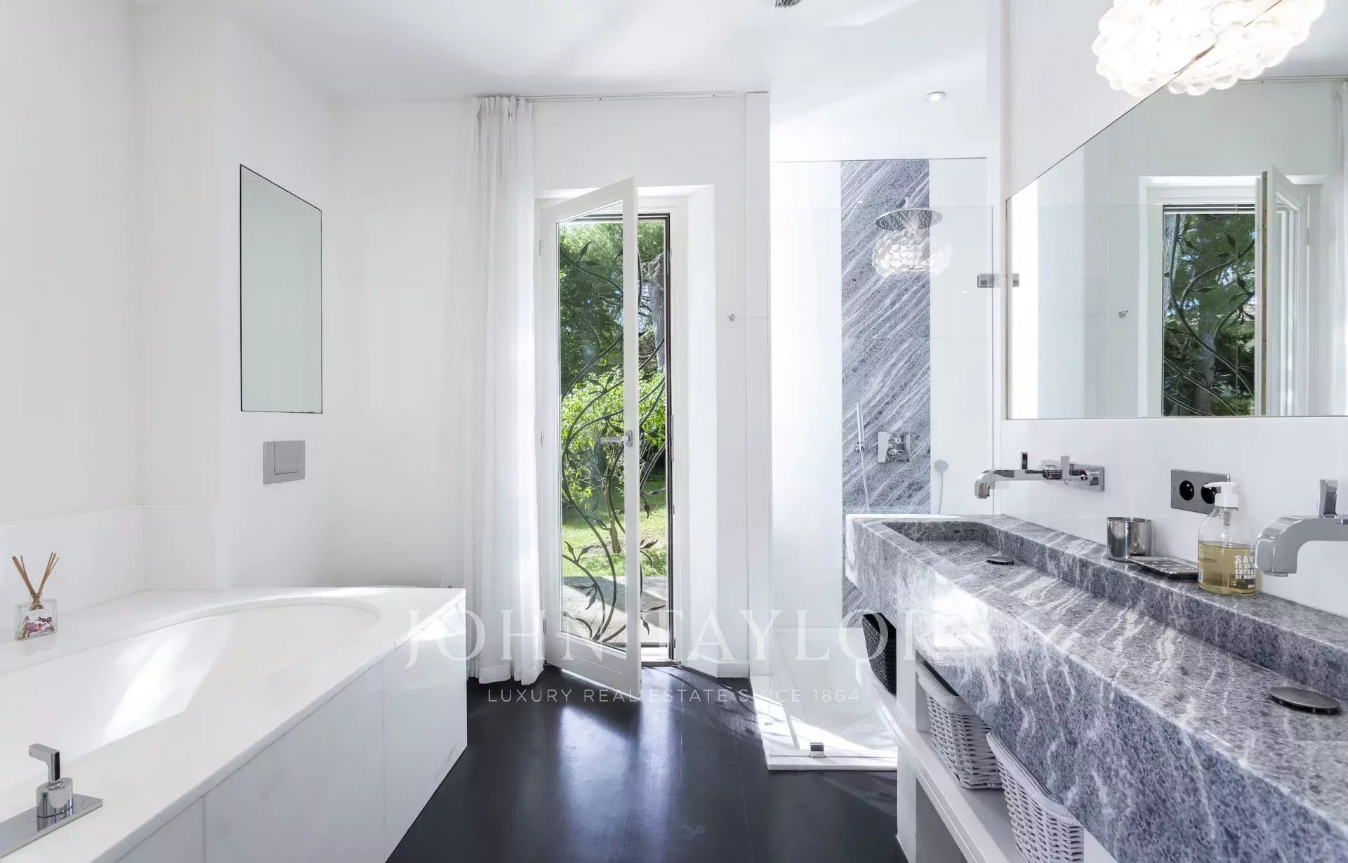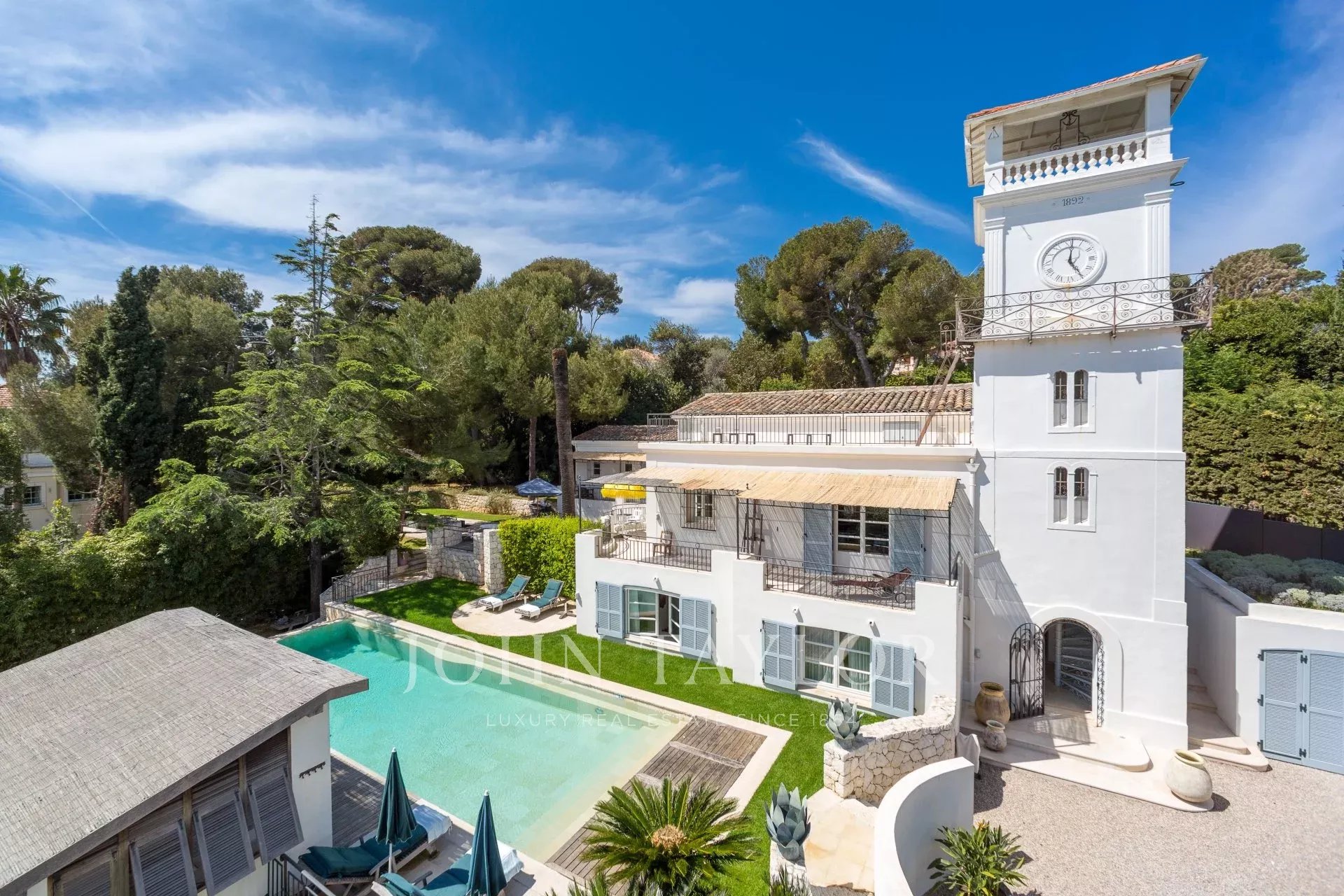 Situada numa pequena propriedade fechada perto das praias de La Garoupe, esta bonita moradia climatizada, totalmente renovada, com 400 m2 de área de habitação, está inserida em 2.700 m2 de magníficos terrenos com cascatas e fontes.