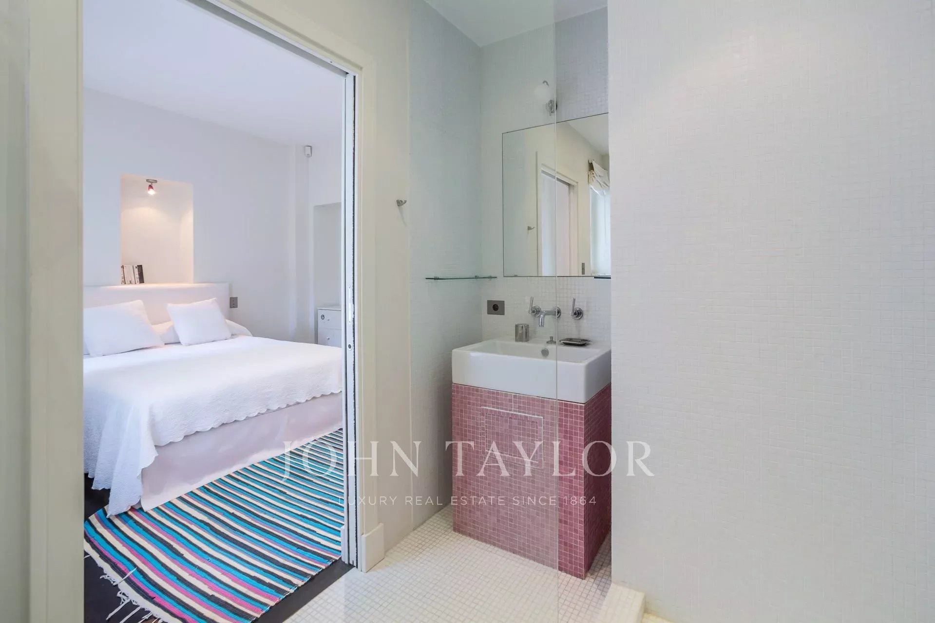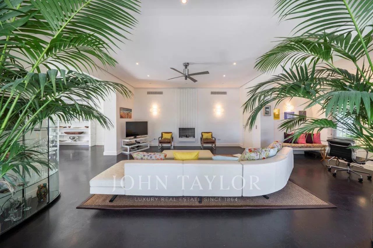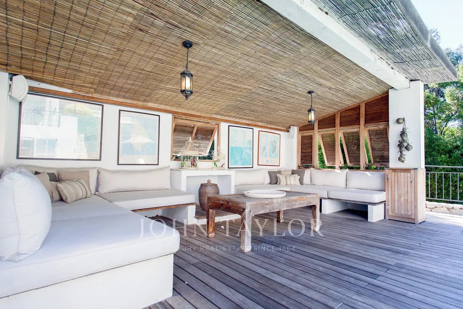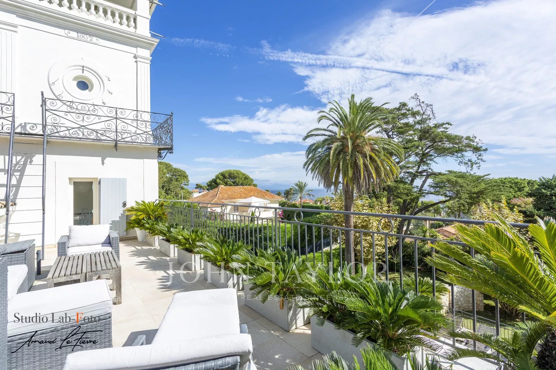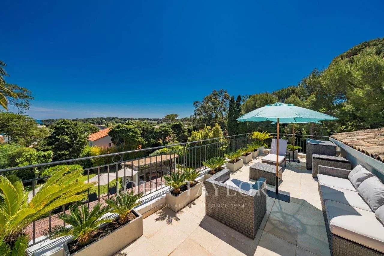 Situada numa pequena propriedade fechada perto das praias de La Garoupe, esta bonita moradia climatizada, totalmente renovada, com 400 m2 de área de habitação, está inserida em 2.700 m2 de magníficos terrenos com cascatas e fontes.