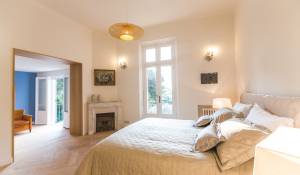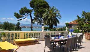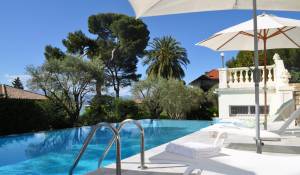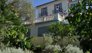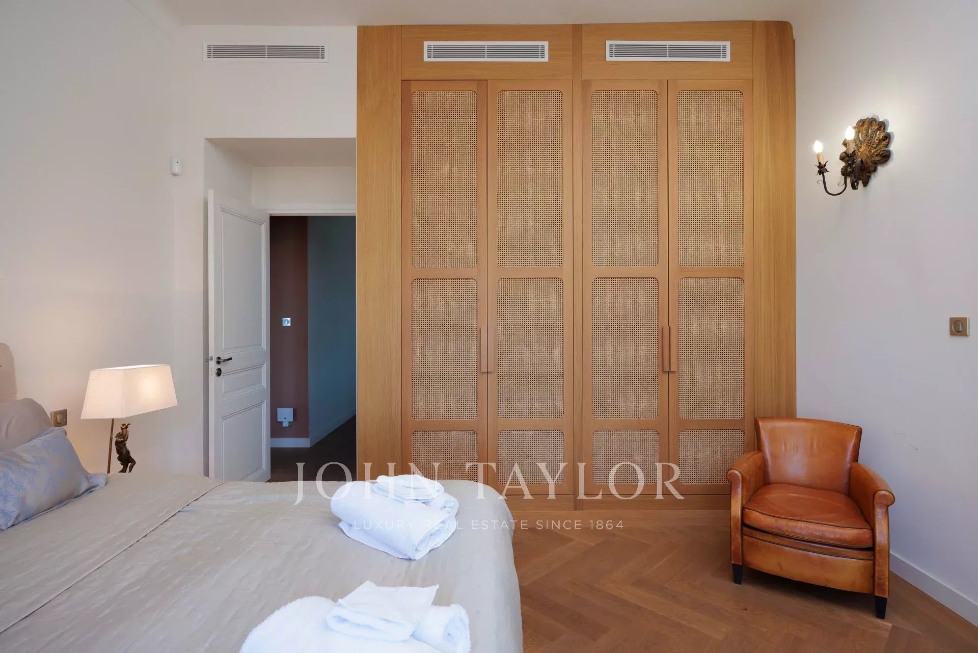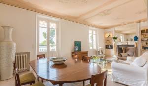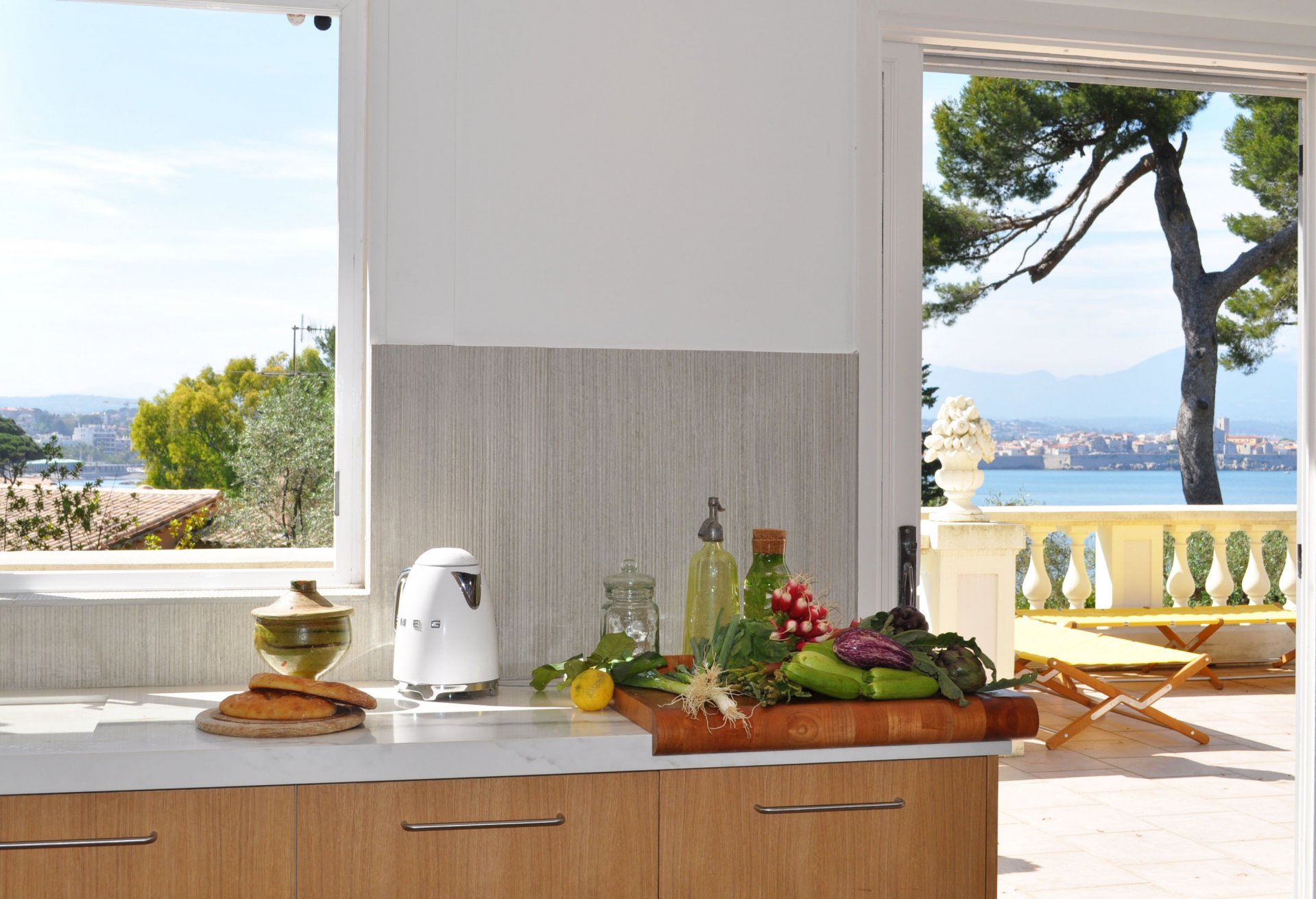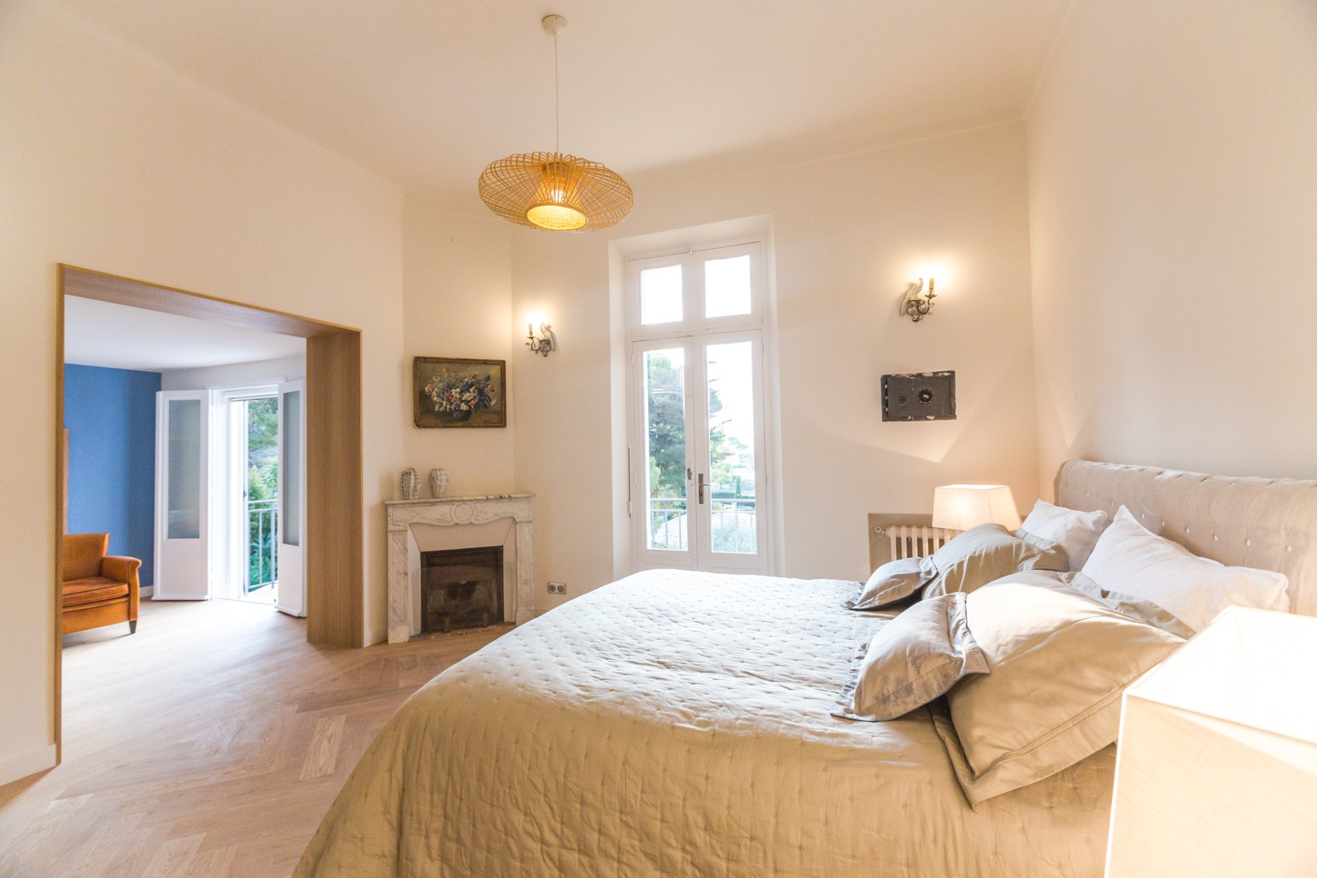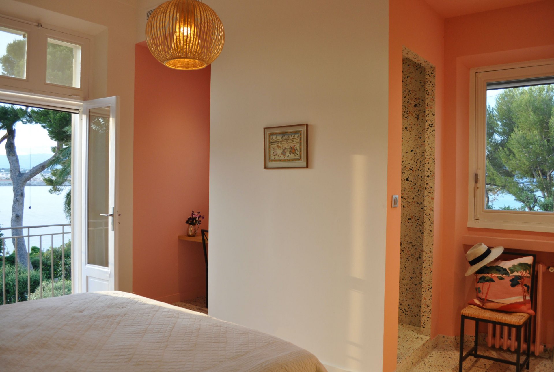 Perto das praias de La Garoupe e La Salis, esta villa dos anos 30 foi completamente renovada em 2019 num estilo chique e contemporâneo que respeita as caraterísticas estilísticas das suas origens, como o teto com frescos na sala de estar.