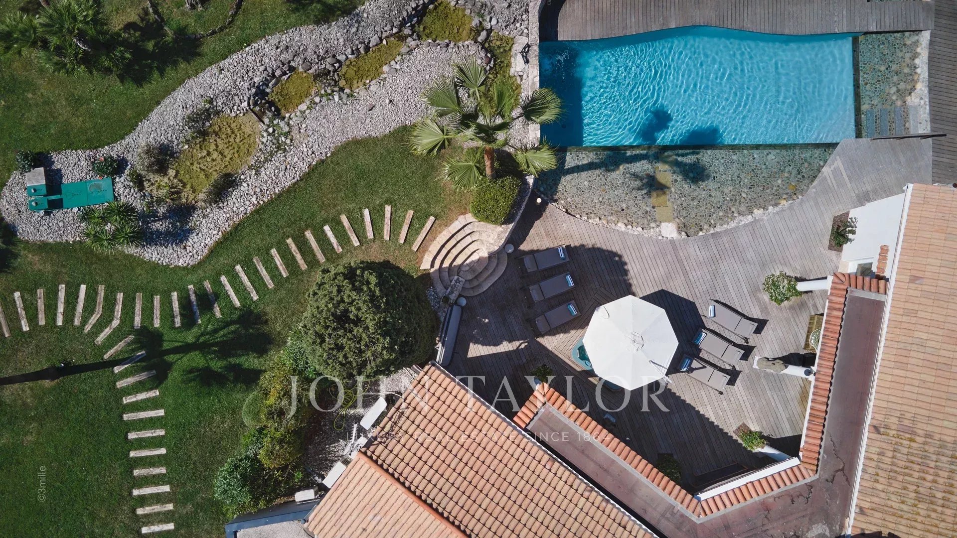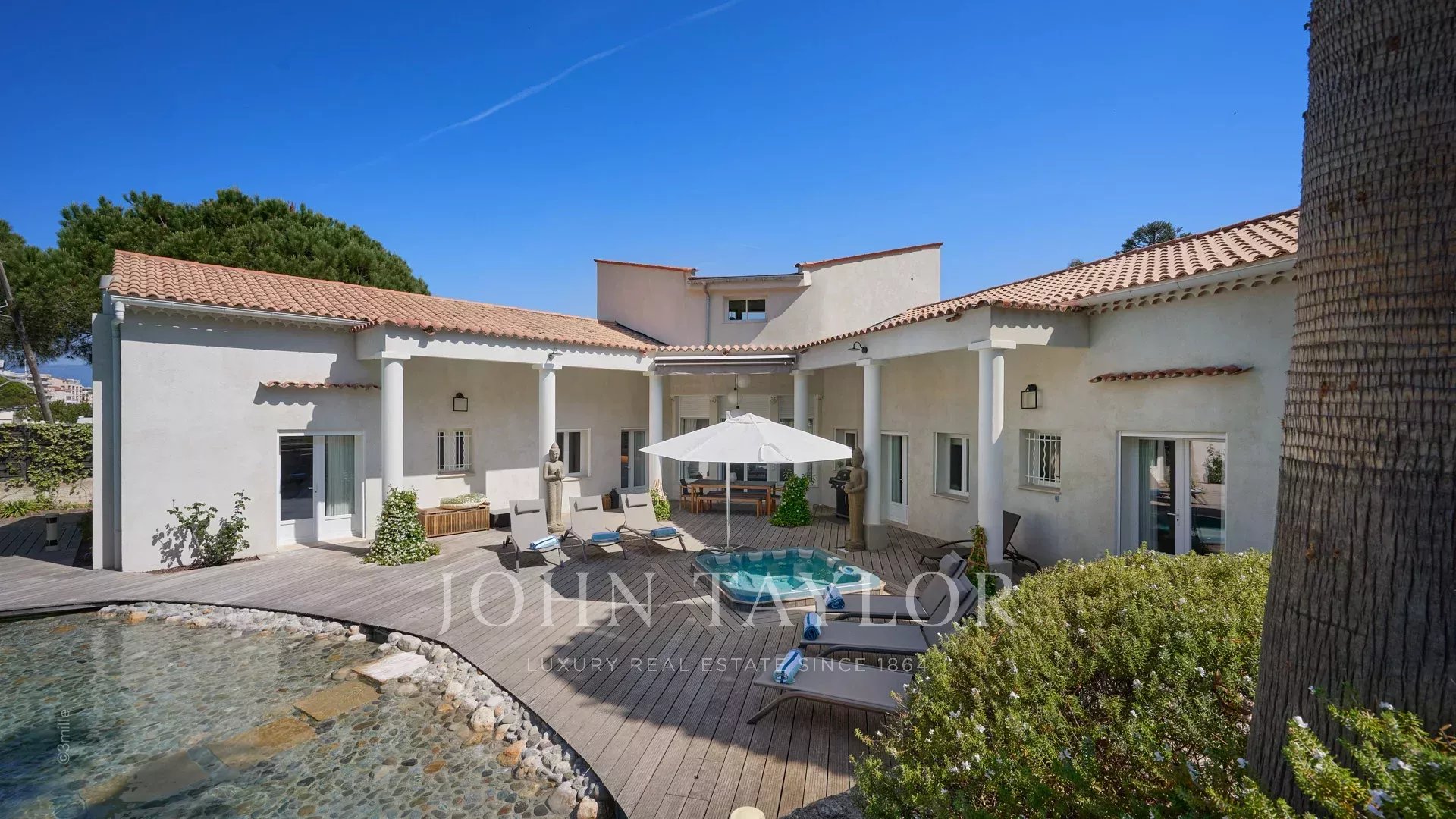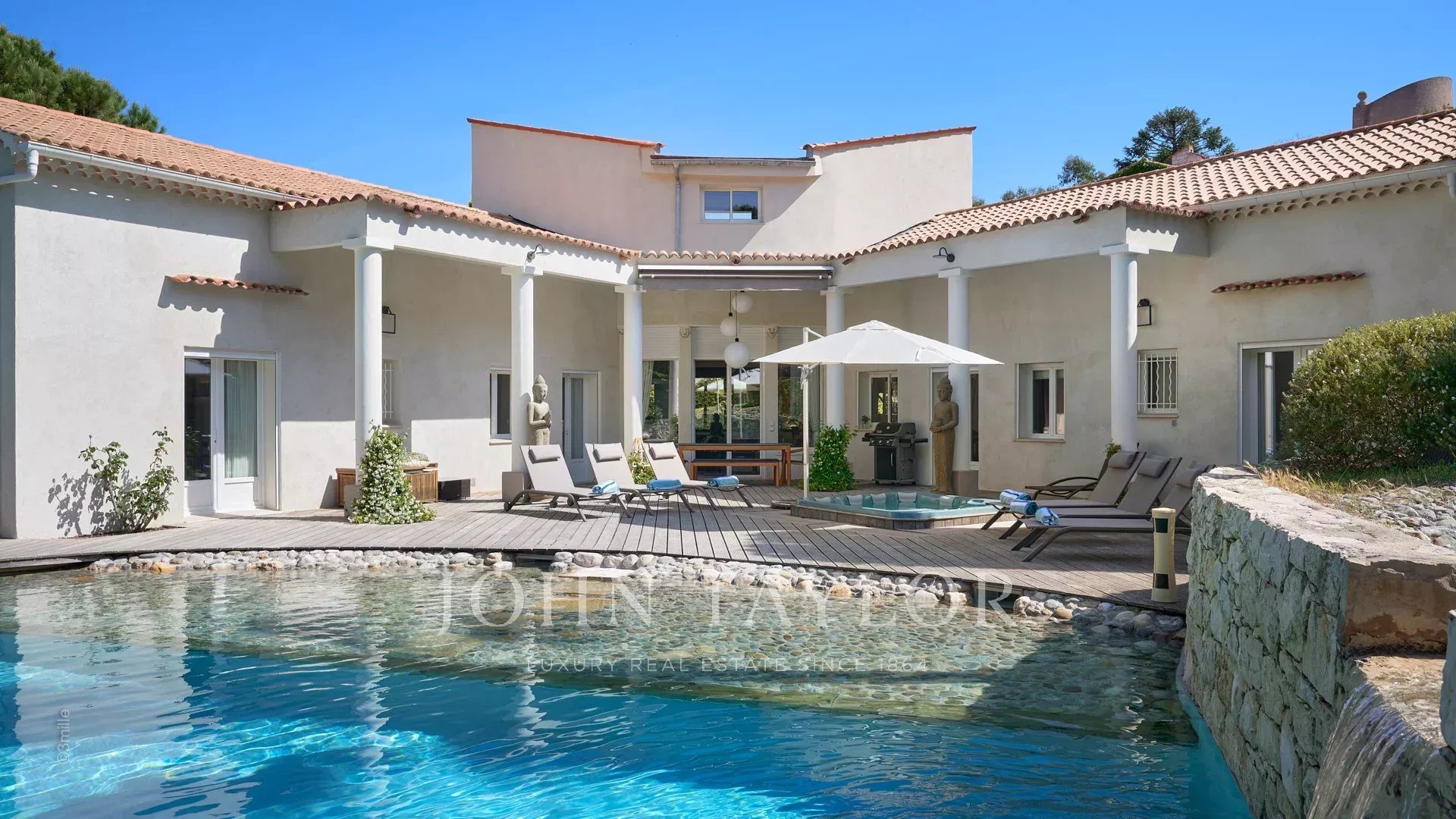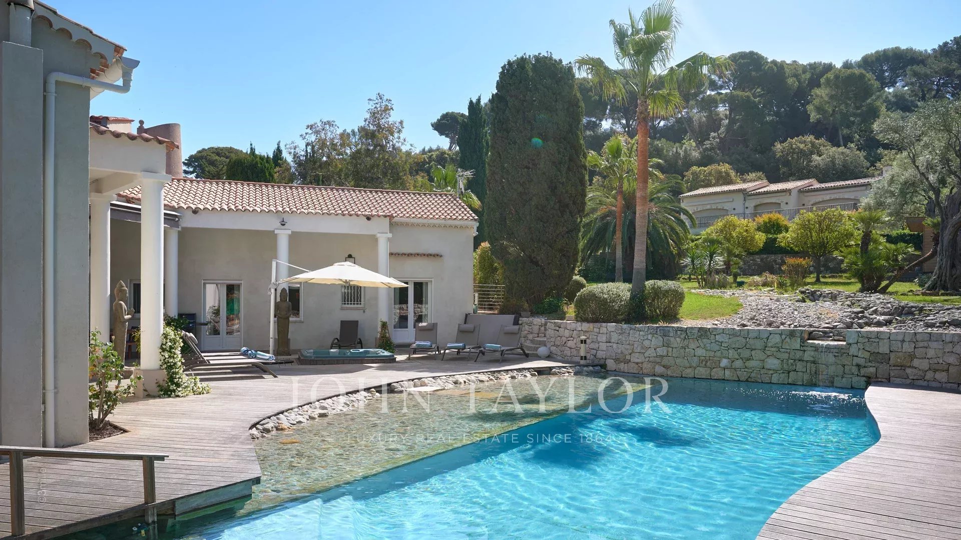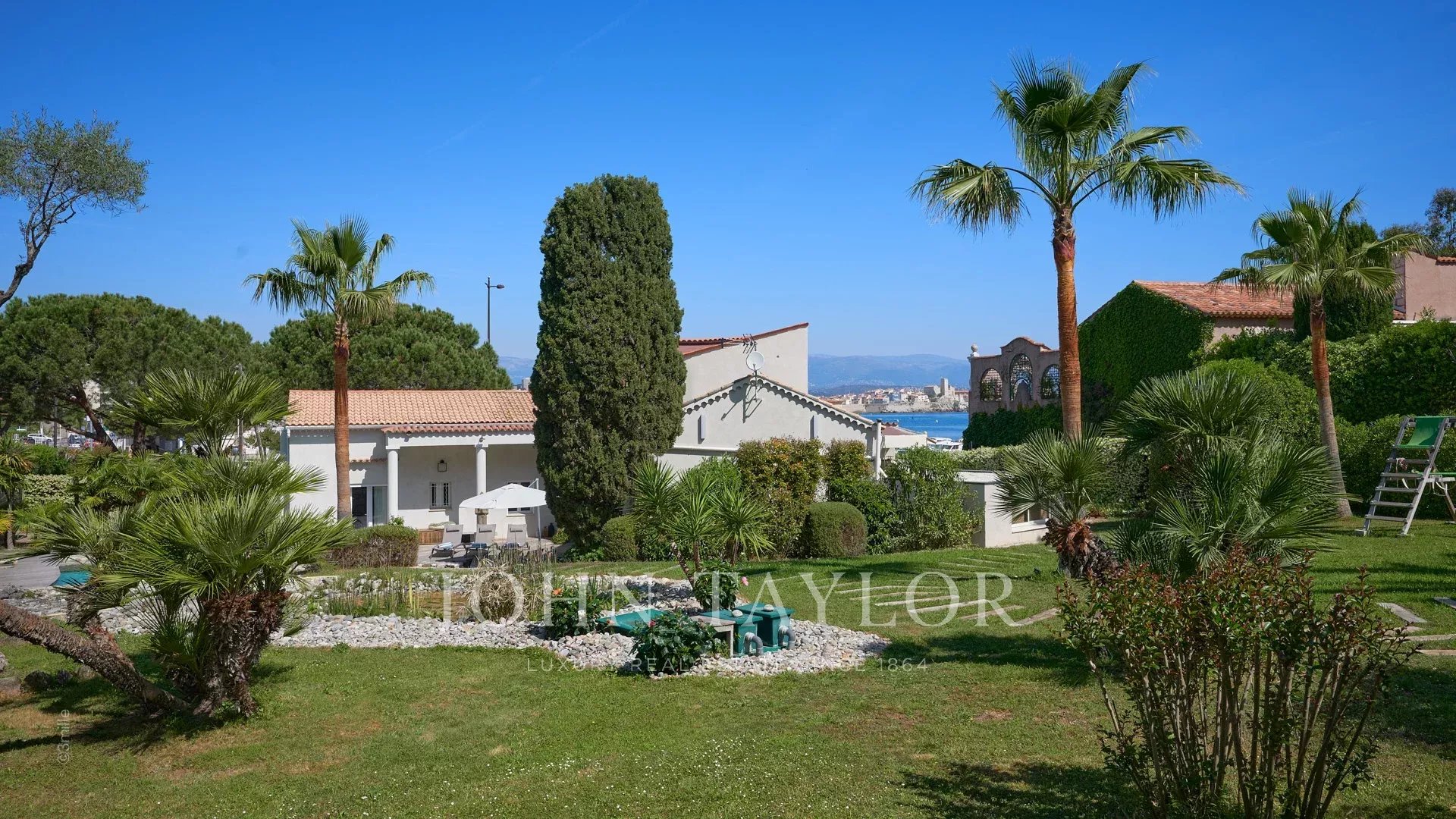 Situada a 100 metros do porto e das praias de La Salis e da cidade de Antibes, esta bela moradia contemporânea oferece 220 m2 de espaço habitacional no coração de um jardim de 2000 m2.