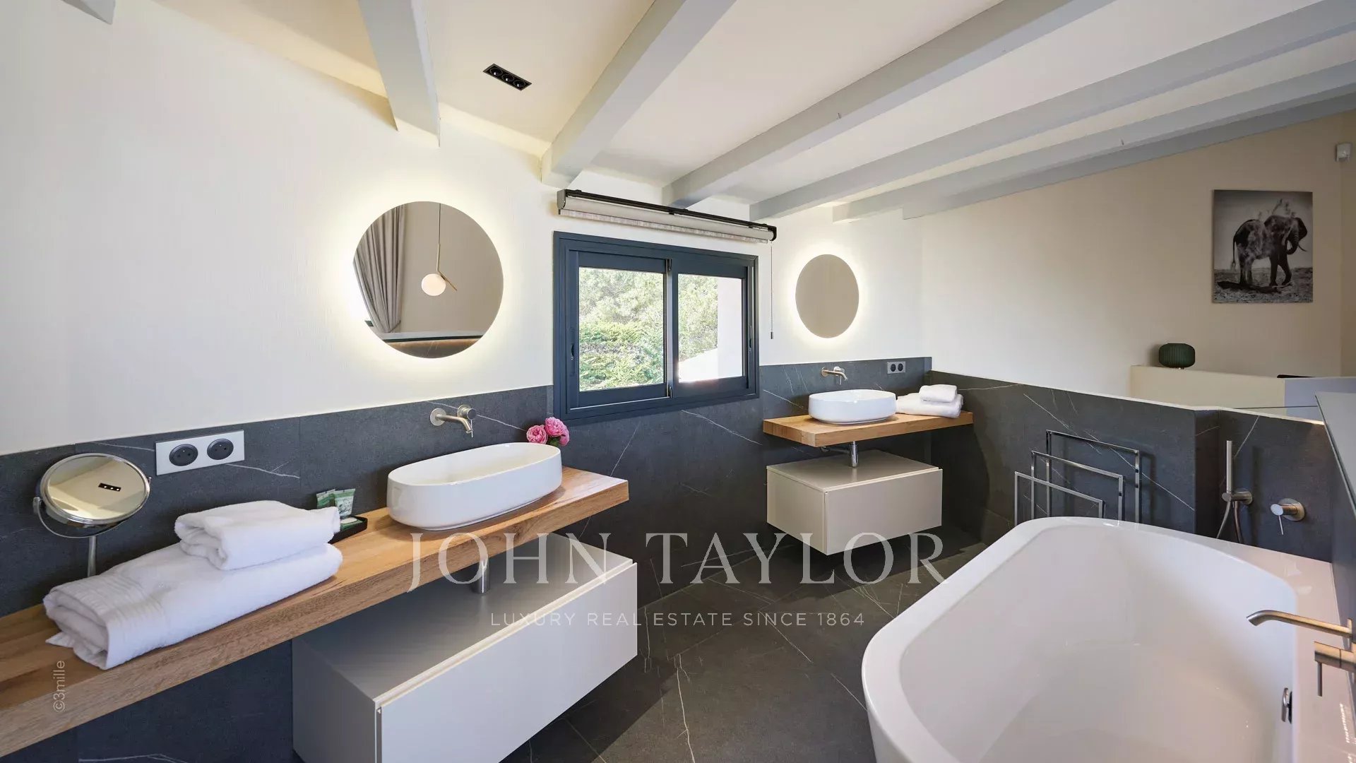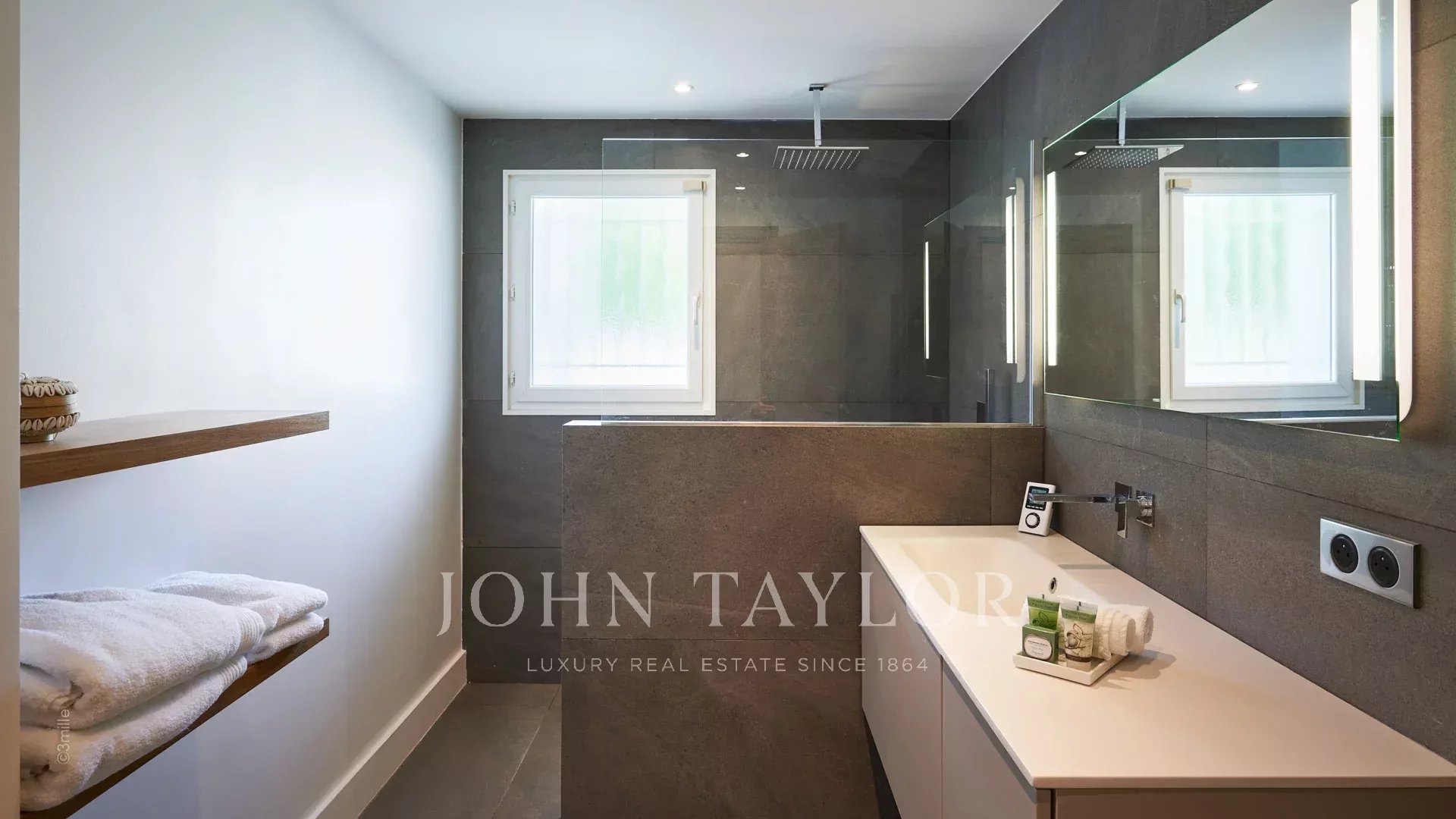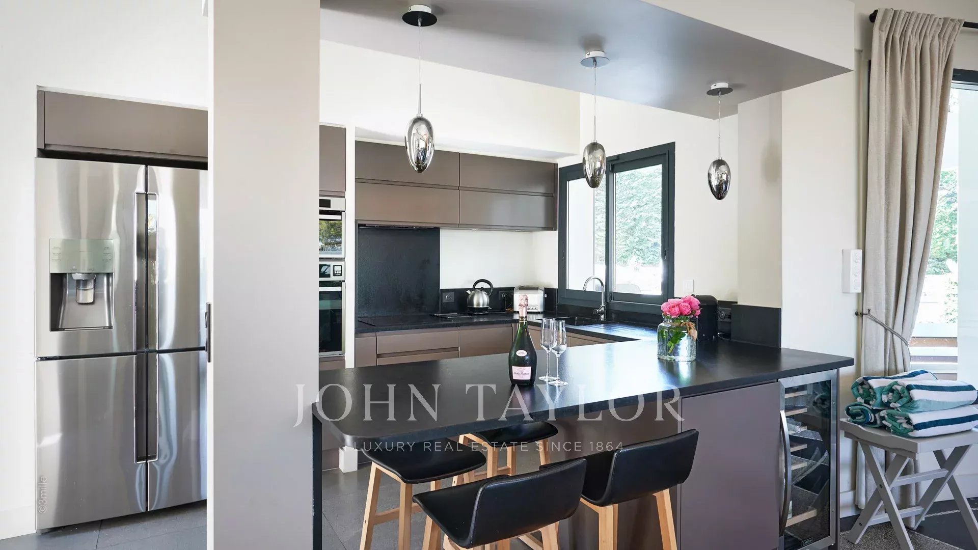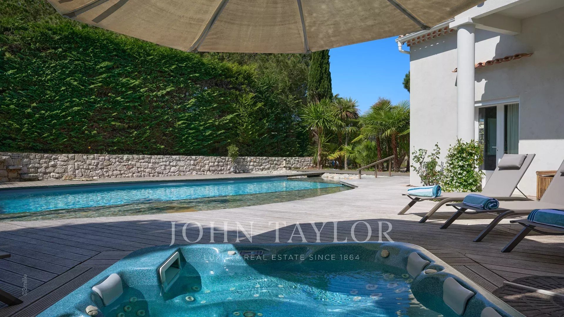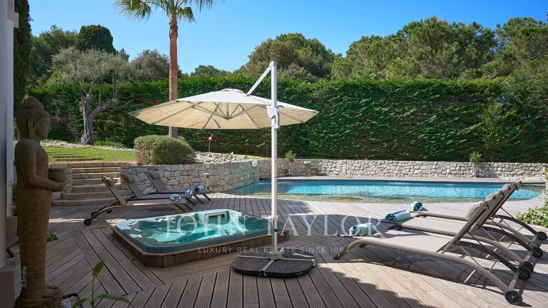 Situada a 100 metros do porto e das praias de La Salis e da cidade de Antibes, esta bela moradia contemporânea oferece 220 m2 de espaço habitacional no coração de um jardim de 2000 m2.