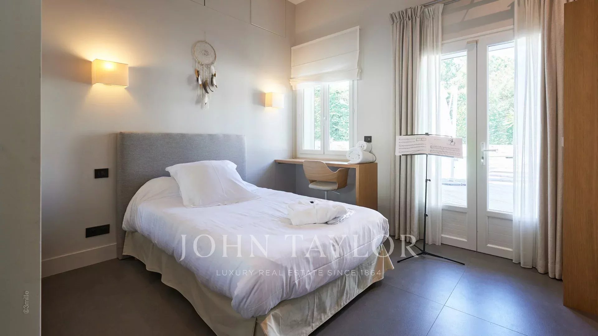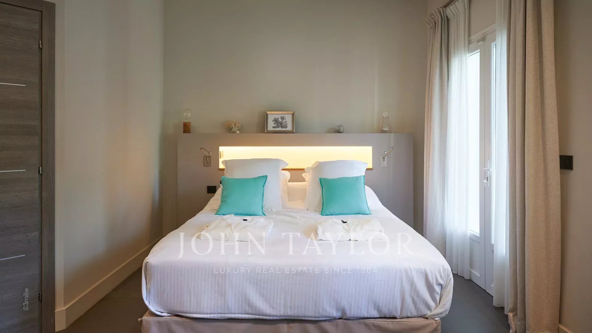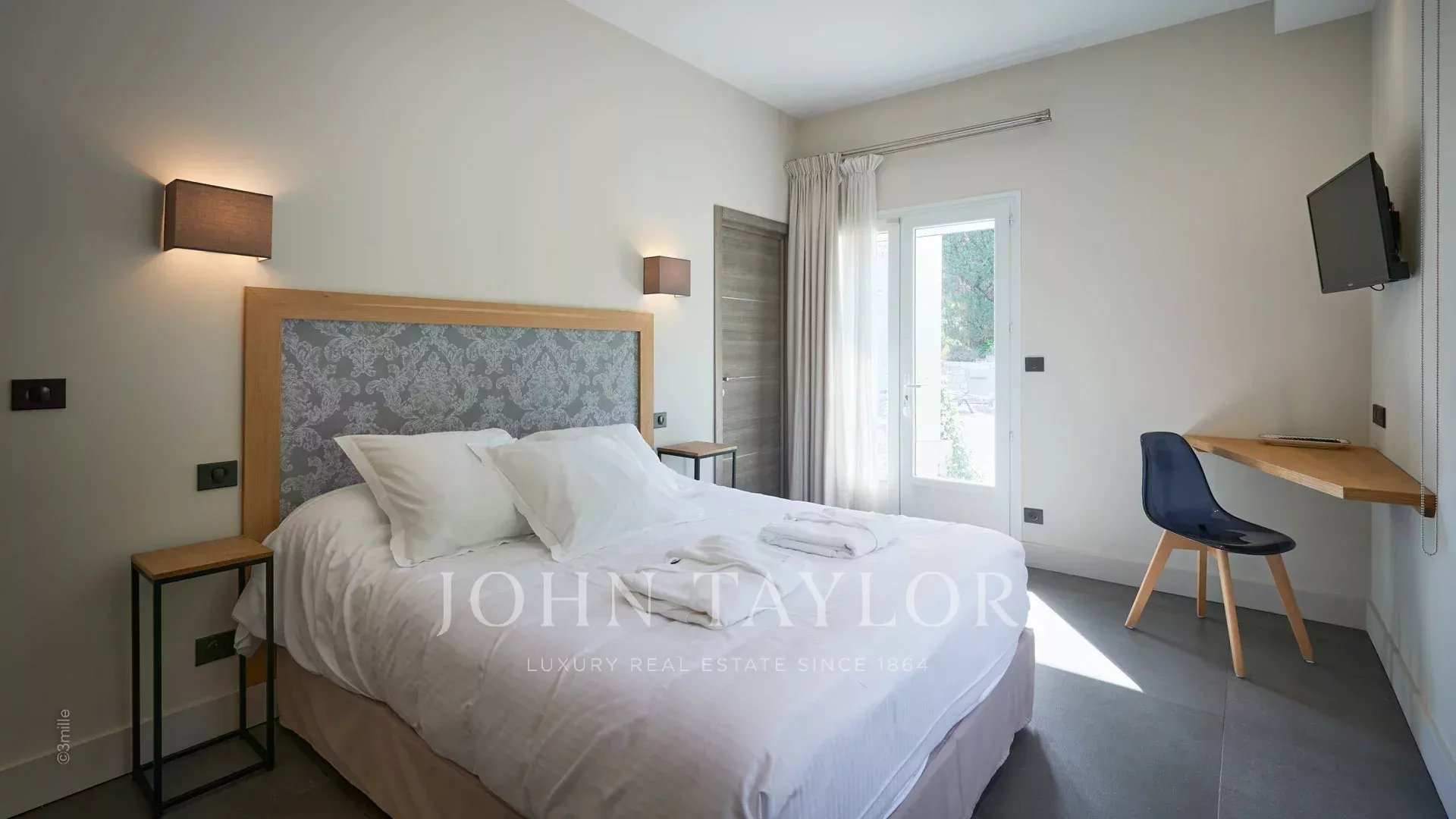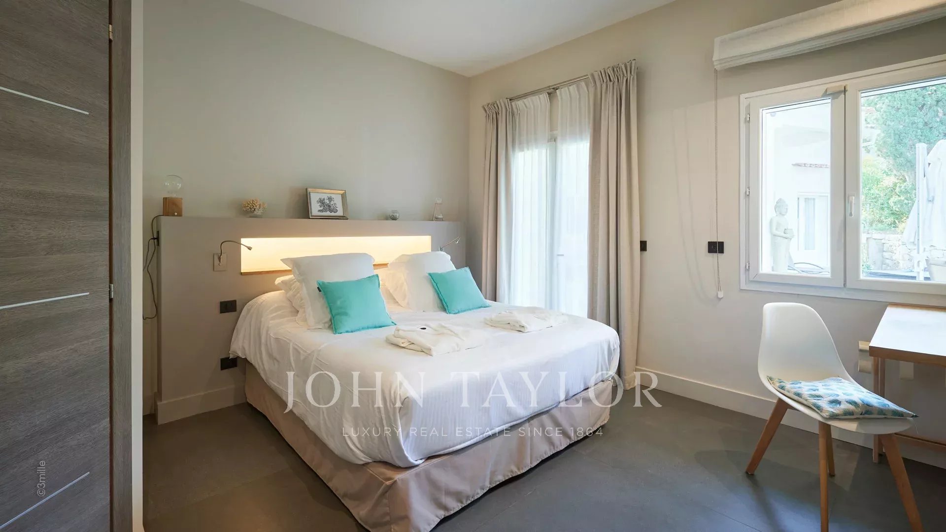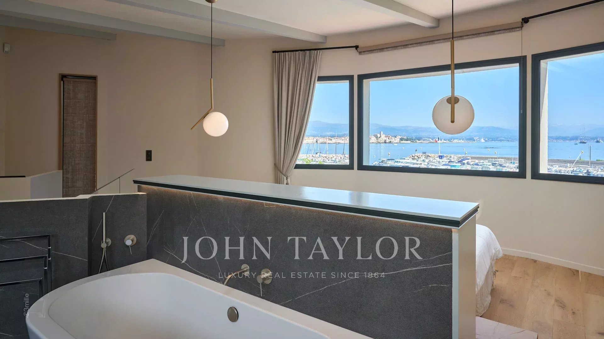 Quarto principal (cama de casal), vista para a praia de Salis e o centro histórico de Antibes - Casa de banho aberta/WC