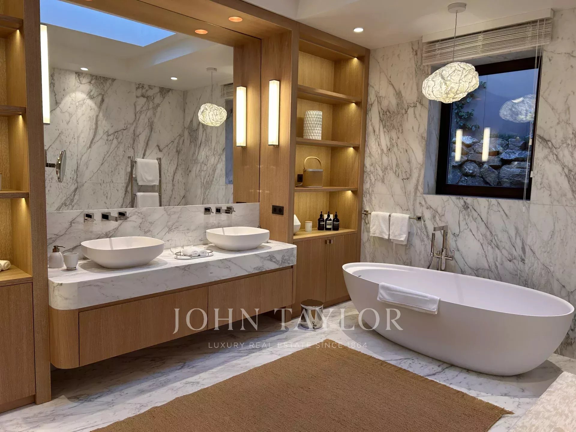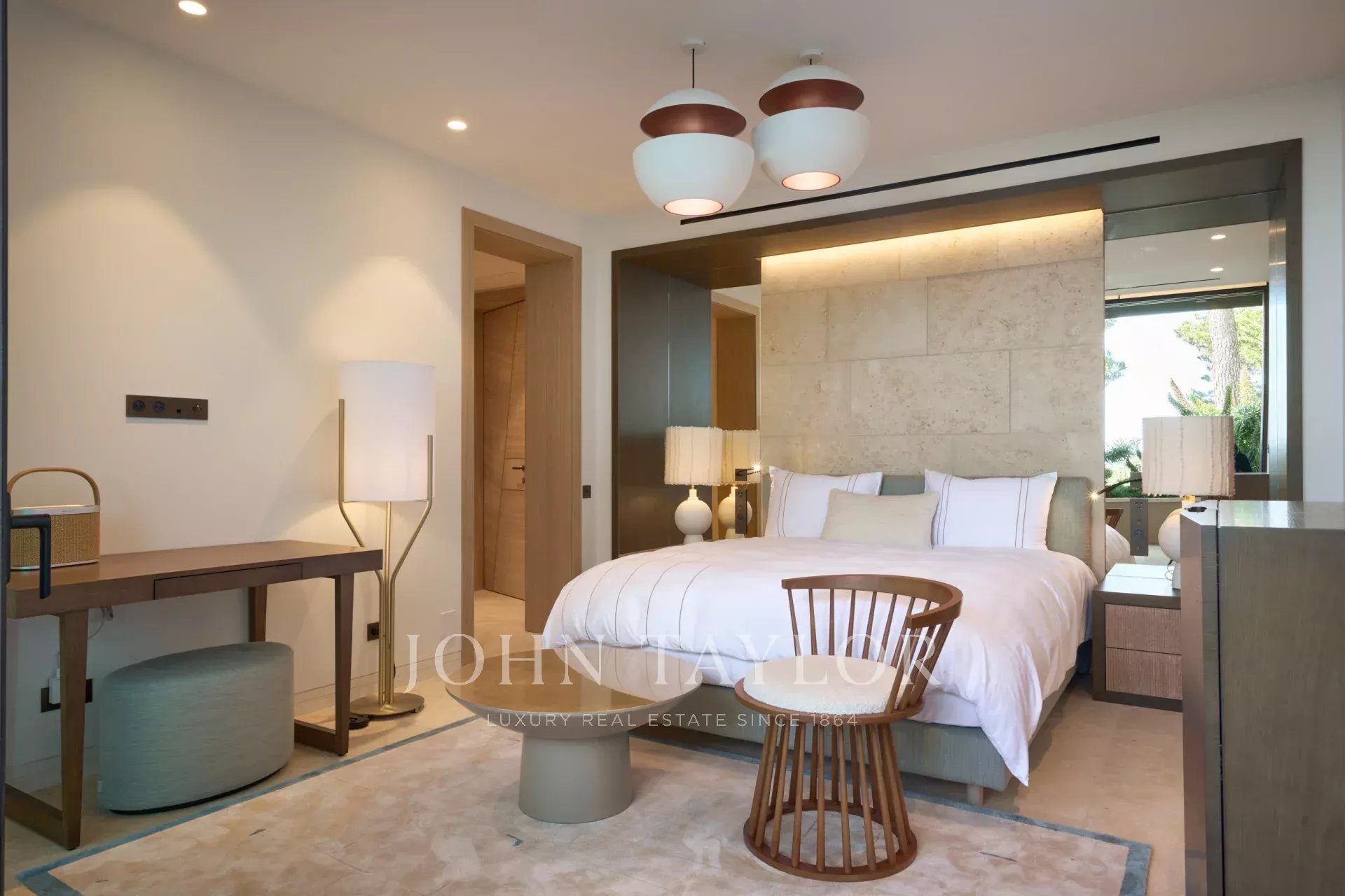 -Quarto principal: Uma sumptuosa suite com uma sala privada, um espaçoso quarto de vestir e casa de banho, um terraço com vista panorâmica para o mar.