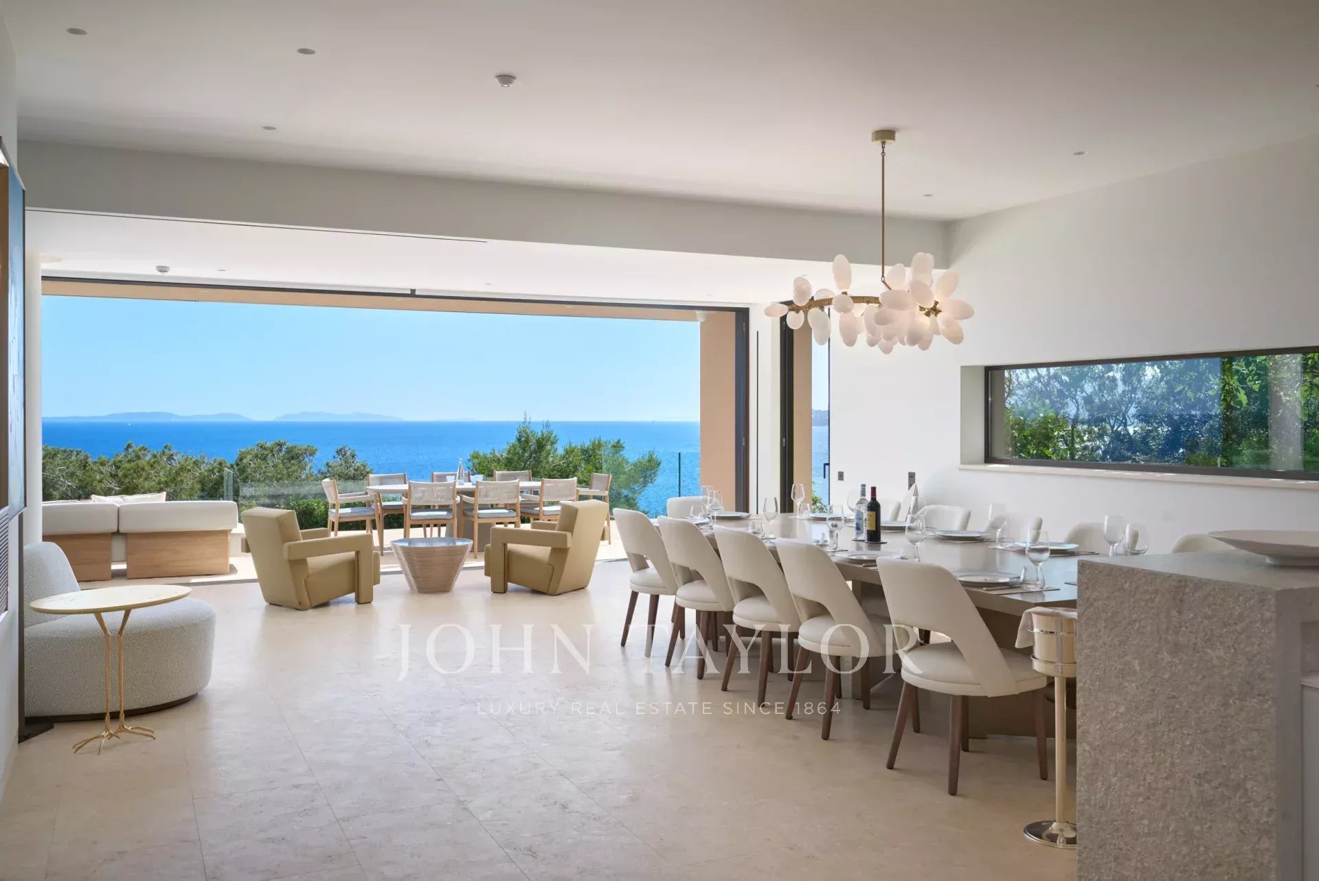 - Sala de estar que se abre para grandes janelas panorâmicas: um espaço de vida luminoso e arejado que se funde harmoniosamente com o exterior, oferecendo vistas espectaculares sobre o mar.