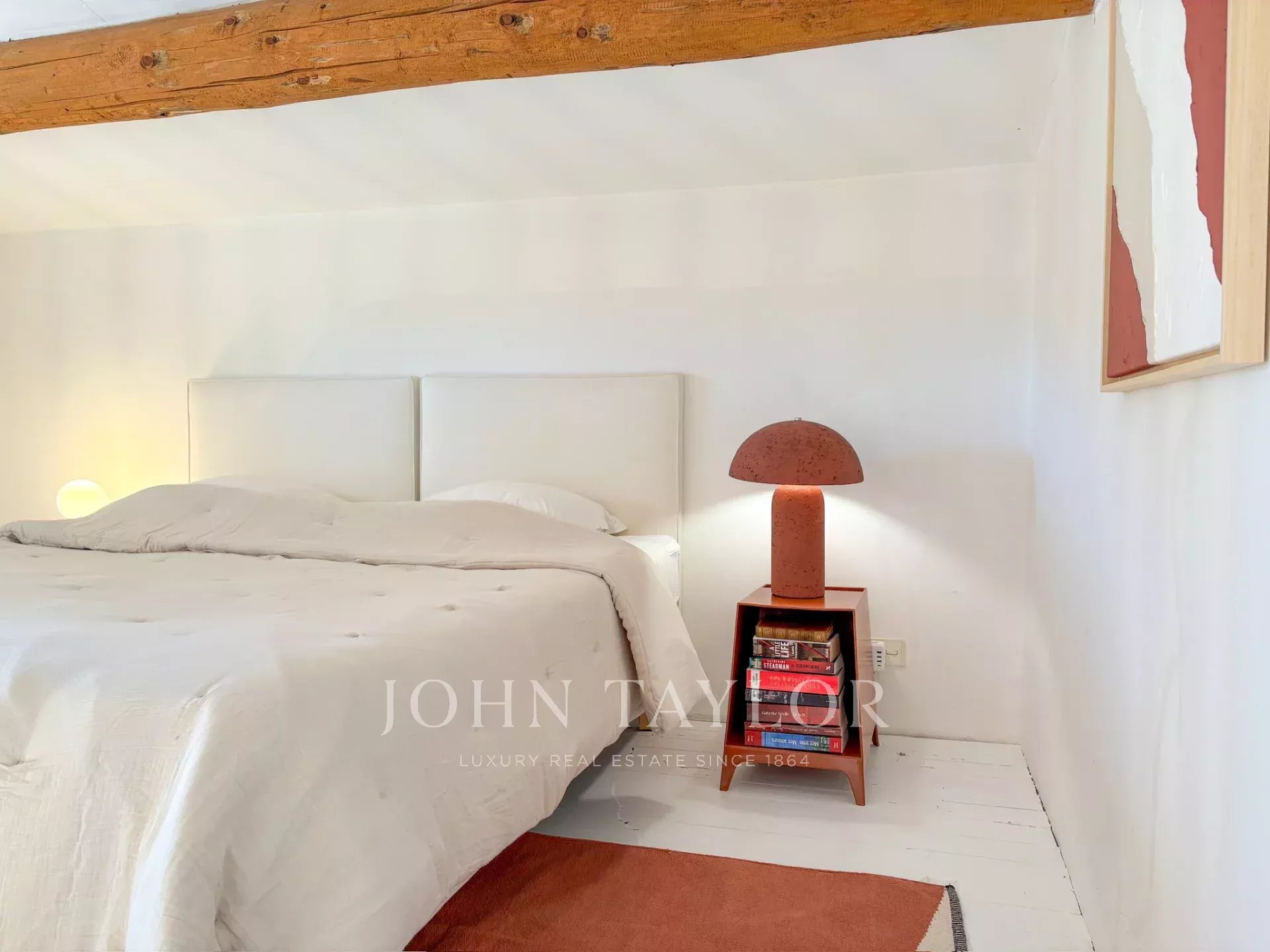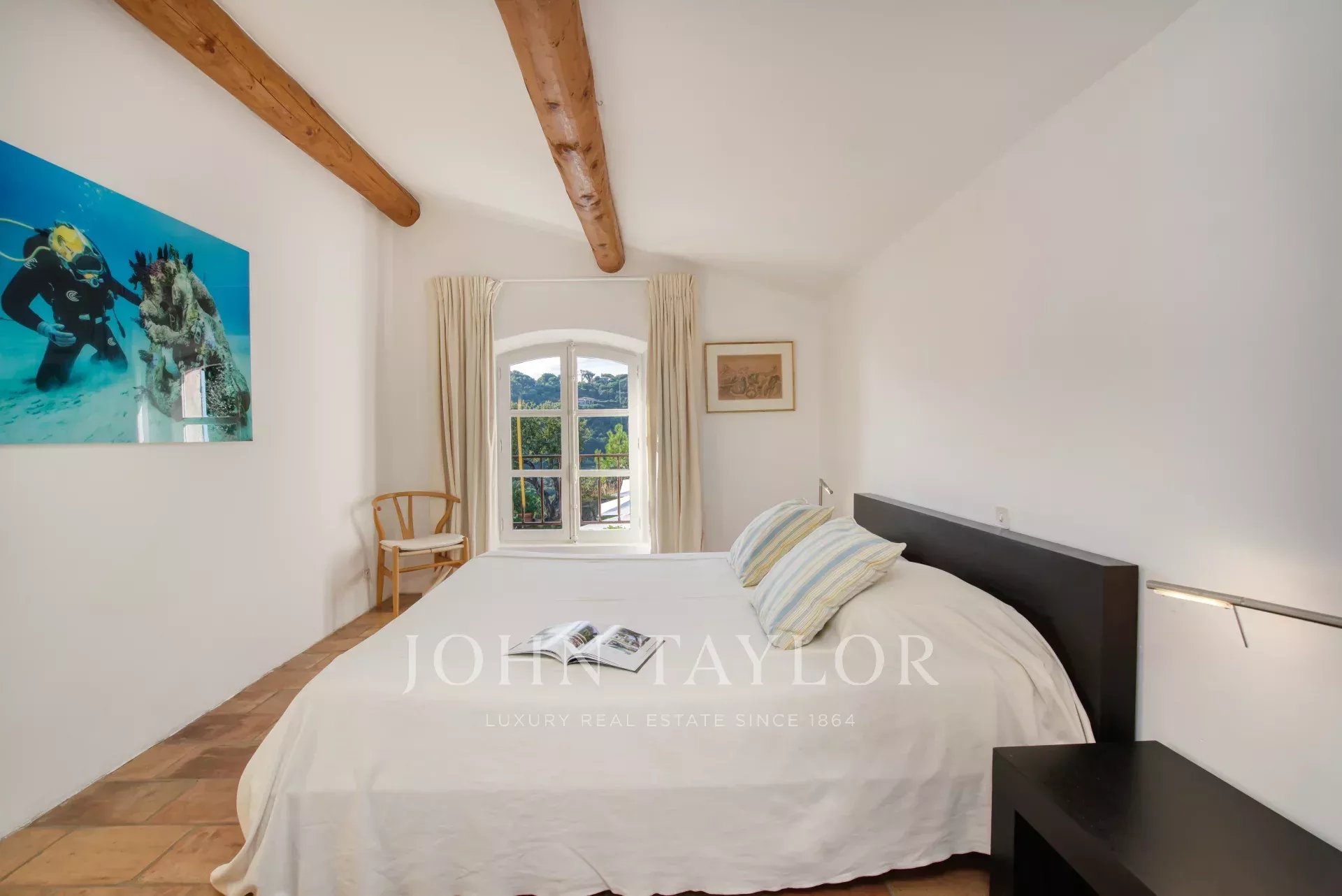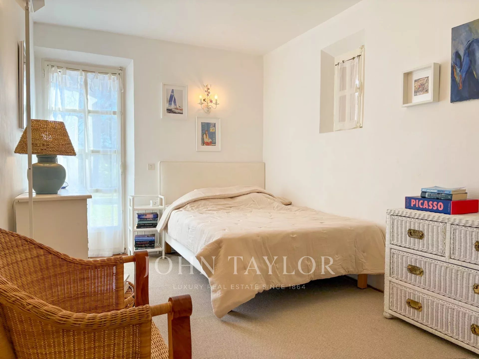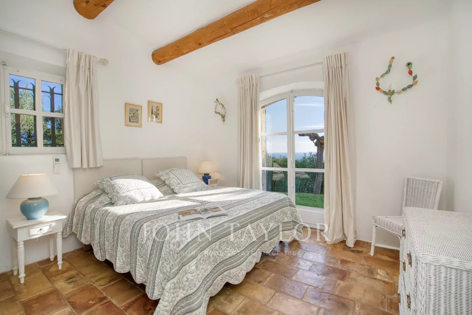 No andar de cima, o quarto principal beneficia de um grande terraço com vistas deslumbrantes sobre o mar, uma cama king-size, casa de banho privativa e quarto de vestir. Também está disponível um quarto de criança com ligação, bem como outro quarto duplo com casa de banho privativa com duche.