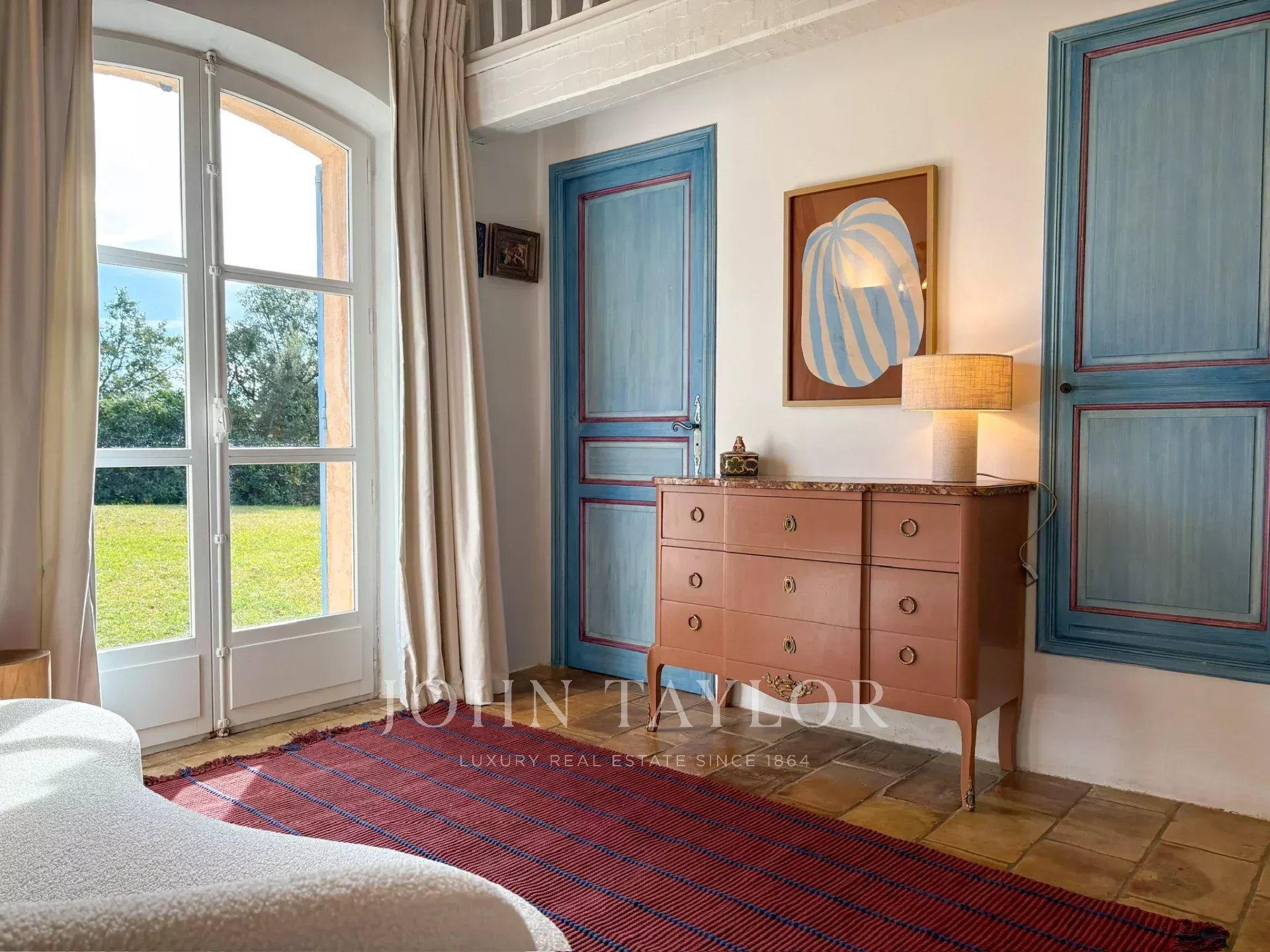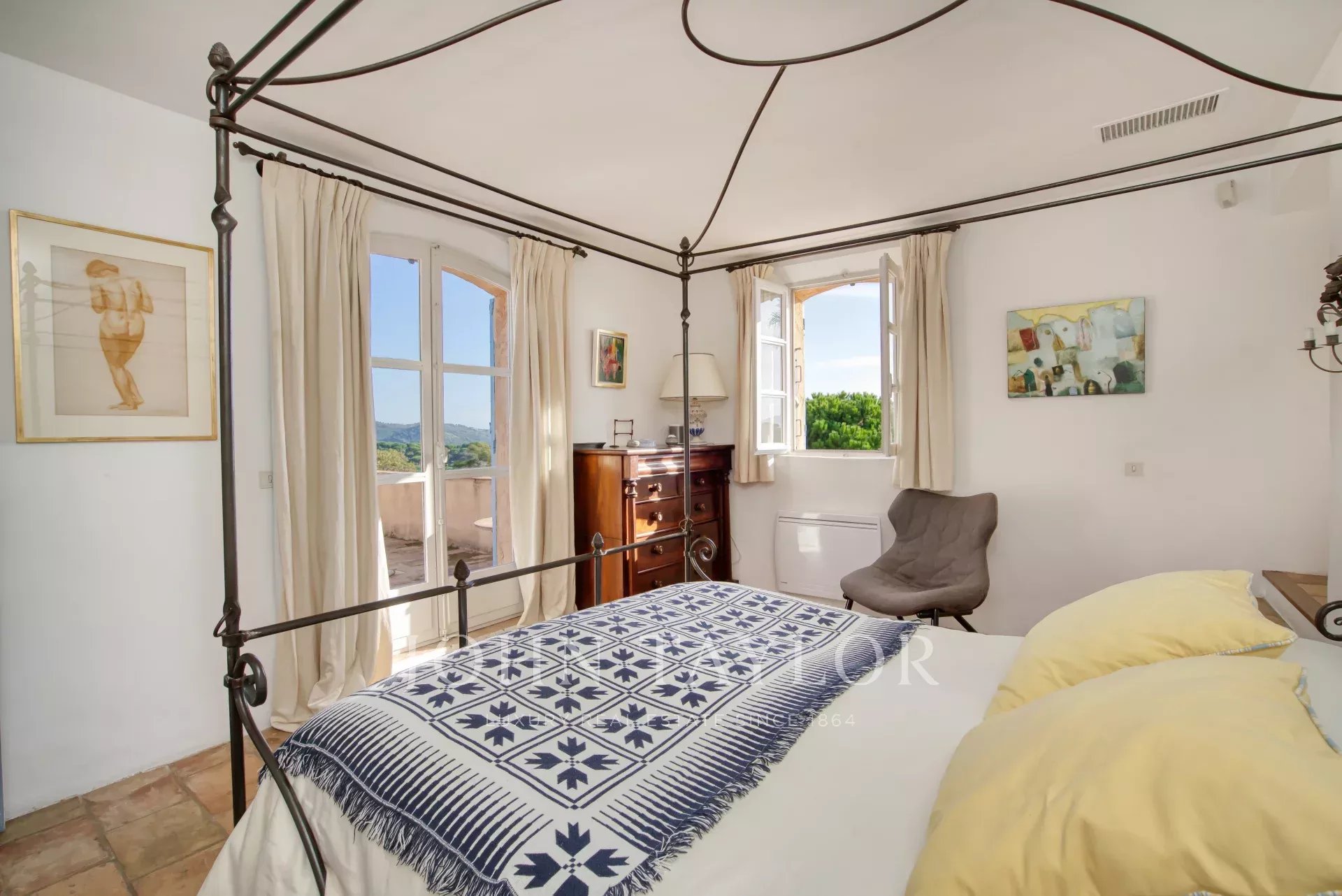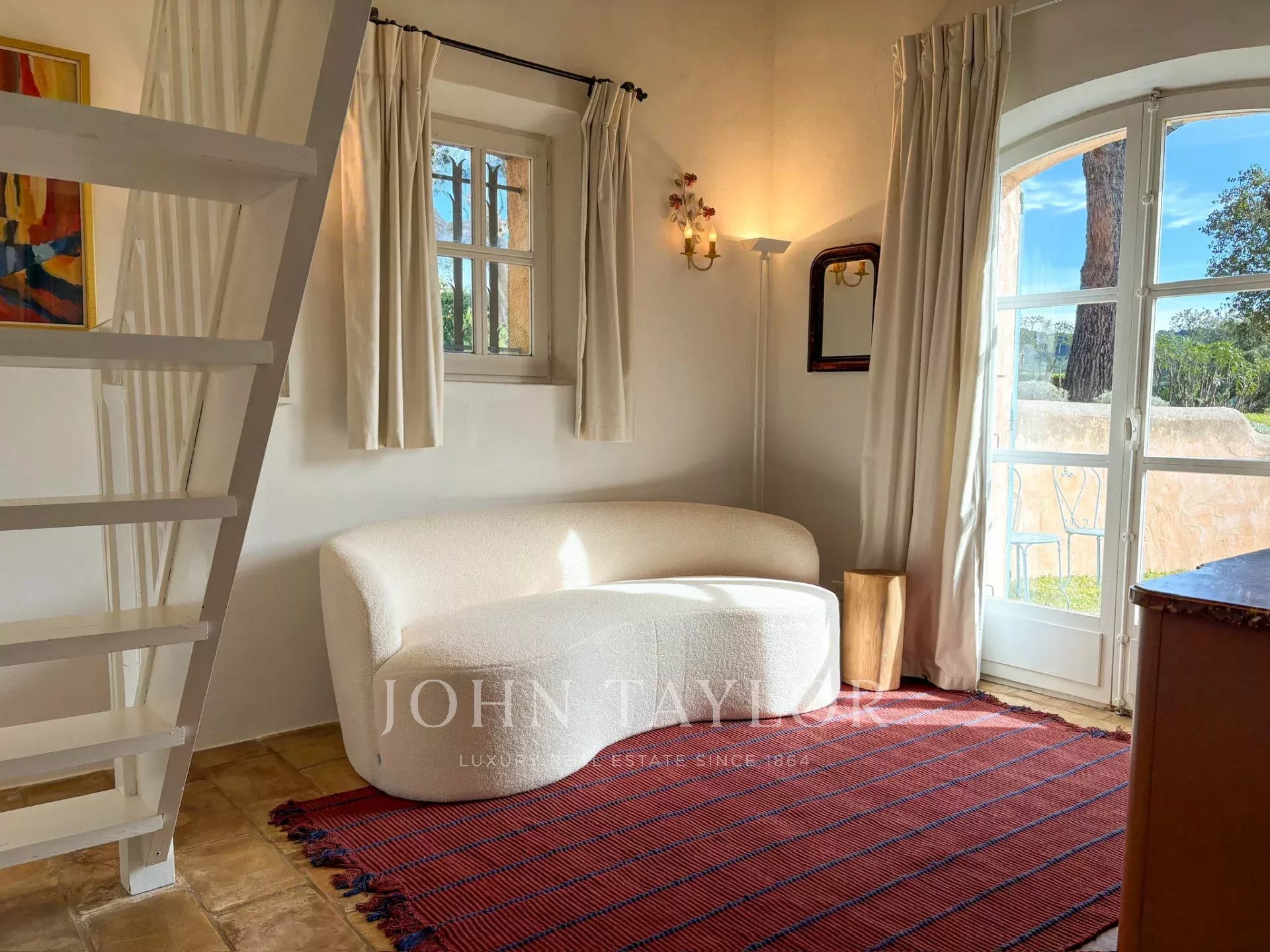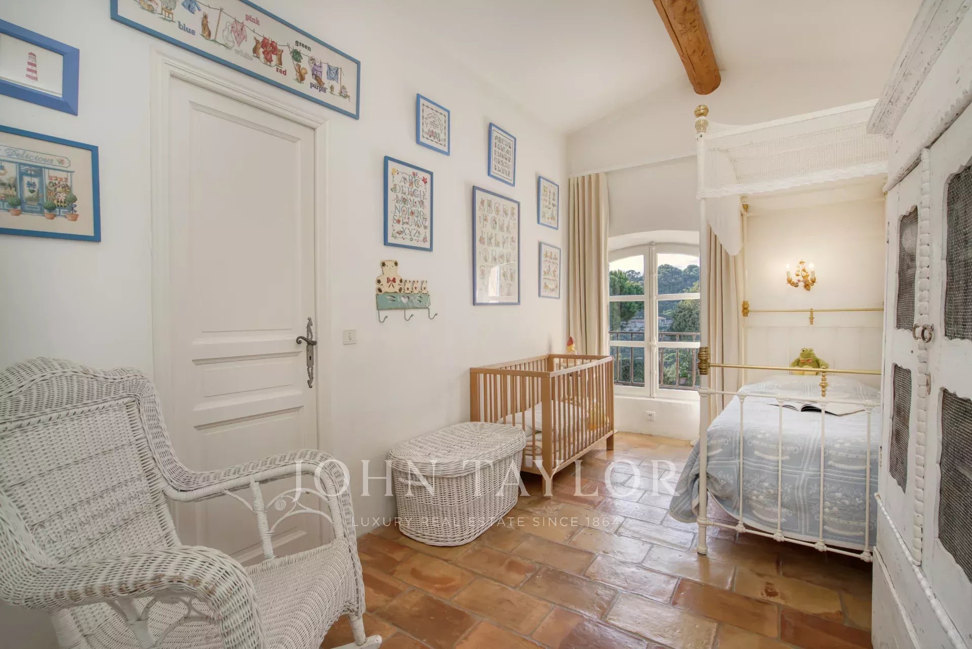 No andar de cima, o quarto principal beneficia de um grande terraço com vistas deslumbrantes sobre o mar, uma cama king-size, casa de banho privativa e quarto de vestir. Também está disponível um quarto de criança com ligação, bem como outro quarto duplo com casa de banho privativa com duche.