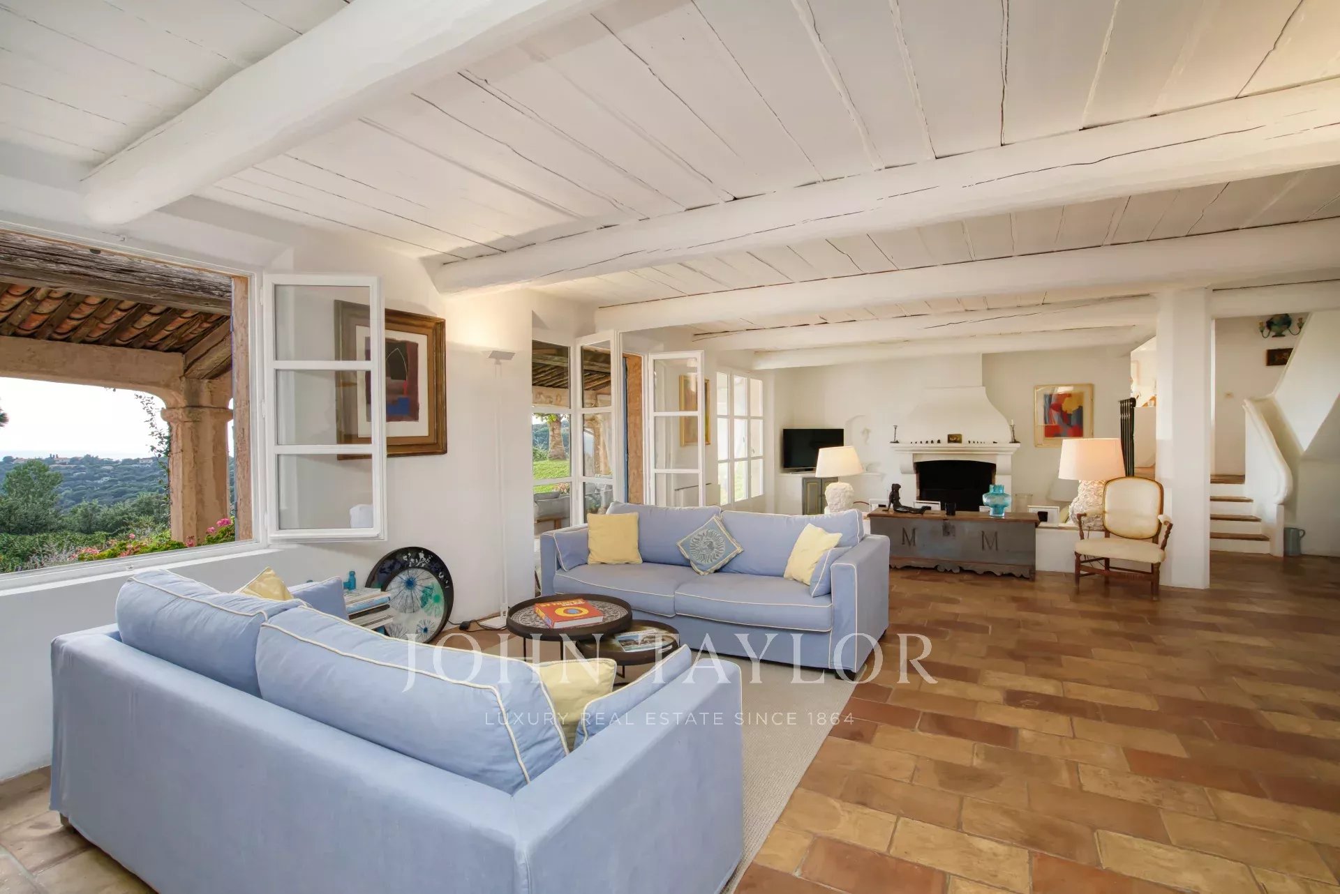 O rés do chão dispõe de uma sala de estar ampla e luminosa com lareira que se abre para um terraço coberto virado para o mar com uma sala de estar exterior. Há também quatro quartos confortáveis, cada um com a sua própria casa de banho ou duche, ar condicionado e abertura para o jardim ou para um terraço.