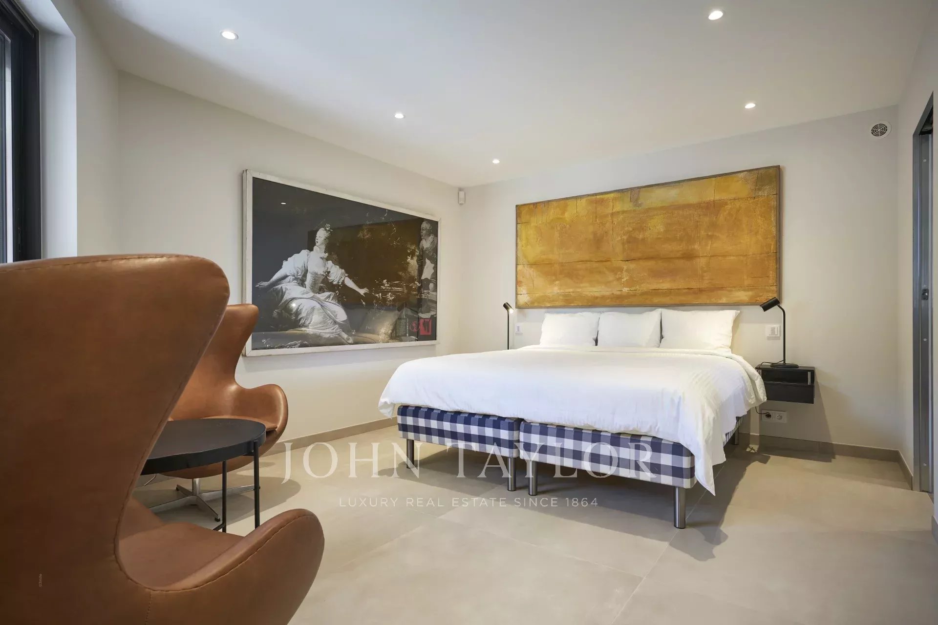 No 1º andar, há um quarto em suite (n°5) com acesso ao terraço e casa de banho, e um segundo quarto em suite (n°6) com quarto de vestir e casa de banho.