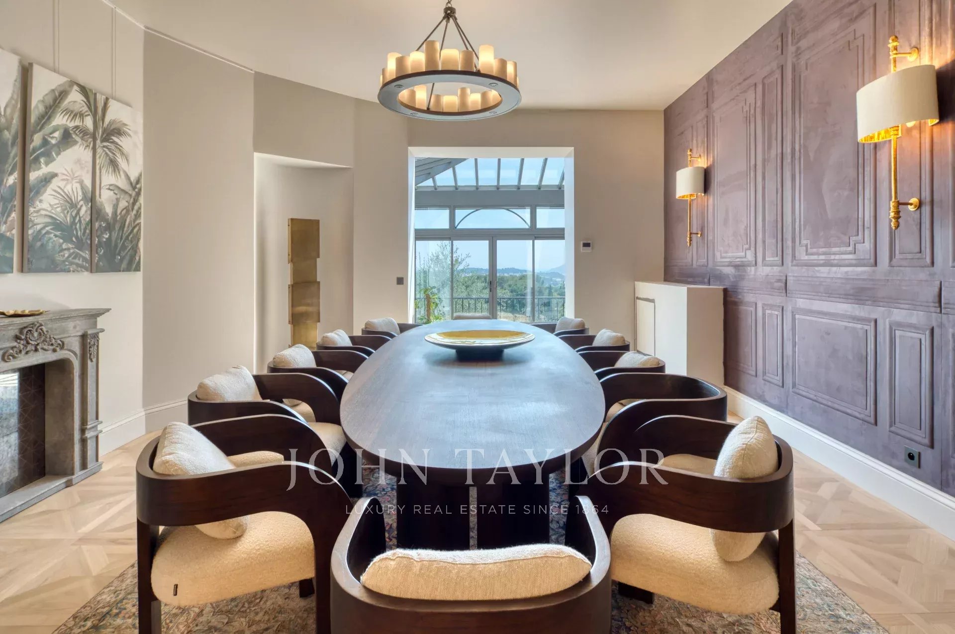 Aninhada nas alturas procuradas de Mougins, no coração de 26 000 m² de terrenos ajardinados, esta propriedade única oferece um ambiente de vida raro e requintado, com vistas deslumbrantes sobre o Mediterrâneo. A dois passos da aldeia histórica de Mougins, encarna a combinação perfeita de luxo, serenidade e arte de viver.
