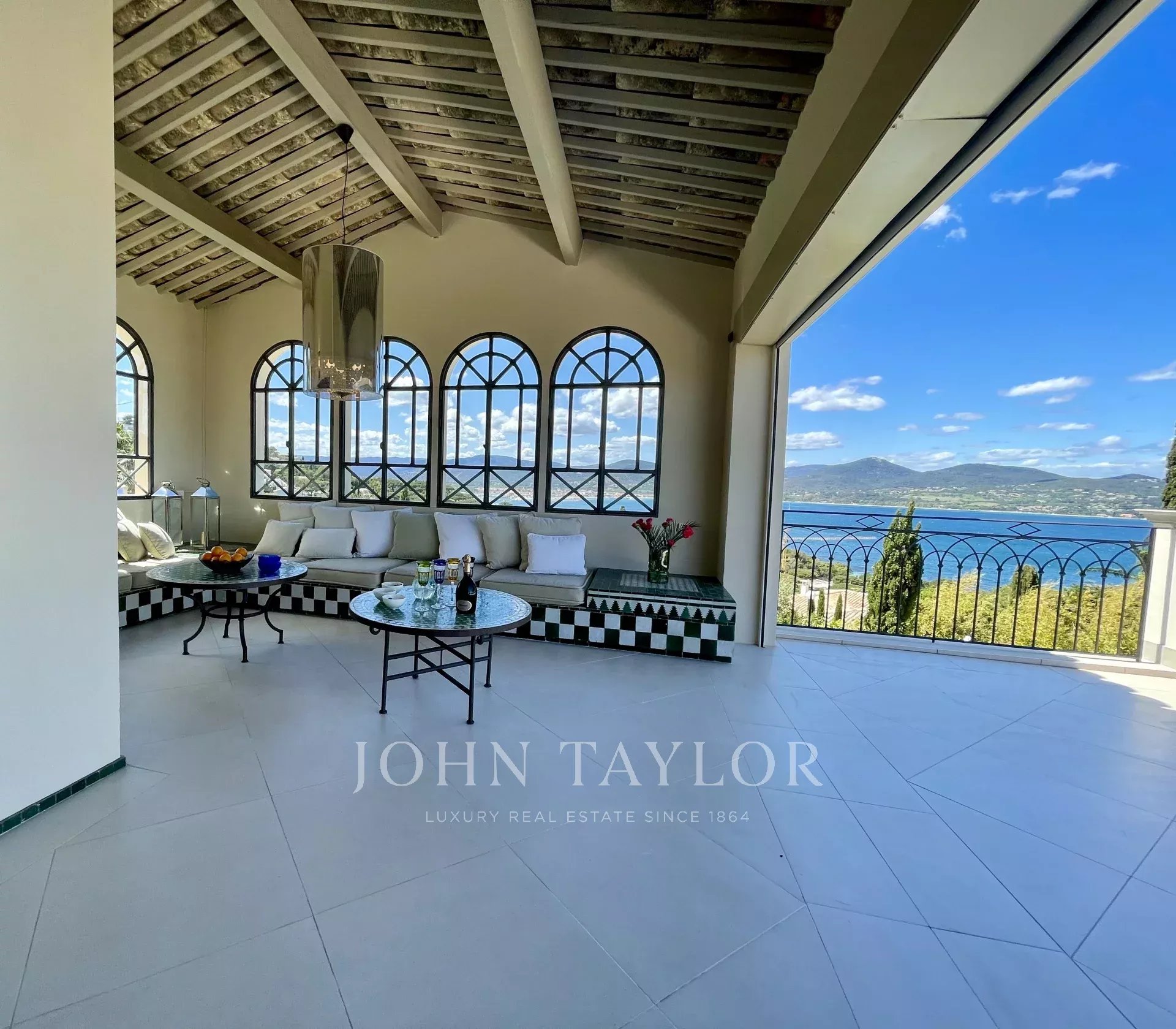 Situada numa localização tranquila, esta bonita villa apresenta vistas duplas para o mar sobre Grimaud e Saint-Tropez.