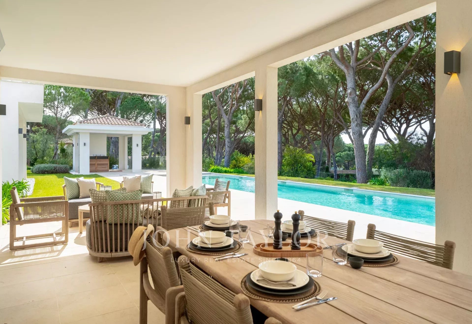 Uma soberba propriedade nova situada numa tranquila rua sem saída nos Parcs de Saint-Tropez, esta propriedade oferece um ambiente idílico de vida familiar composto por :