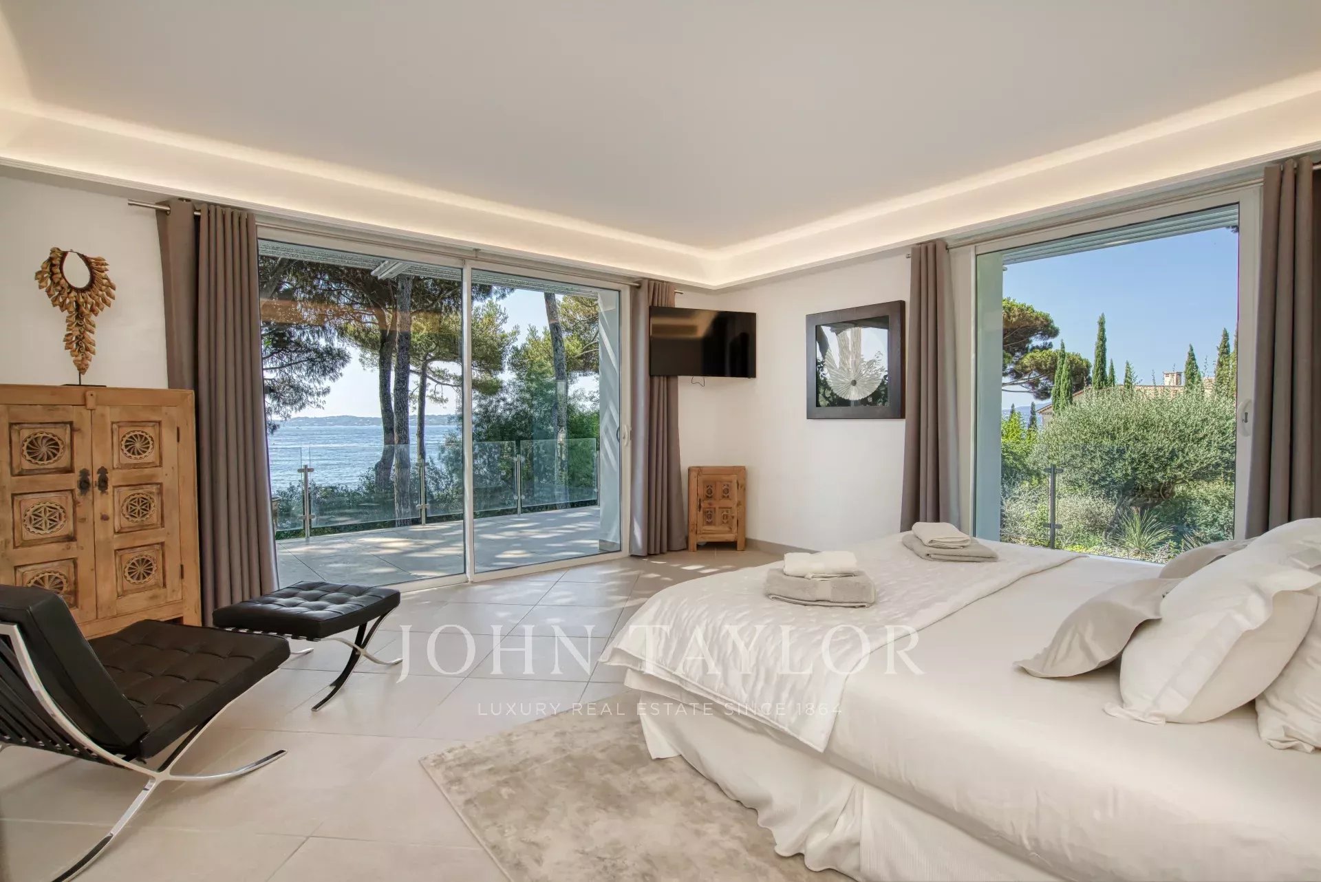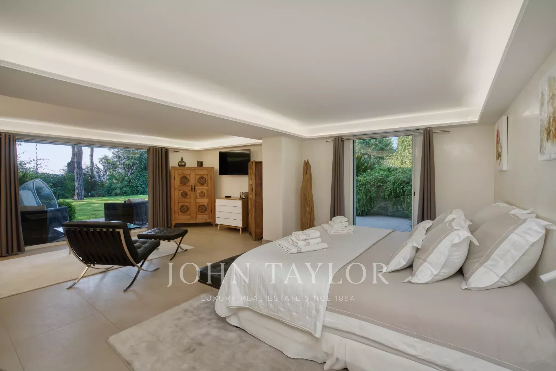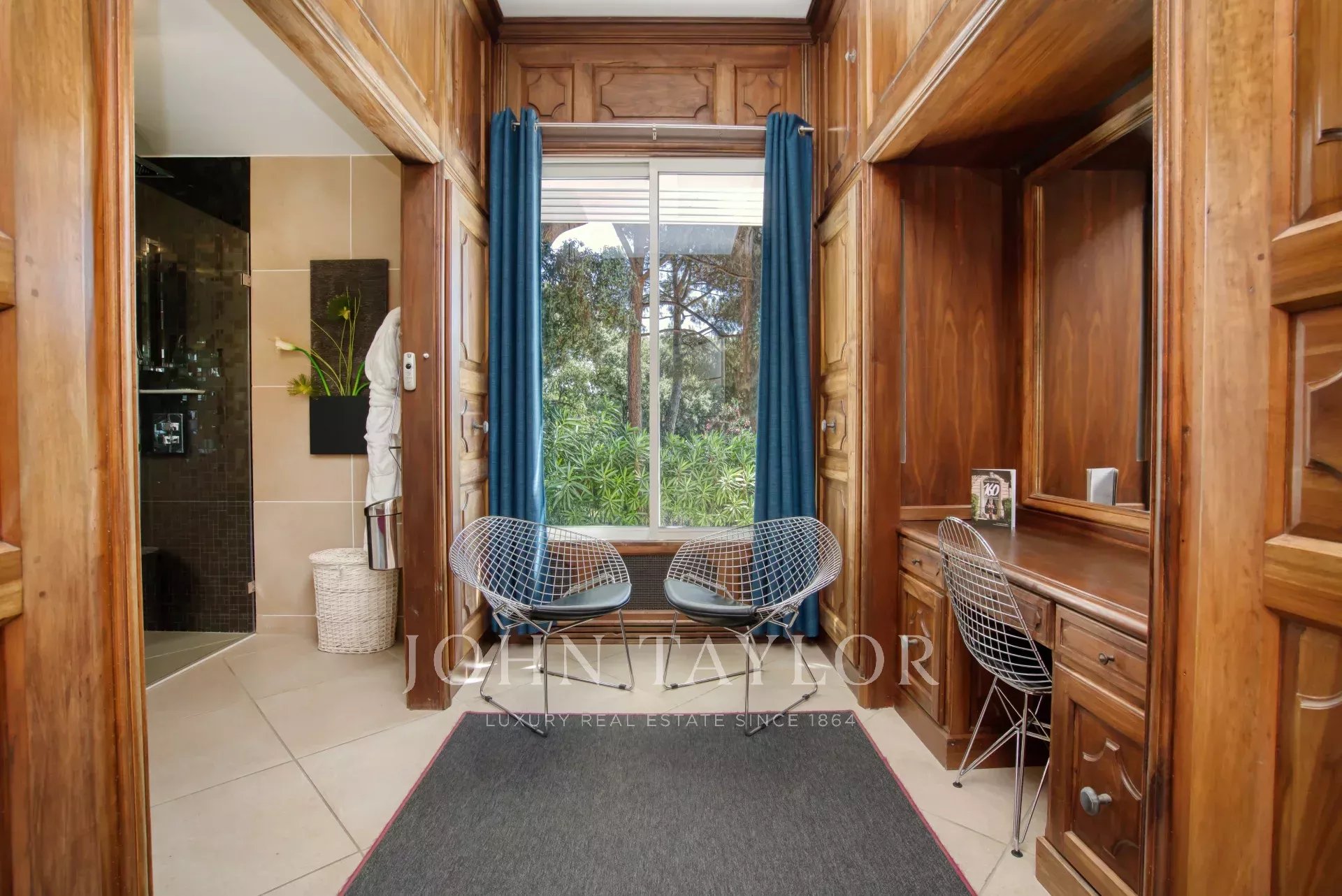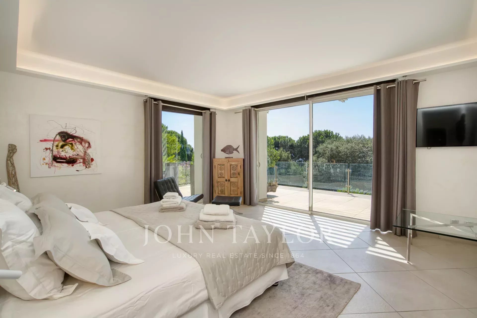 - uma suite principal de 75 m² com casa de banho e quarto de vestir que abre para um terraço privado,