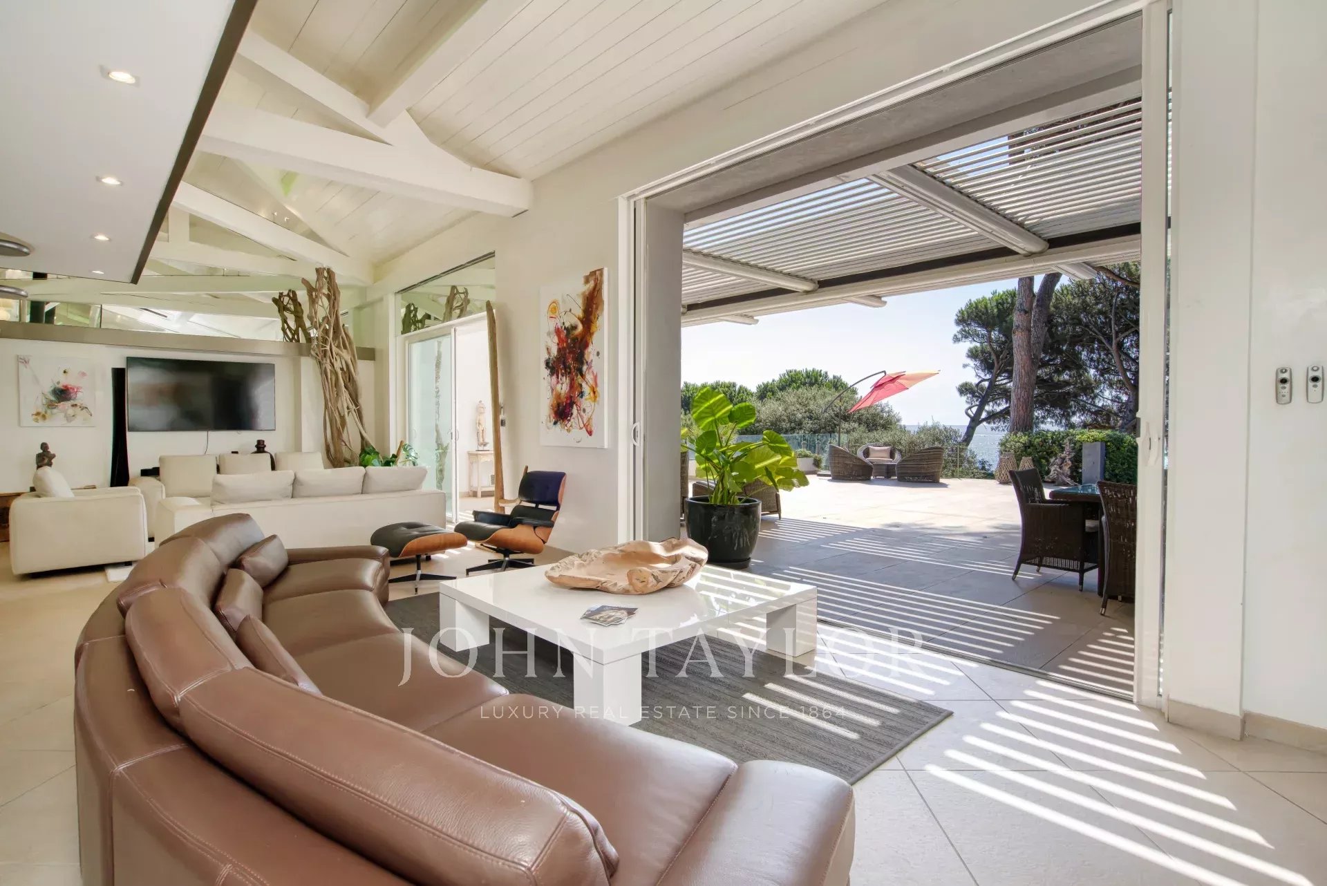 - 3 suites com casas de banho, uma cozinha equipada em plano aberto e uma sala com lareira que se abre para o salão de verão,
