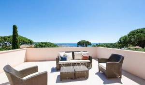 Situada numa propriedade segura a 10 minutos a pé das praias de Sainte-Maxime, esta casa familiar oferece vistas para o mar sobre o Golfo de Saint-Tropez e as colinas de Grimaud.