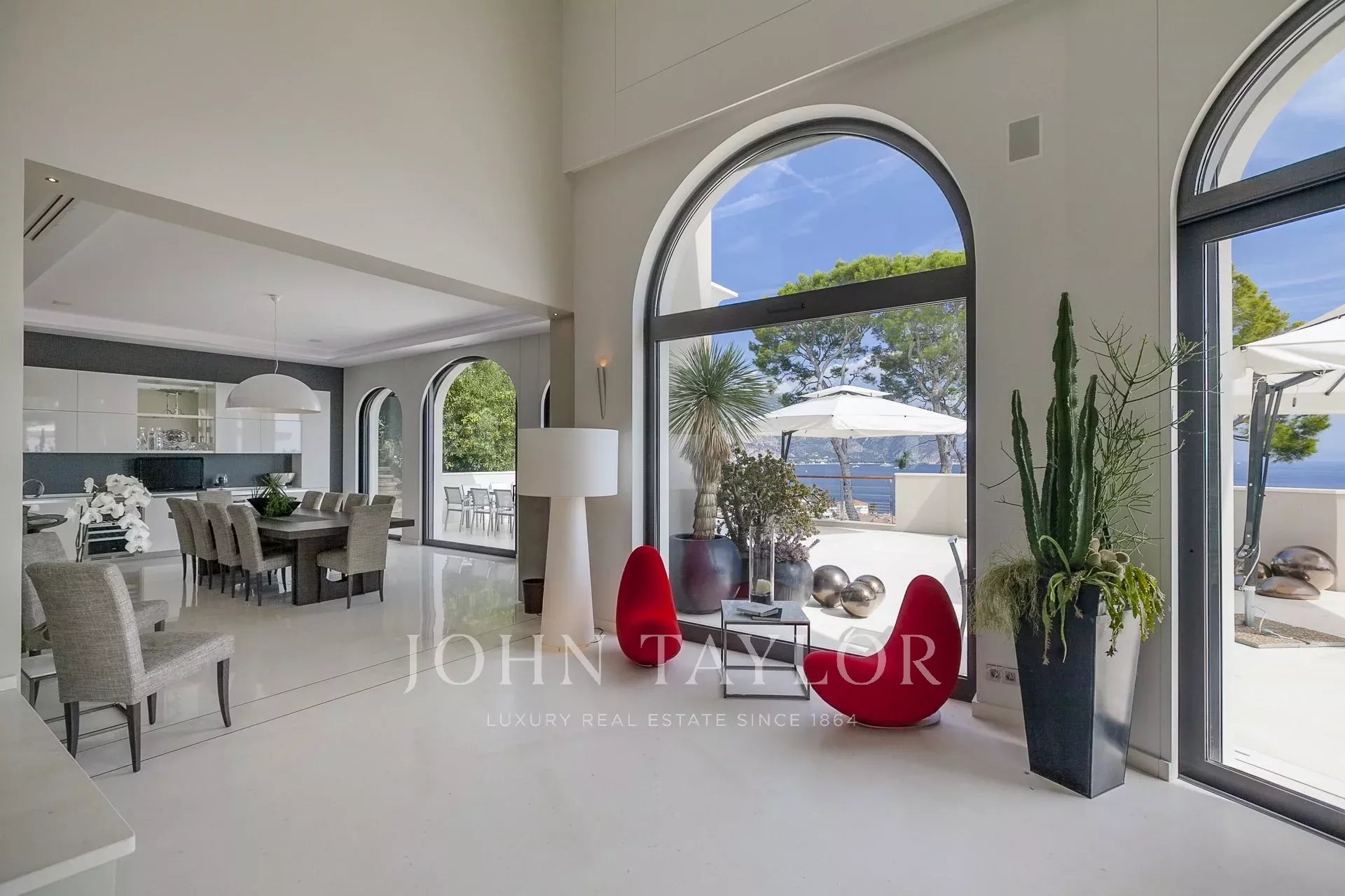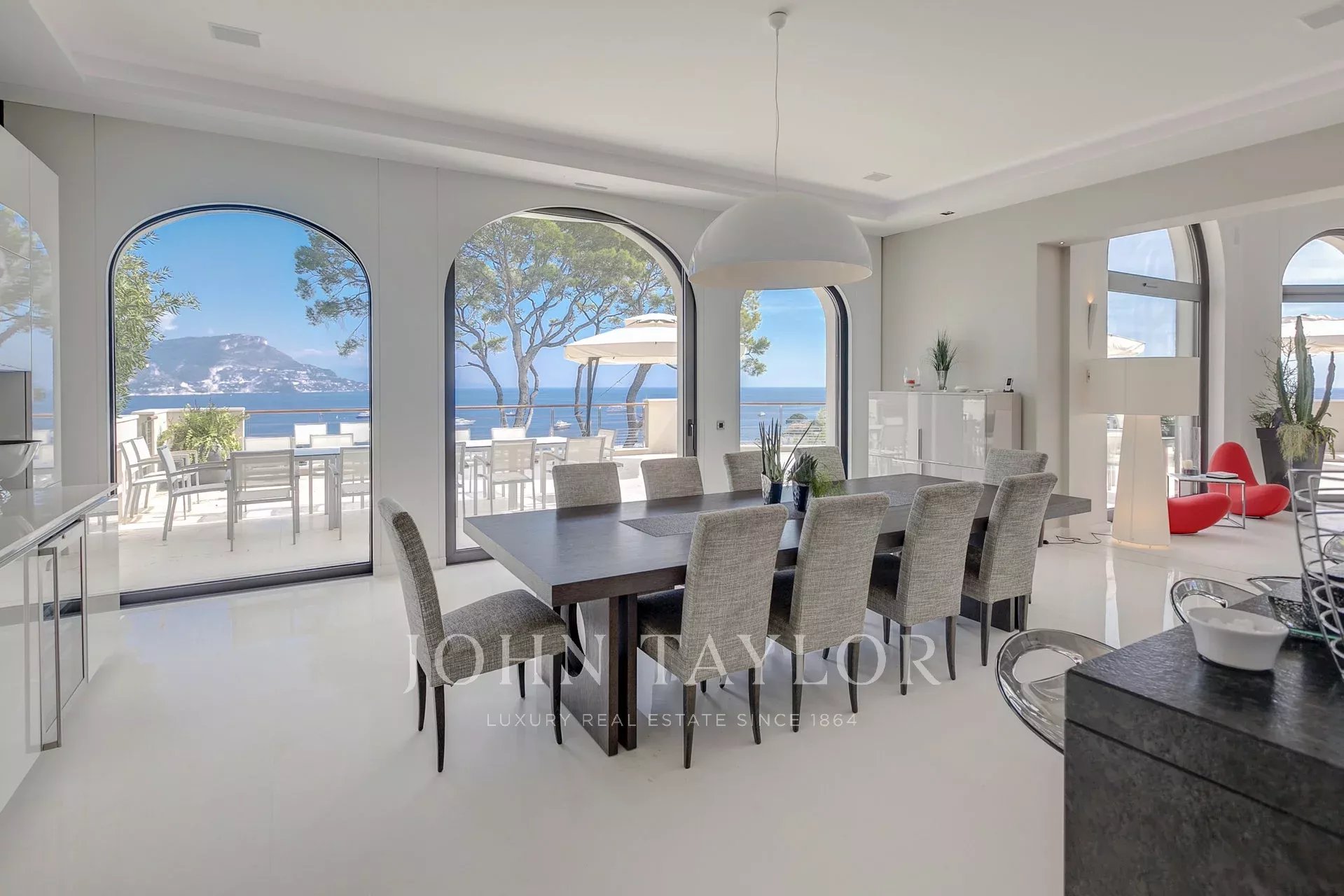 Luxuosa moradia moderna, equipada com tecnologia de ponta, situada em Saint Jean Cap Ferrat, uma península a meio caminho entre o Mónaco e Nice. Com cerca de 1.200 m² de área habitável e um jardim de cerca de 8.000 m², esta prestigiada propriedade possui uma soberba vista panorâmica sobre o mar. Disponível para aluguer e seminários.