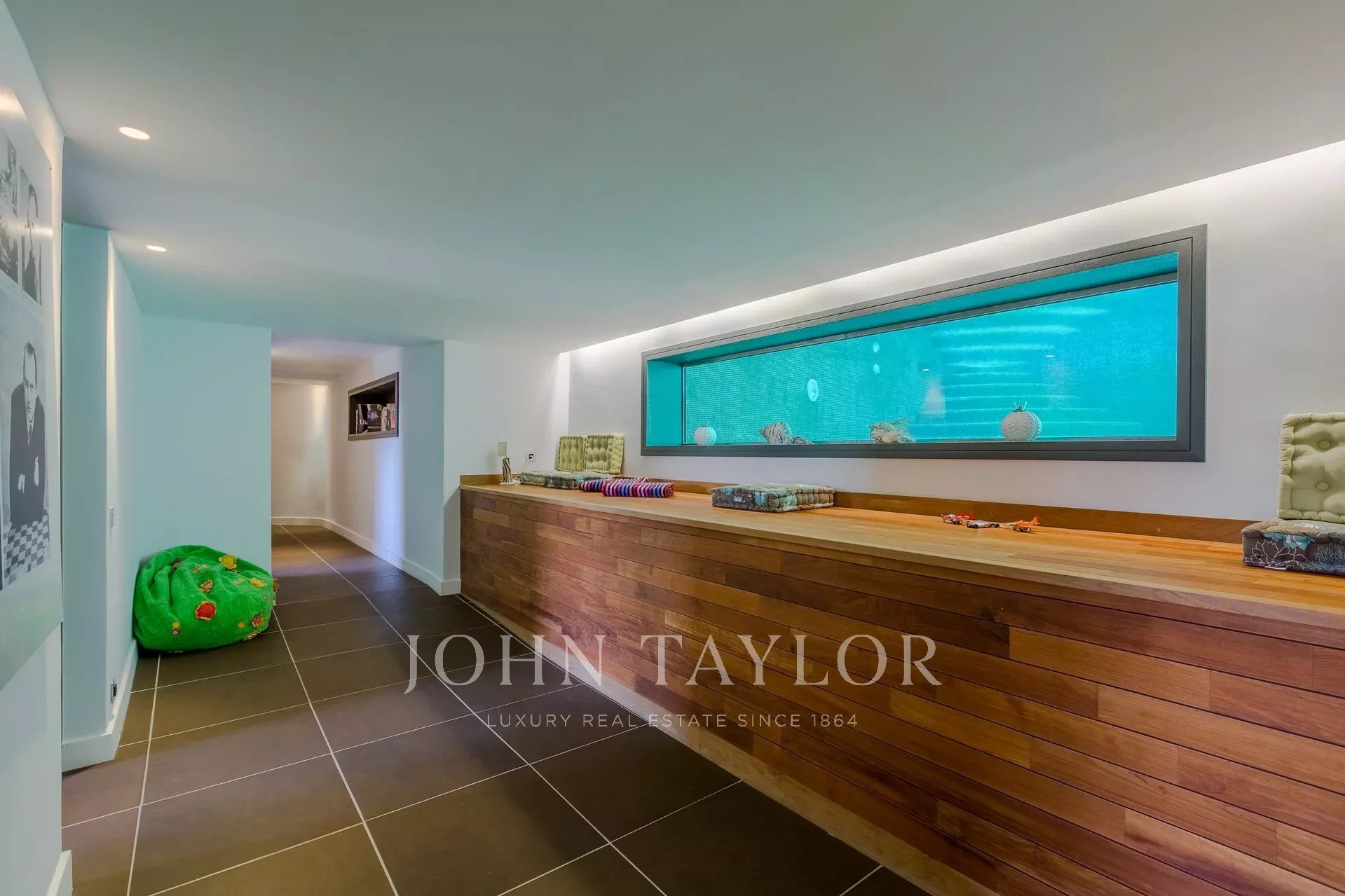 É composta por uma sala de estar, uma sala de jantar, uma cozinha totalmente equipada, cinco quartos, cinco casas de banho, muito espaço de arrumação e uma piscina aquecida.