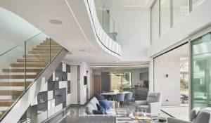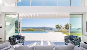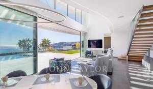No nível principal, abrindo para o terraço, jardim e piscina, uma sala de estar com grandes janelas panorâmicas que lhe permitem desfrutar do sol, uma área de jantar, uma cozinha topo de gama em plano aberto que abre para o terraço e área de bar, um soberbo quarto principal com a sua própria casa de banho, bem como muito espaço de armazenamento, uma lavandaria e WC de hóspedes. Tudo virado para o mar.