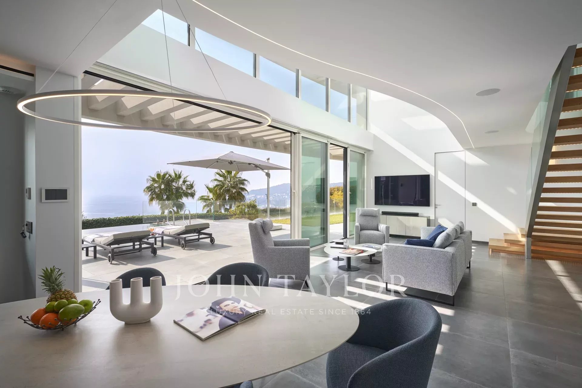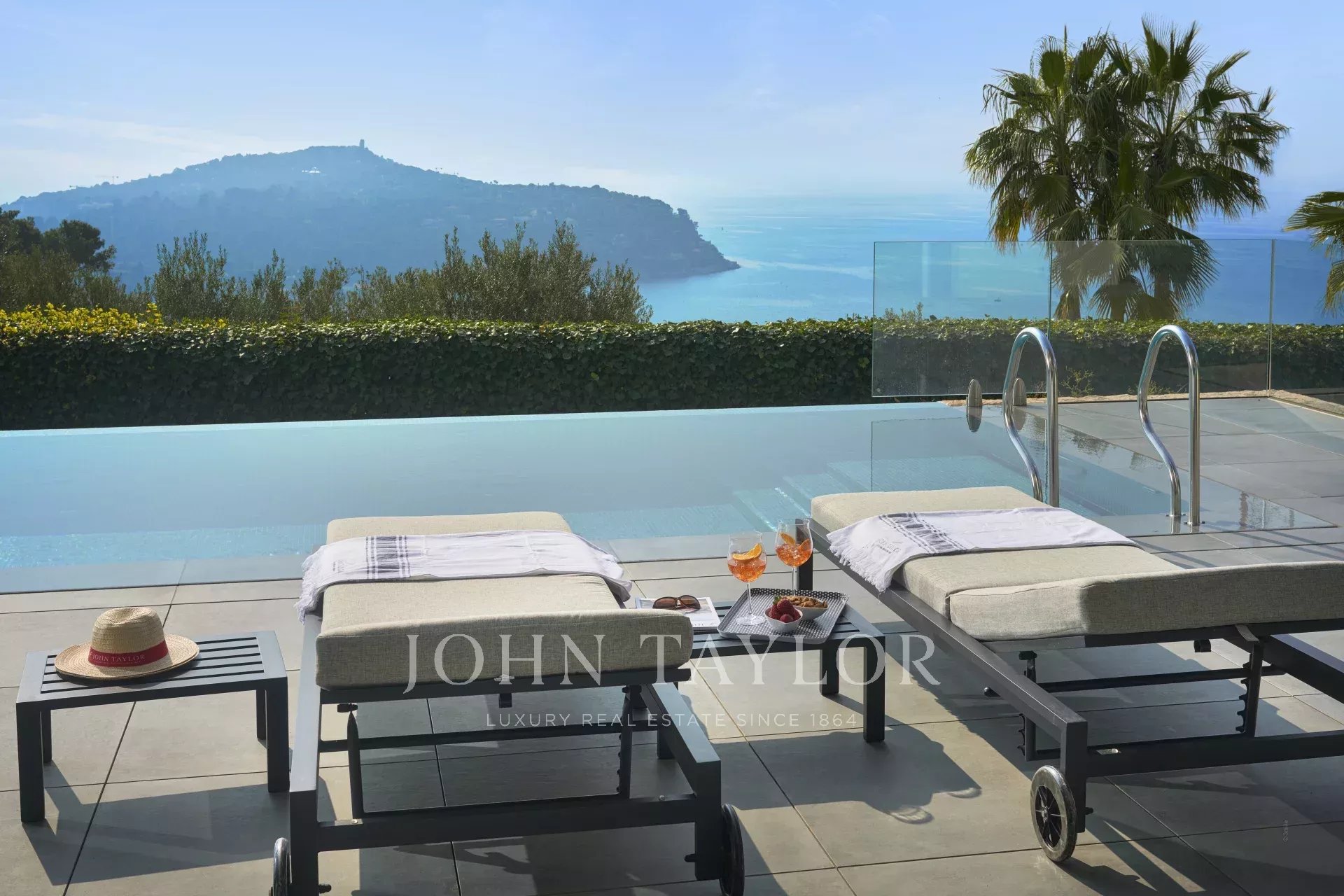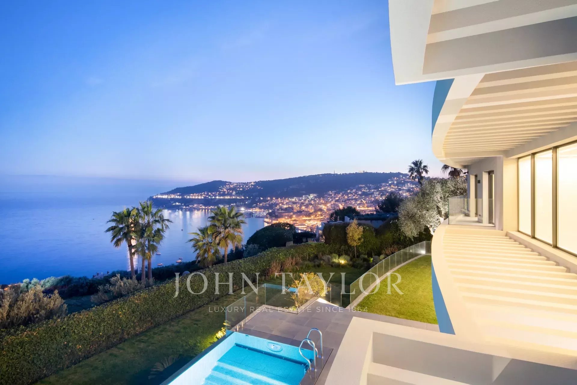Esta magnífica propriedade contemporânea possui vistas panorâmicas sobre o mar, a Baía de Villefranche e Cap Ferrat, e está equipada com um padrão muito elevado.