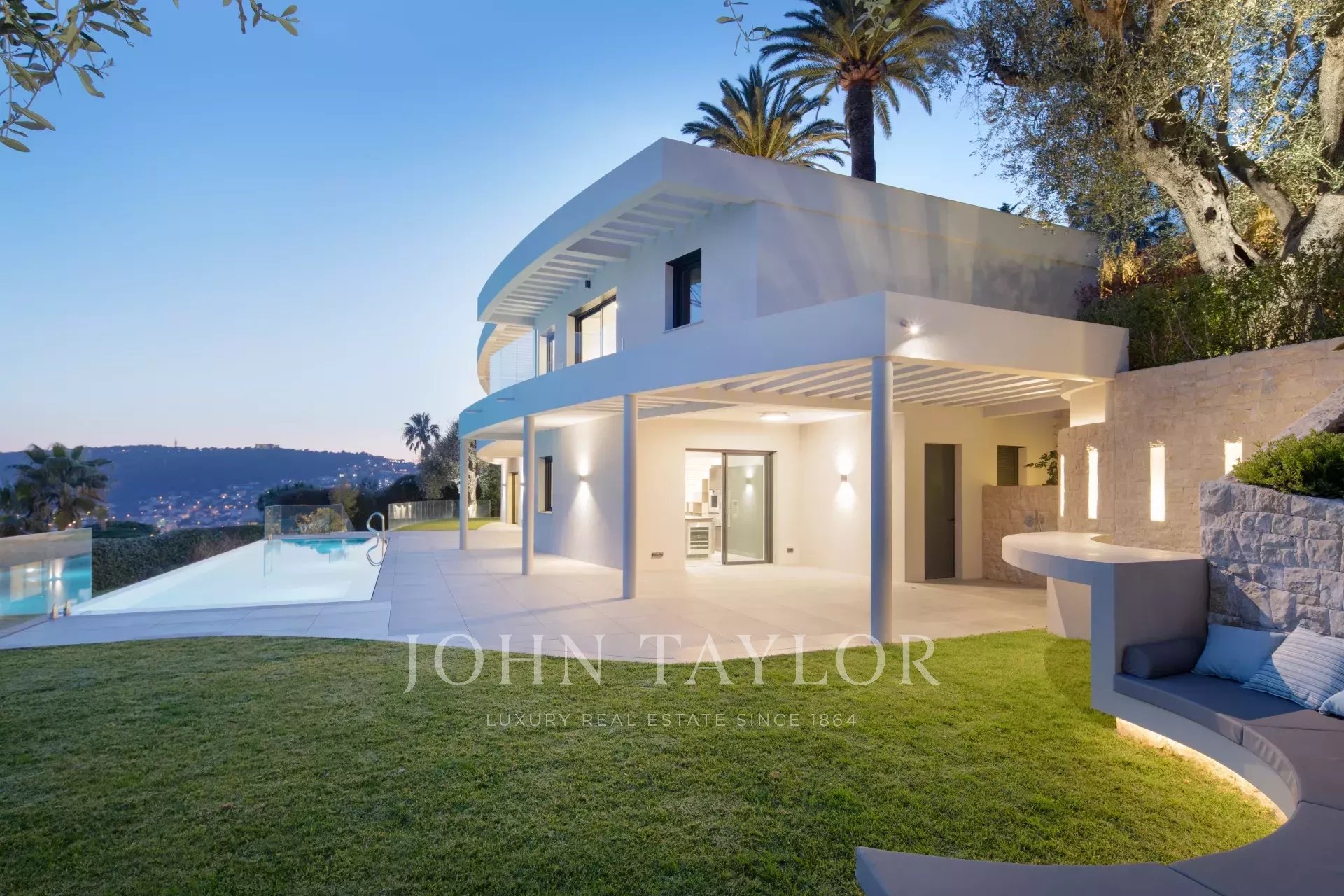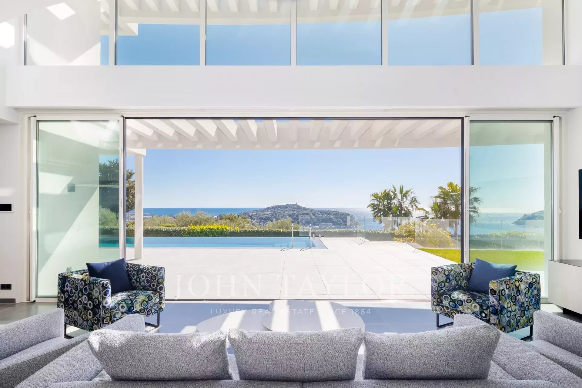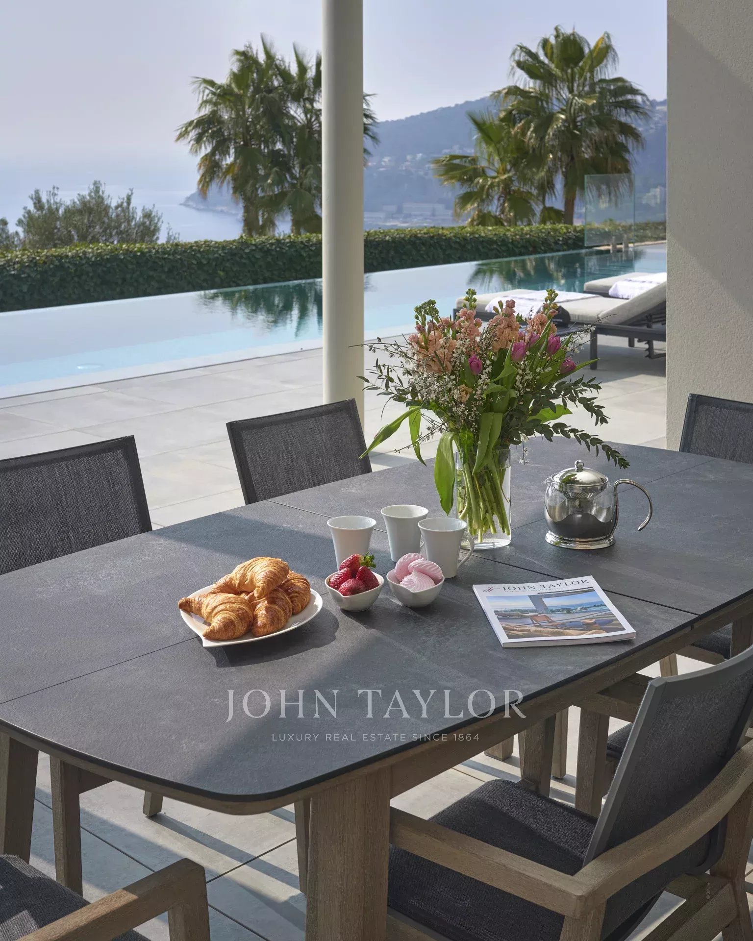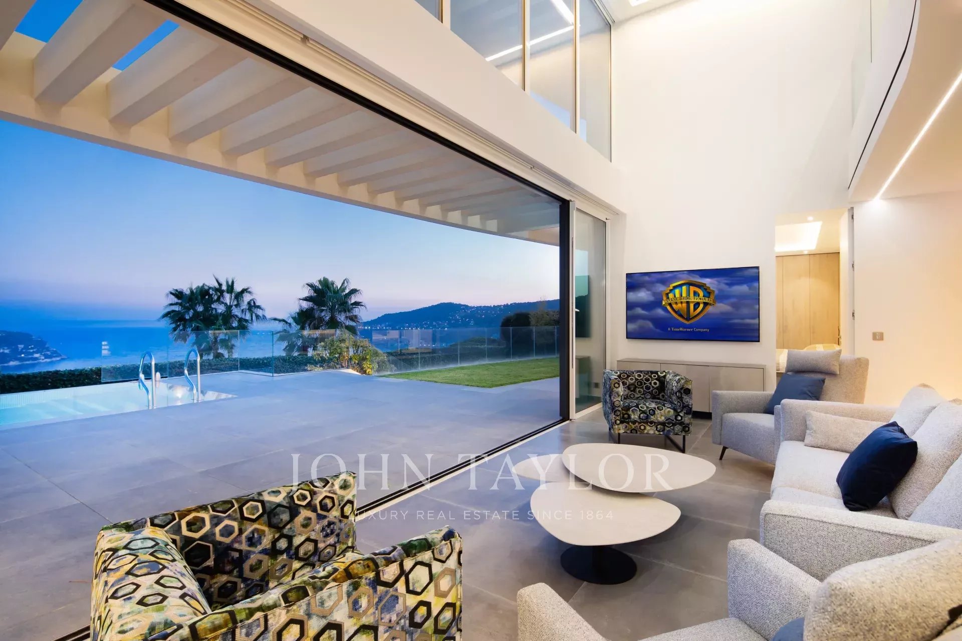 Esta magnífica propriedade contemporânea possui vistas panorâmicas sobre o mar, a Baía de Villefranche e Cap Ferrat, e está equipada com um padrão muito elevado.