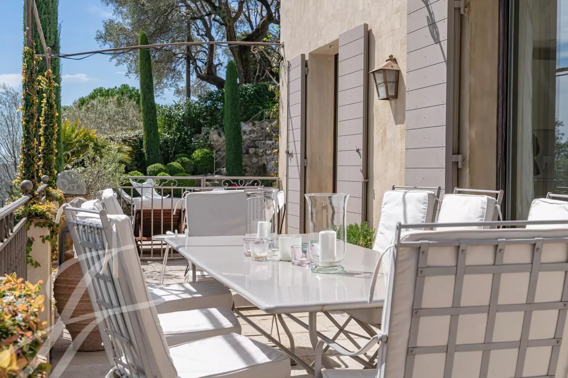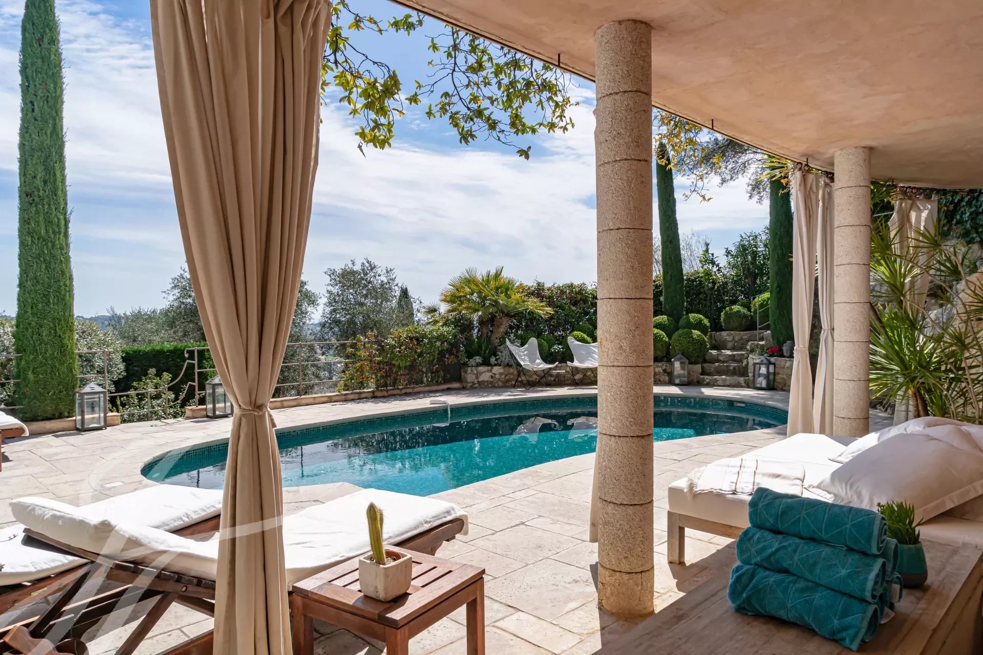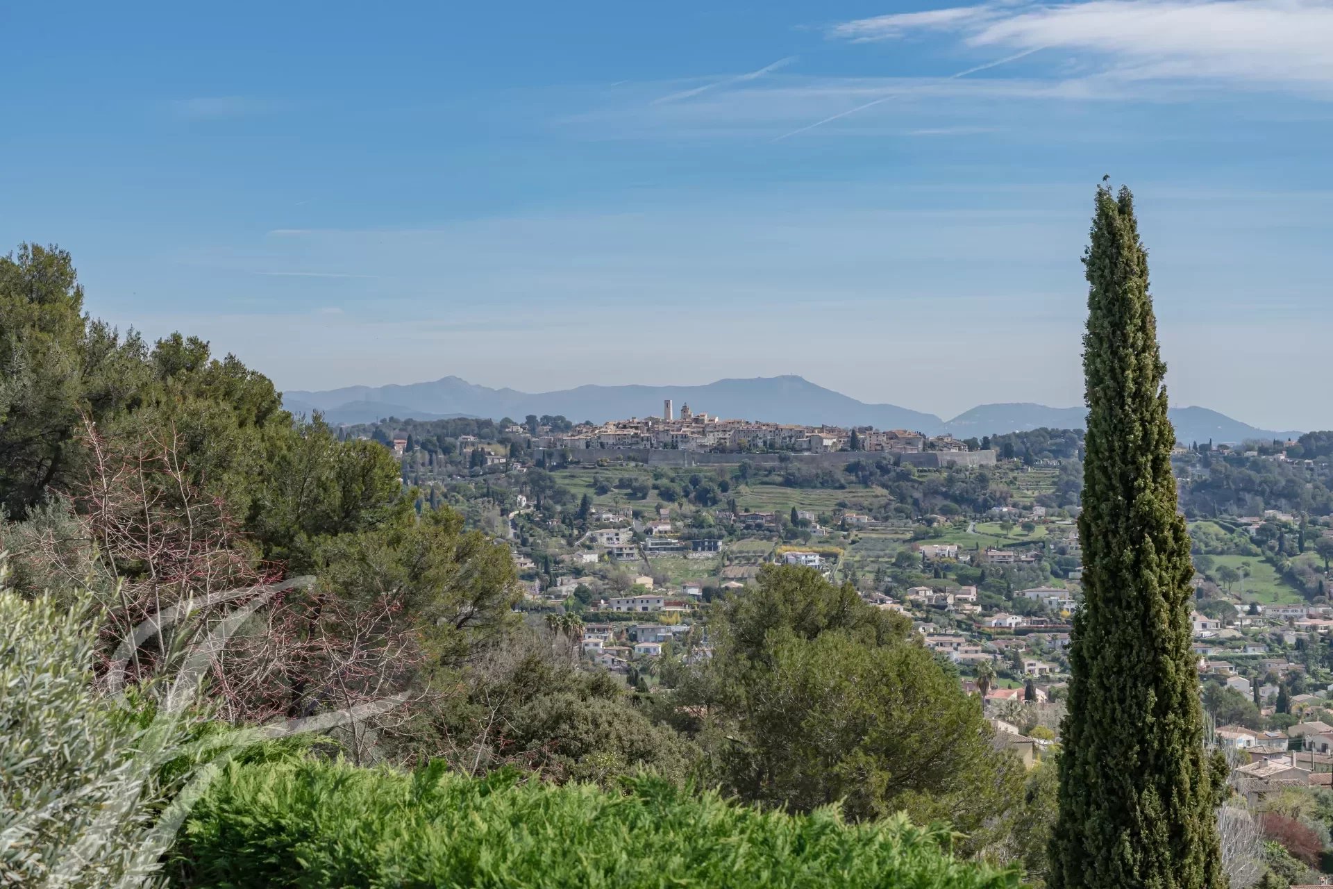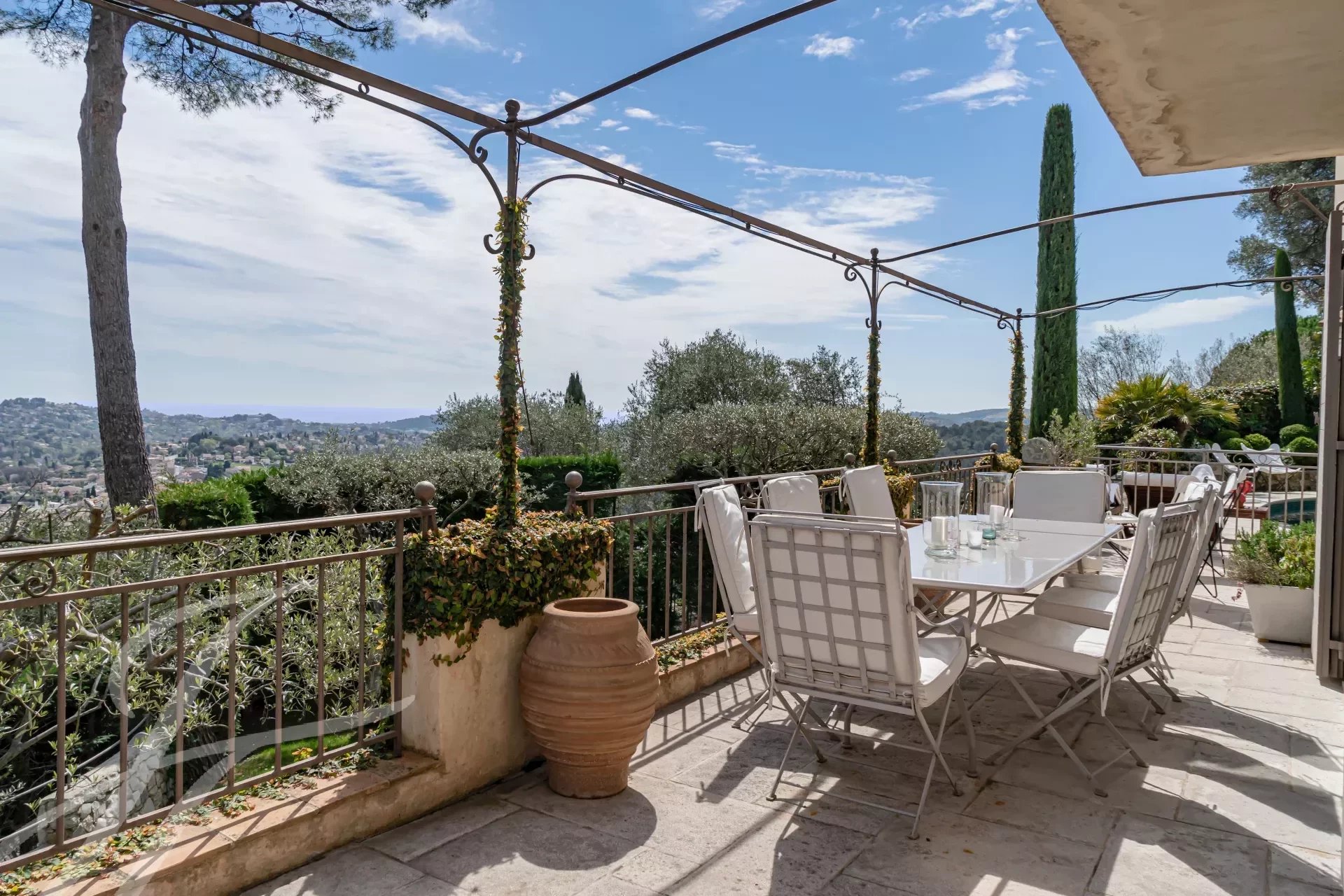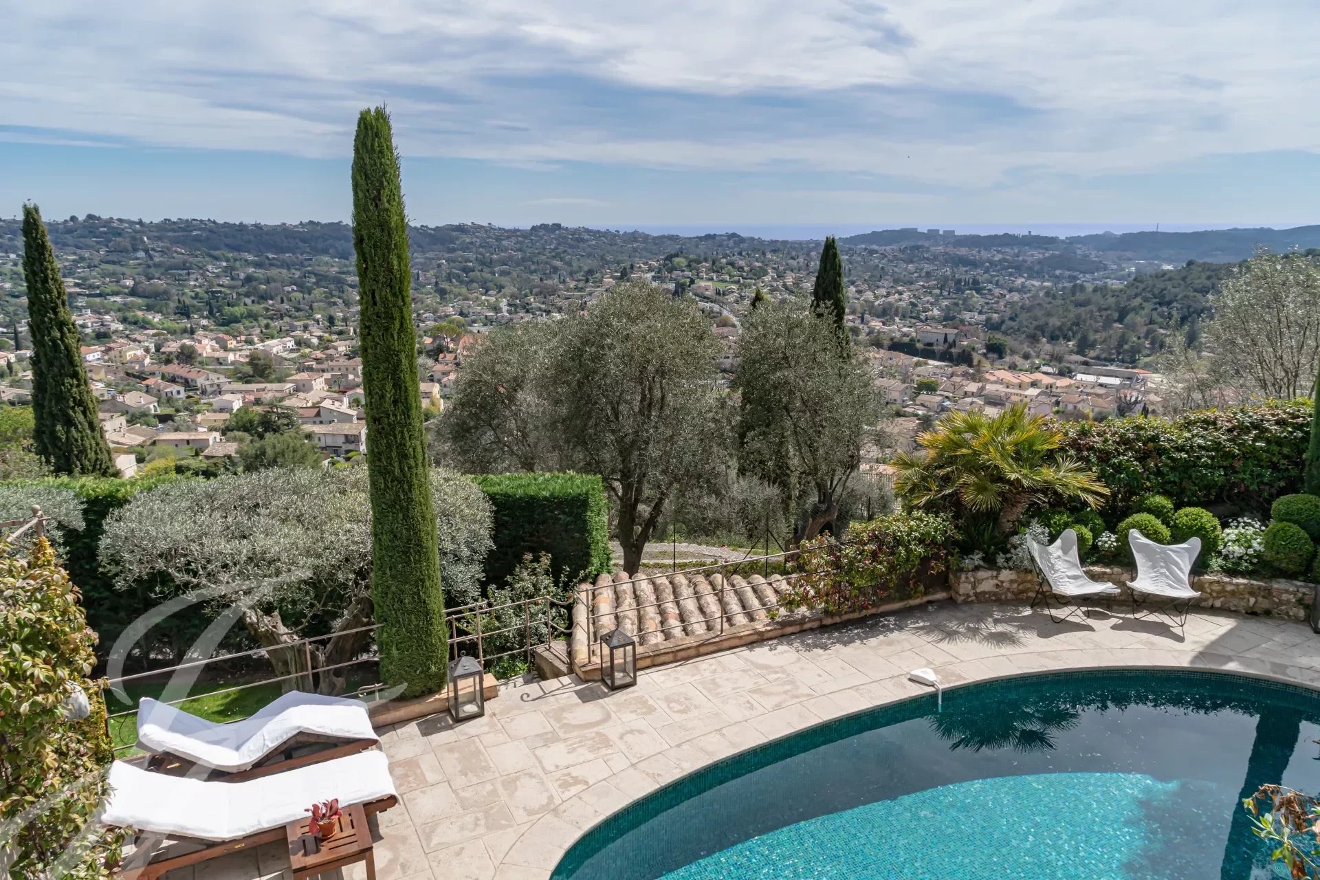 Esta bonita casa goza de um ambiente relaxante com vistas ininterruptas sobre o mar e a aldeia de Saint-Paul de Vence.