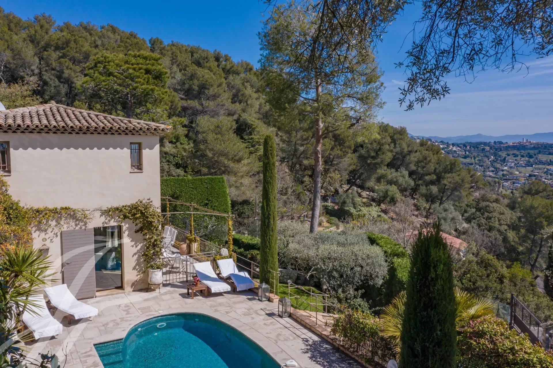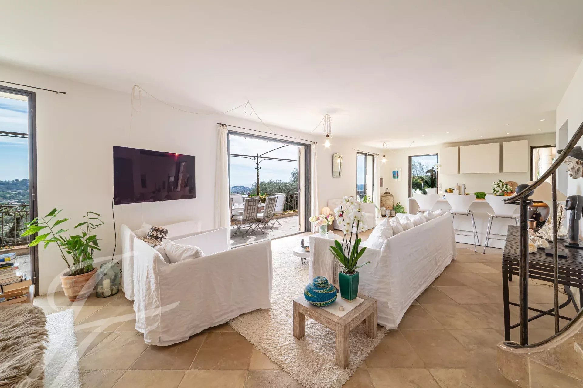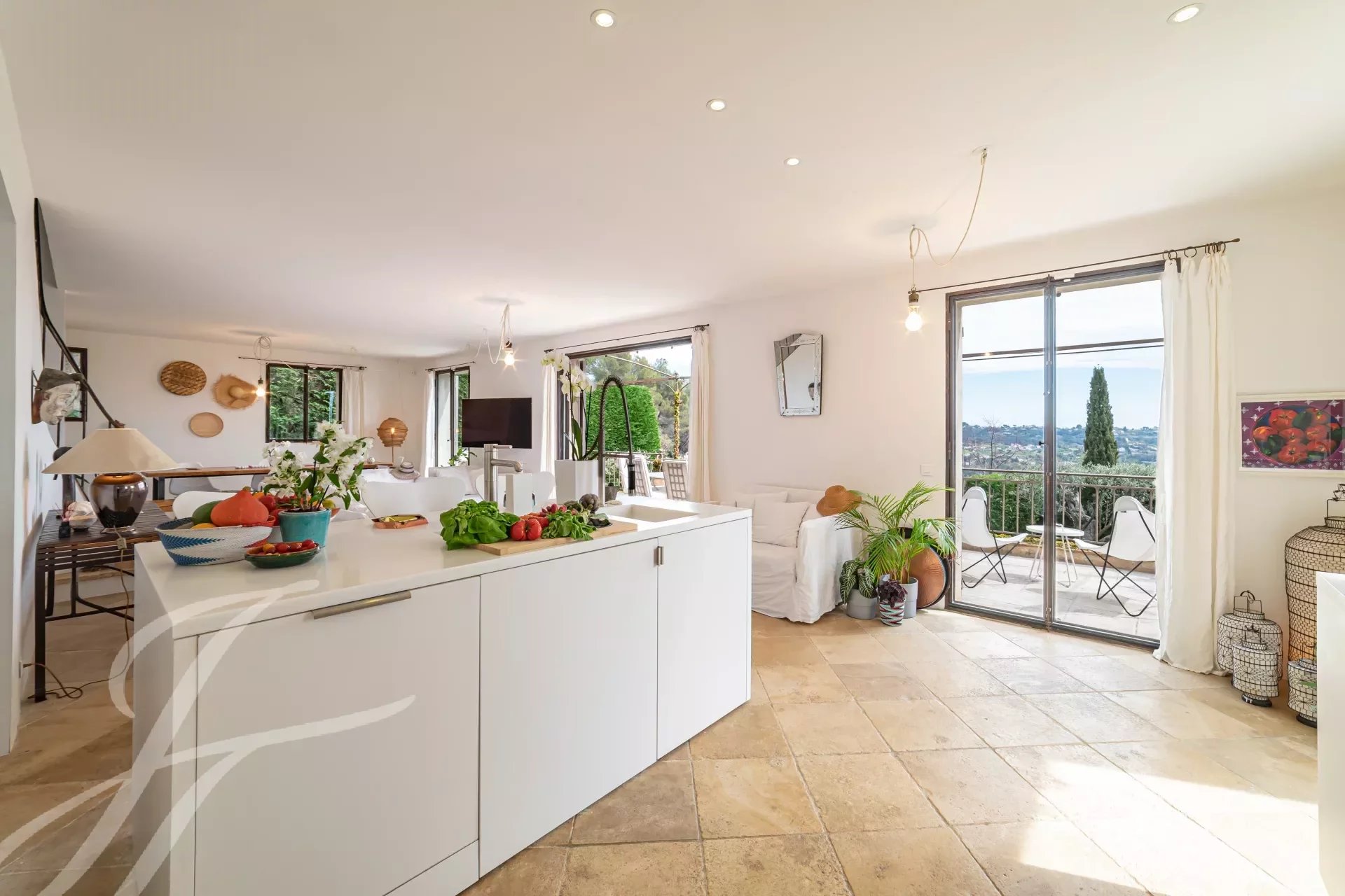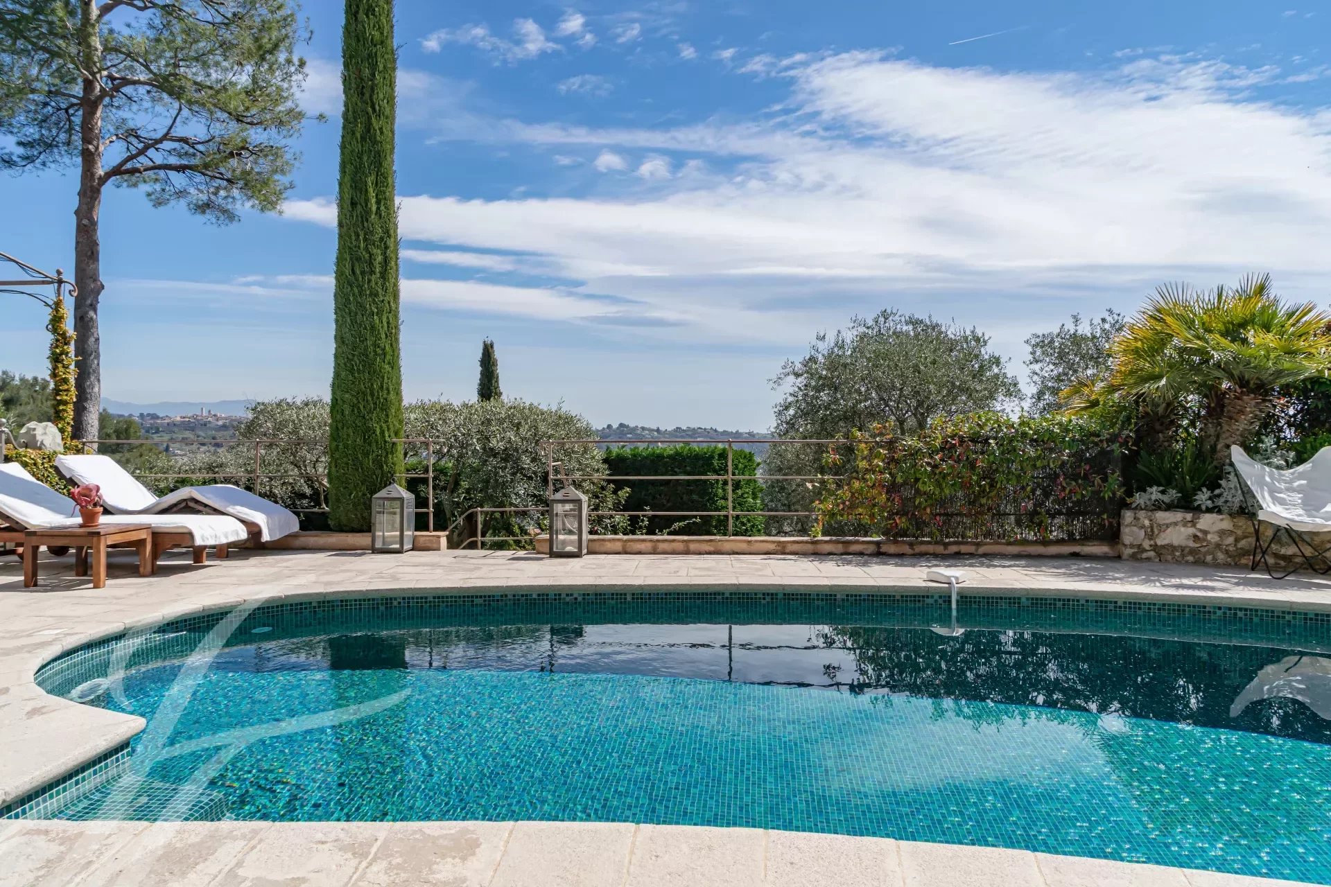 Esta bonita casa goza de um ambiente relaxante com vistas ininterruptas sobre o mar e a aldeia de Saint-Paul de Vence.
