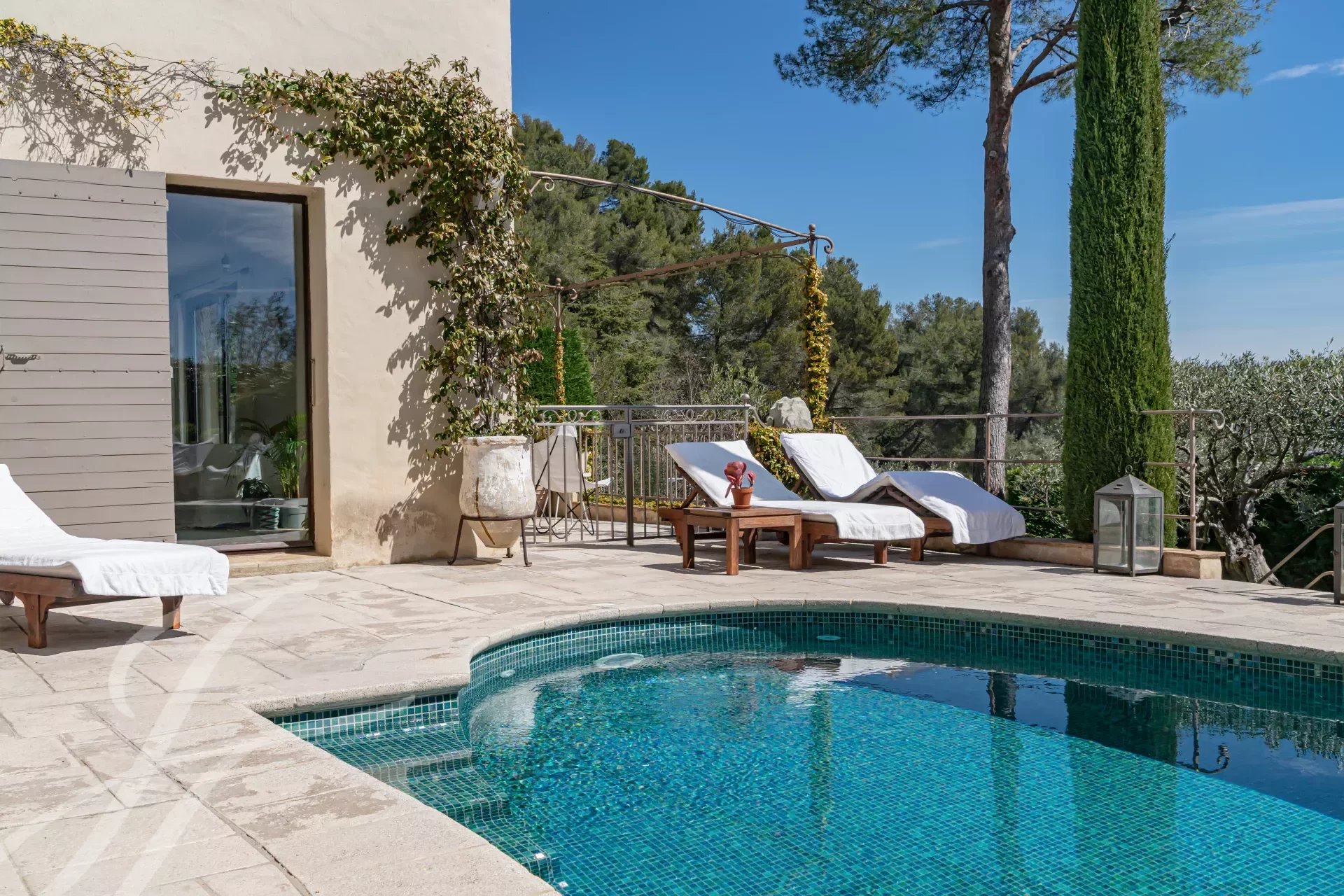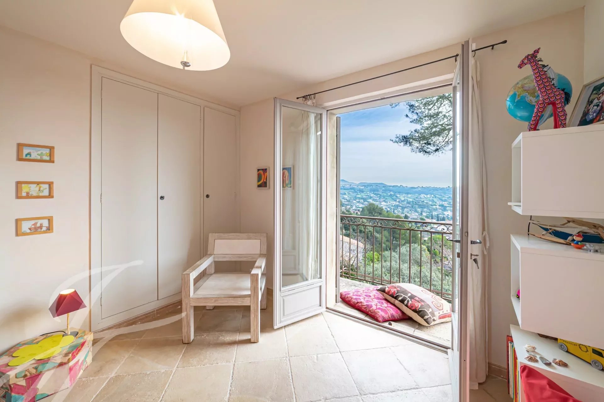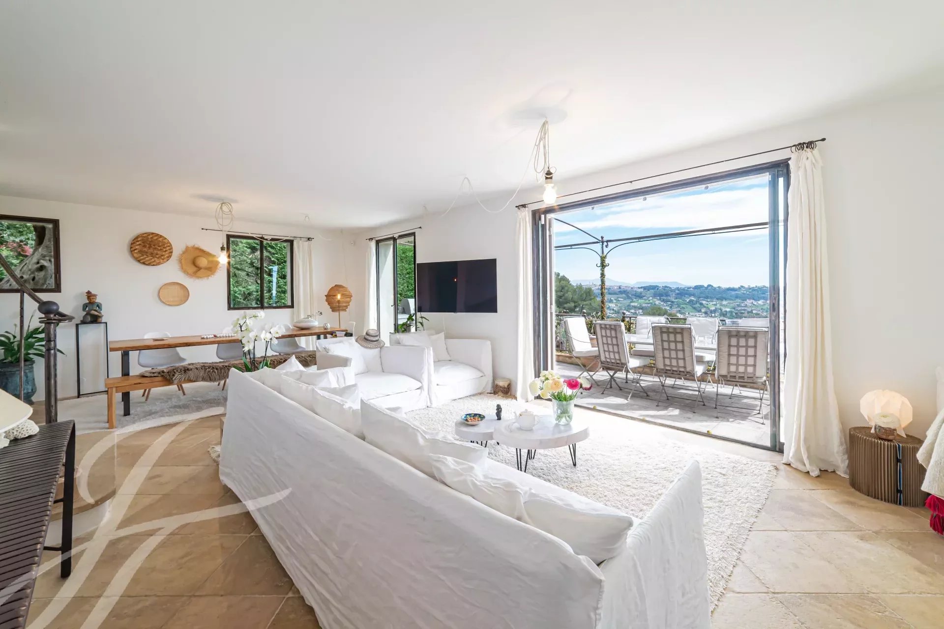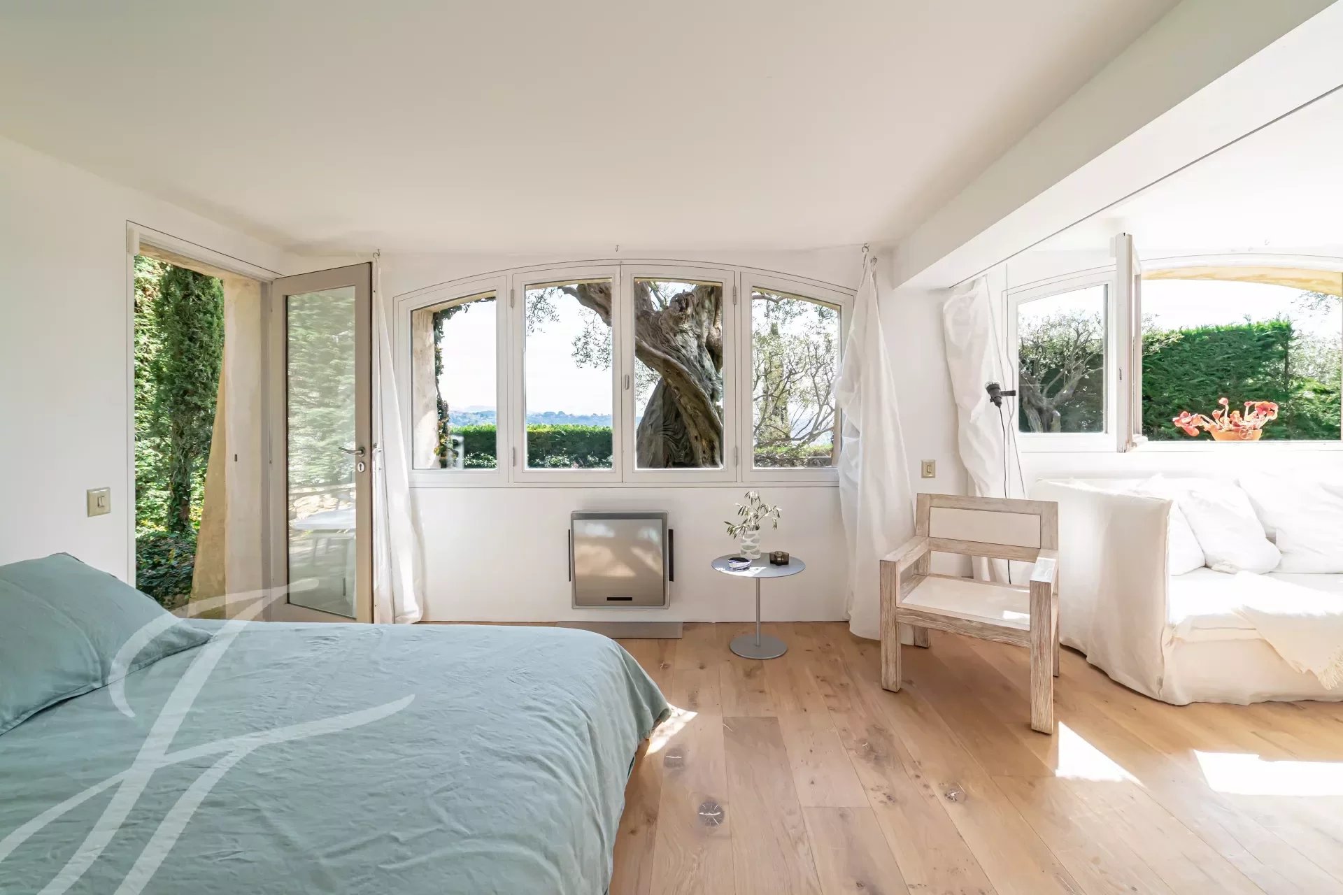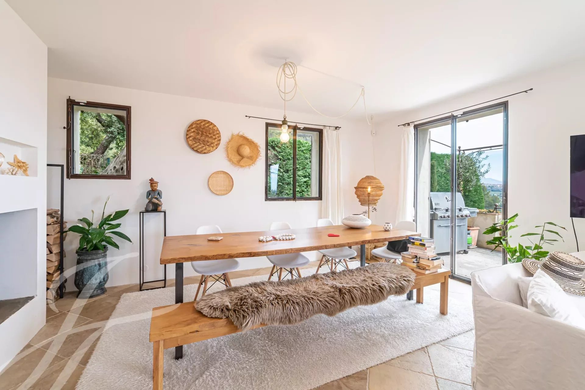 Esta bonita casa goza de um ambiente relaxante com vistas ininterruptas sobre o mar e a aldeia de Saint-Paul de Vence.