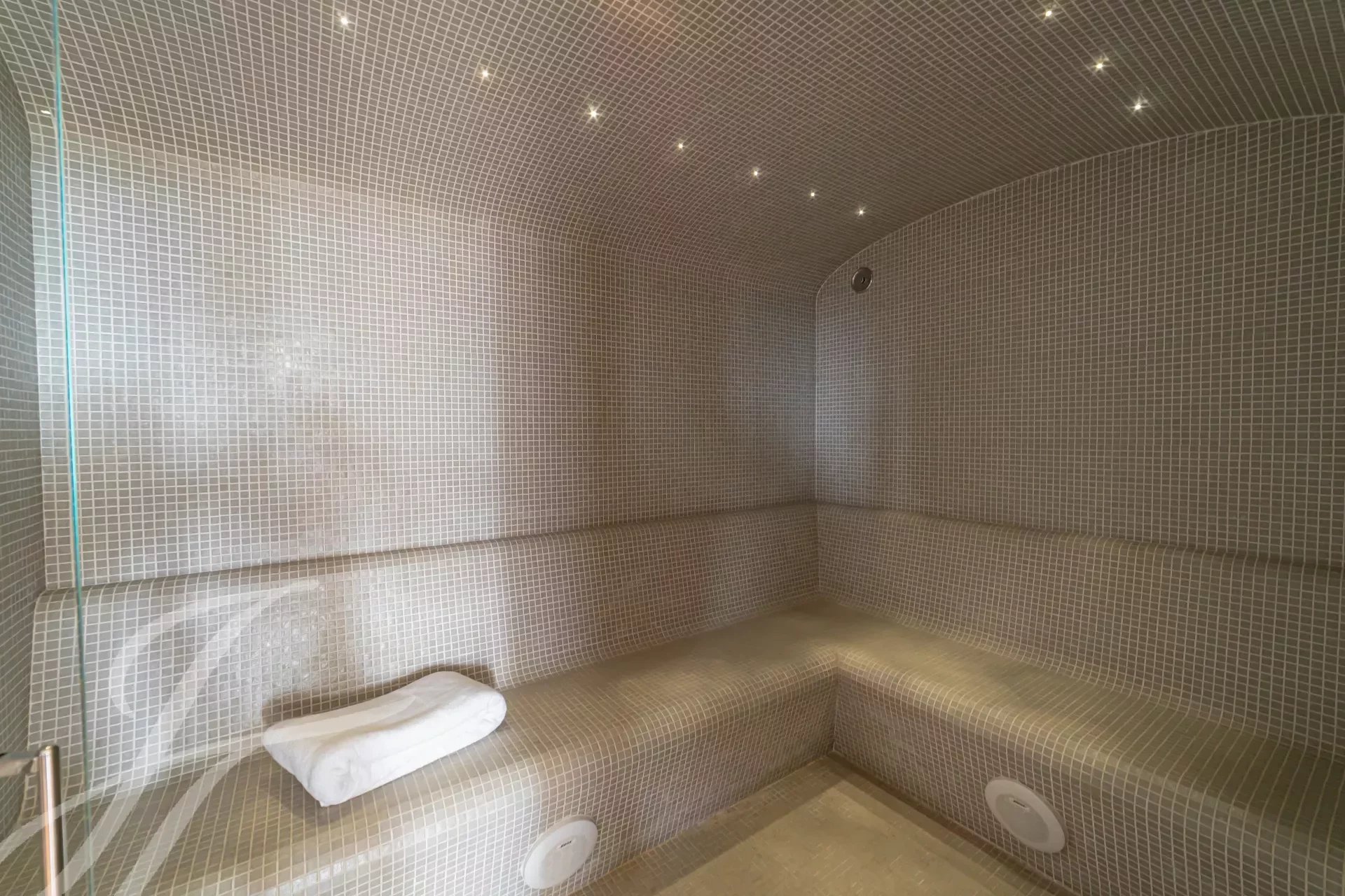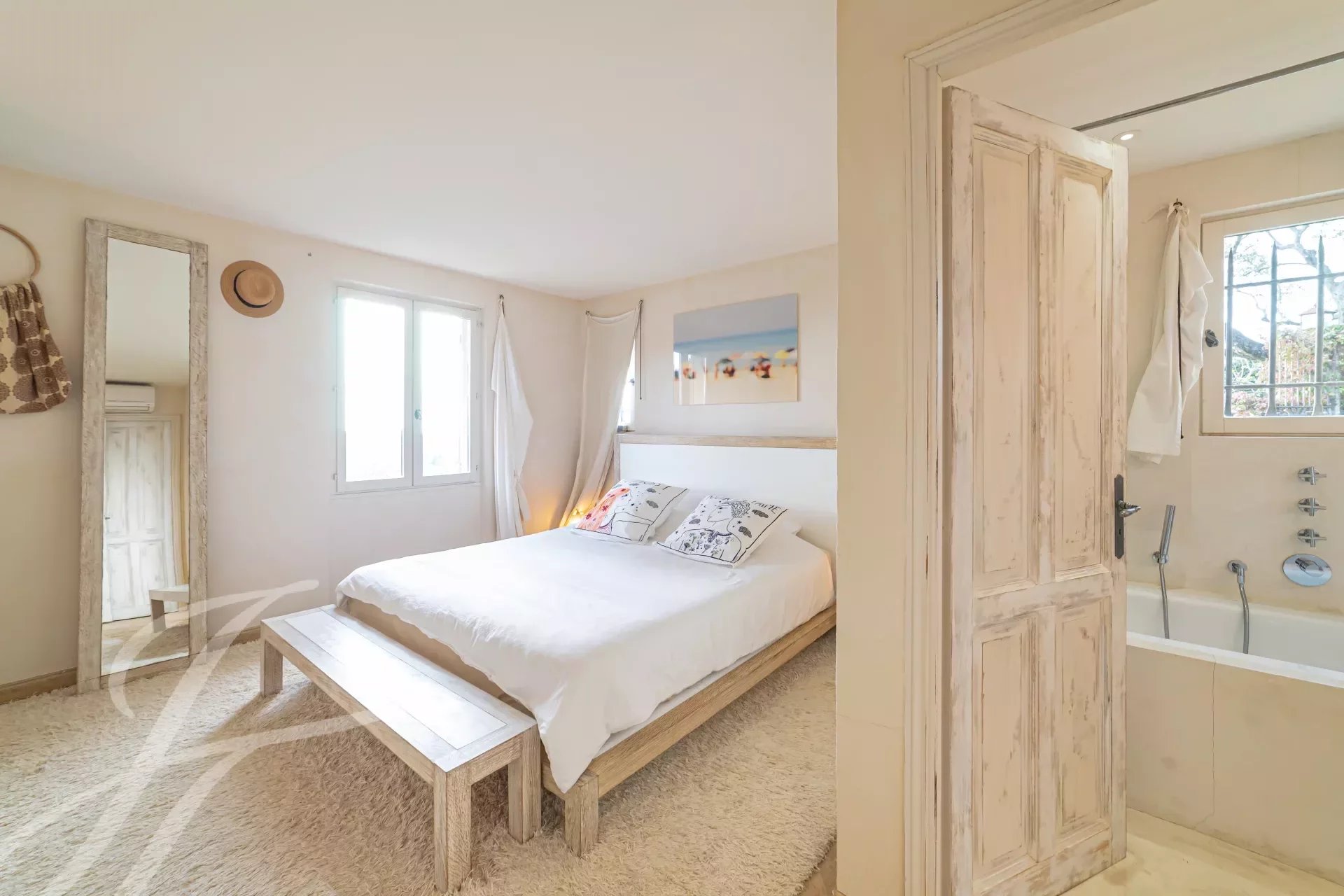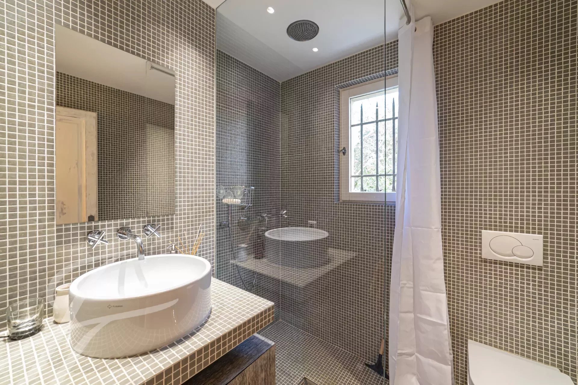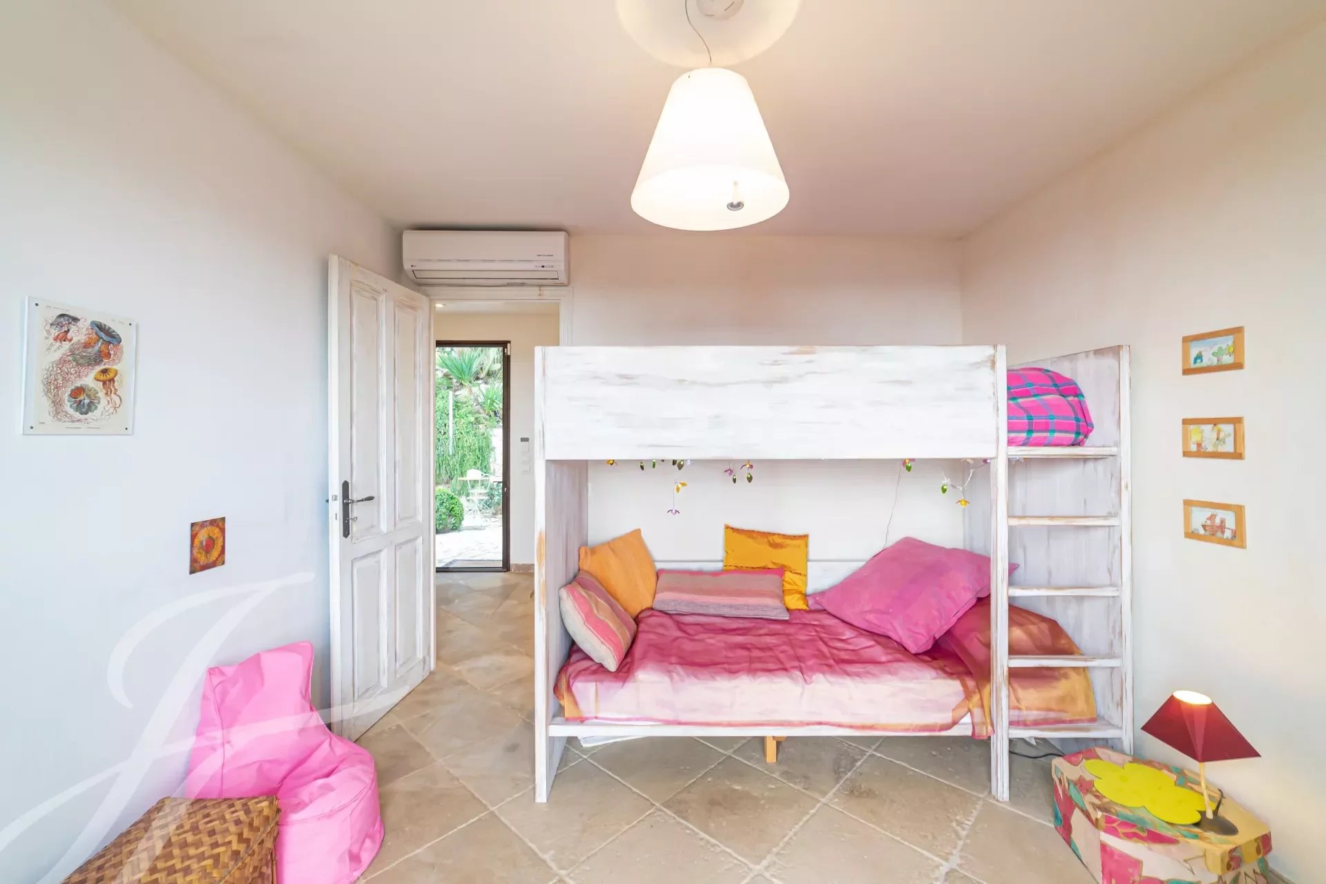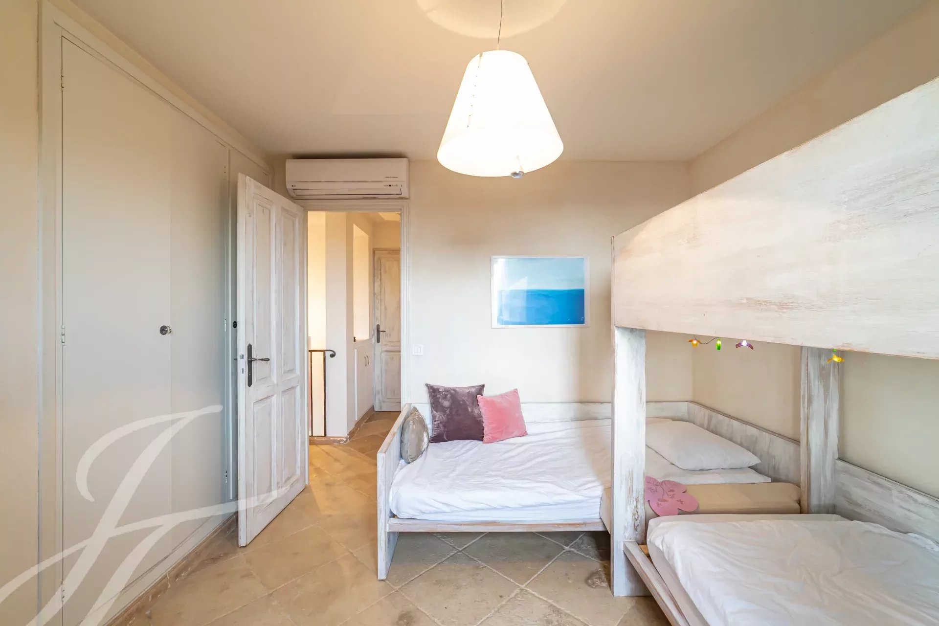 No exterior, o jardim paisagístico apresenta várias zonas de relaxamento: uma zona de piscina, um terraço sombreado por um bonito dossel e uma zona de aperitivos, todos com vista para um panorama excecional. Uma churrasqueira completa a disposição, permitindo-lhe desfrutar ao máximo das refeições ao ar livre.