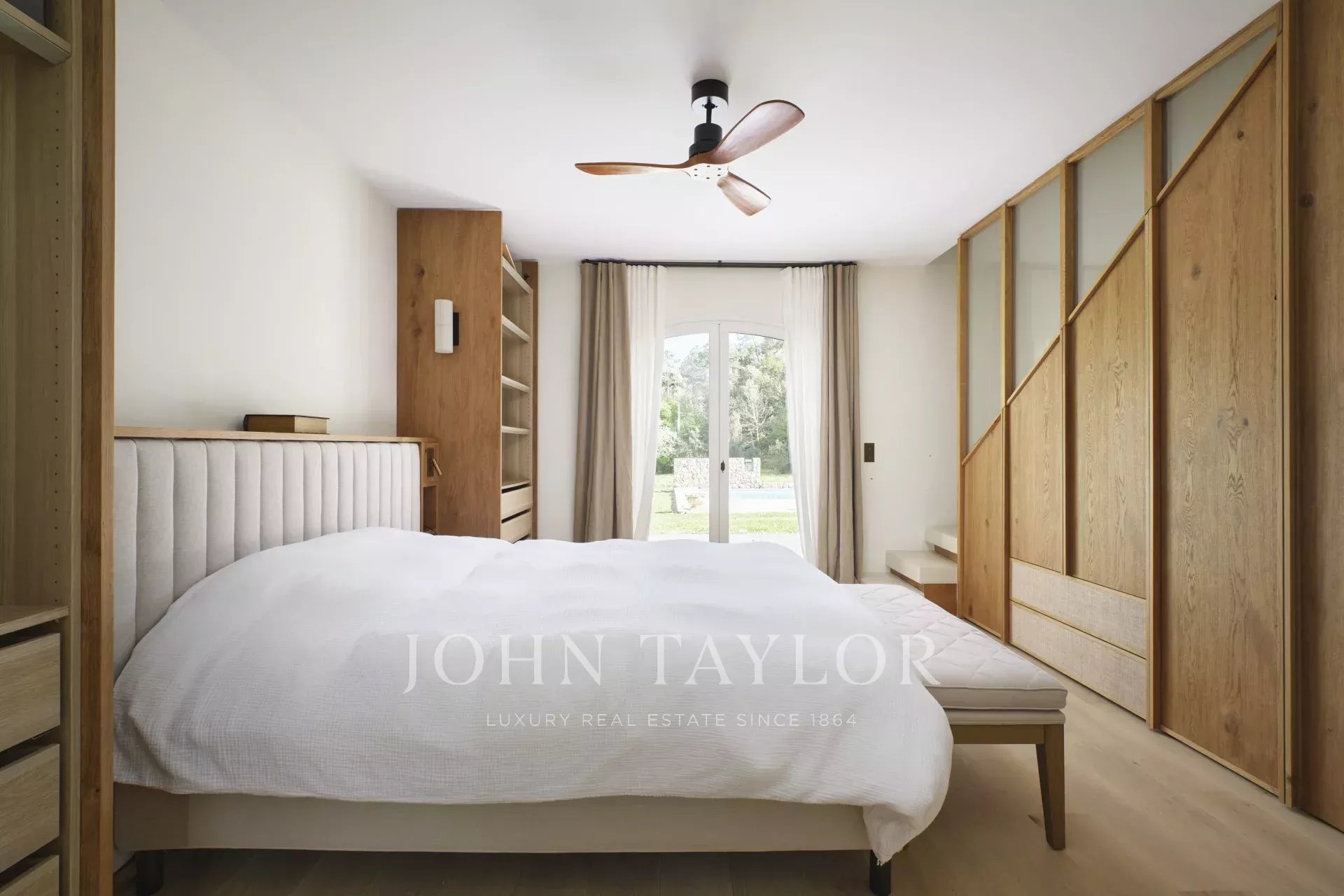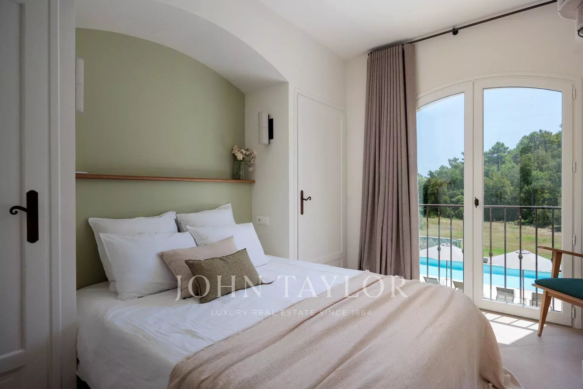 Uma suite principal com uma cama de 180 cm está situada no mesmo nível. Tem a sua própria casa de banho com duche, banheira e sanita, e também oferece acesso direto à piscina.