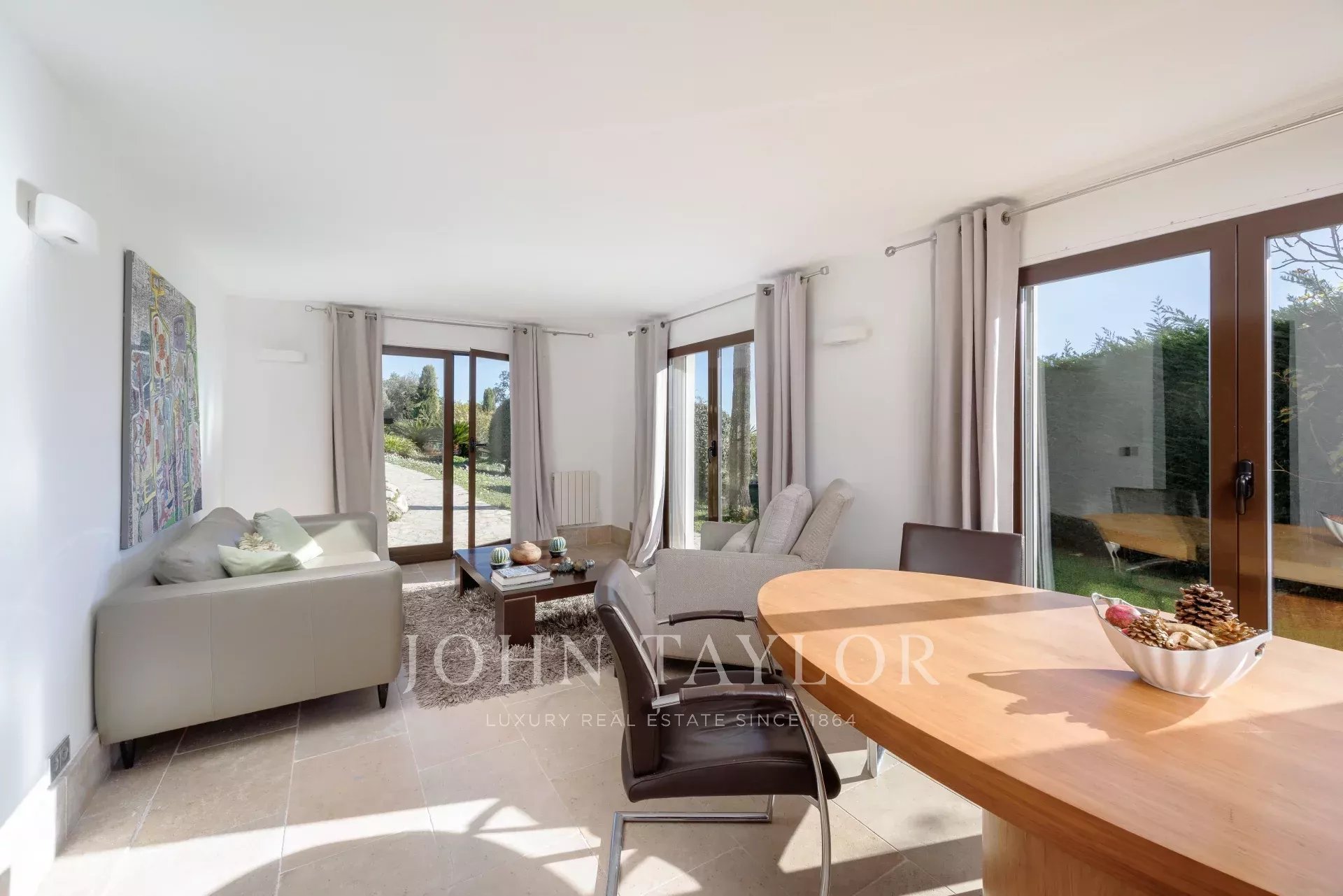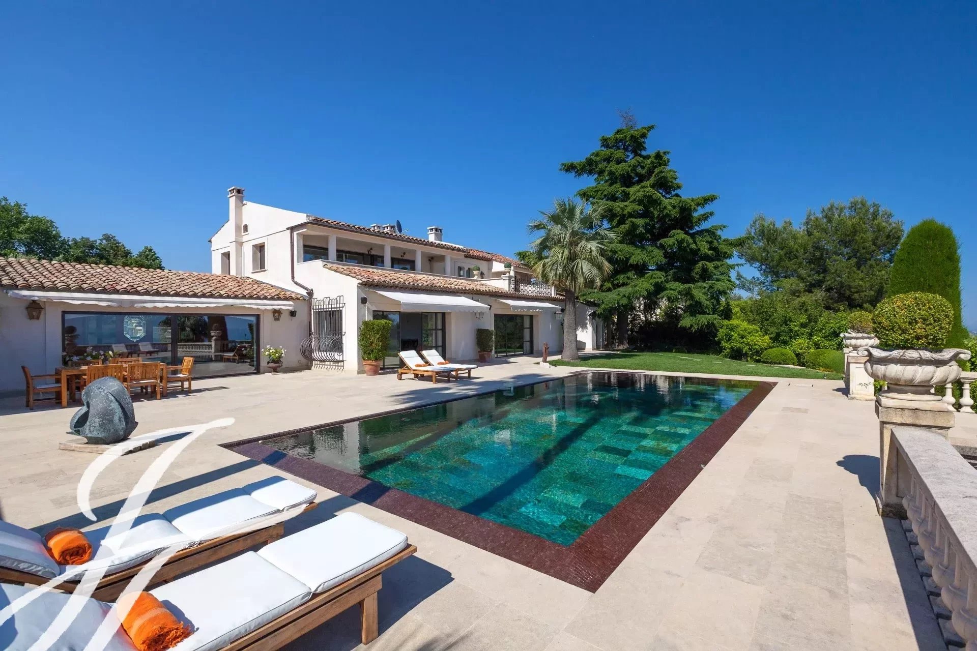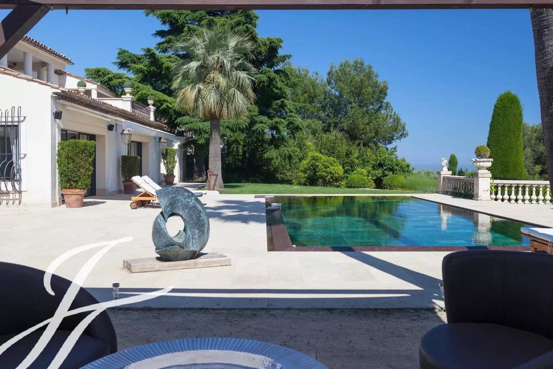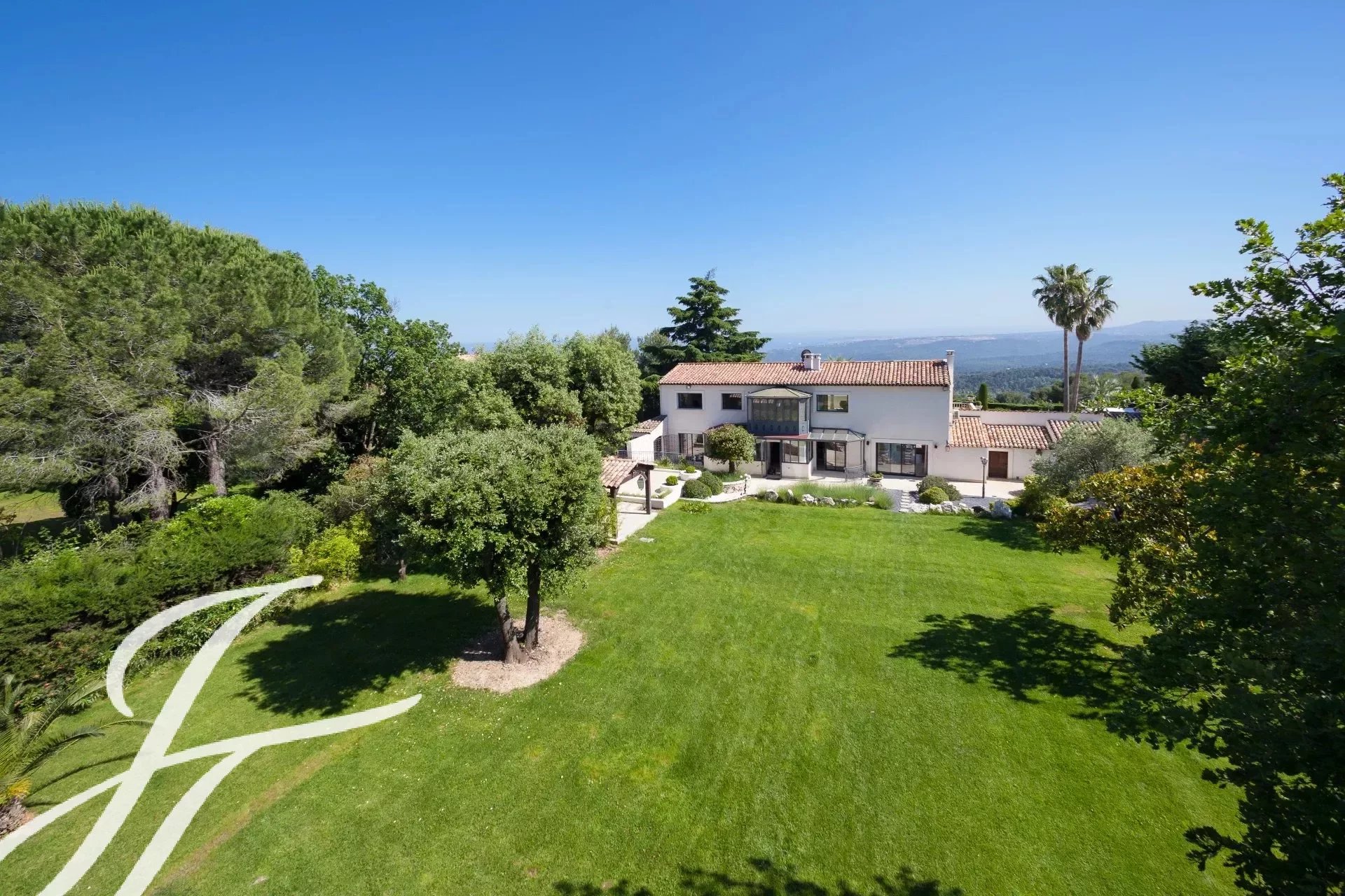 Banhada em luz graças à sua posição virada a sul, a propriedade possui 460 m² de elegância contemporânea situada em 3.500 m² de terreno plano e ajardinado.