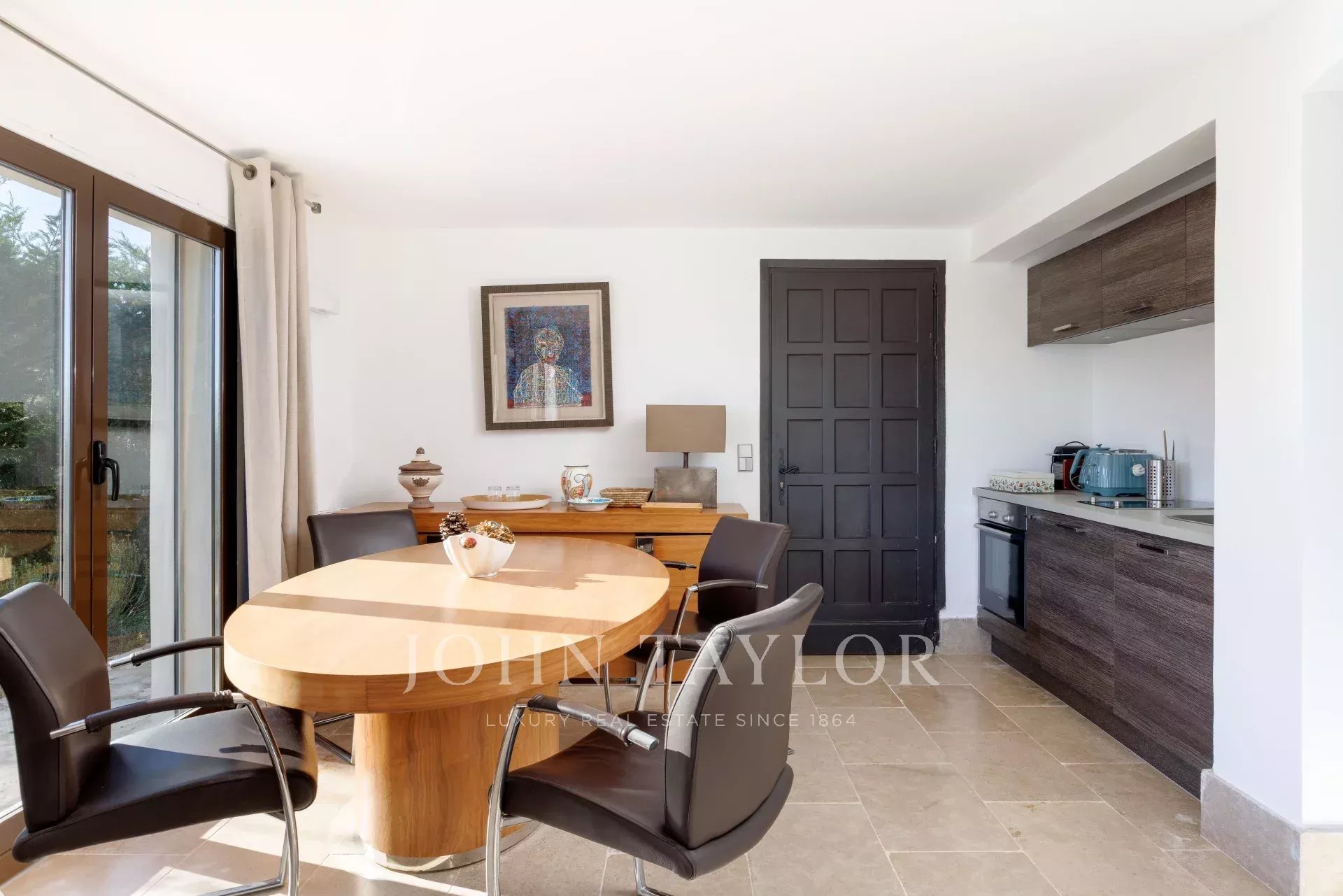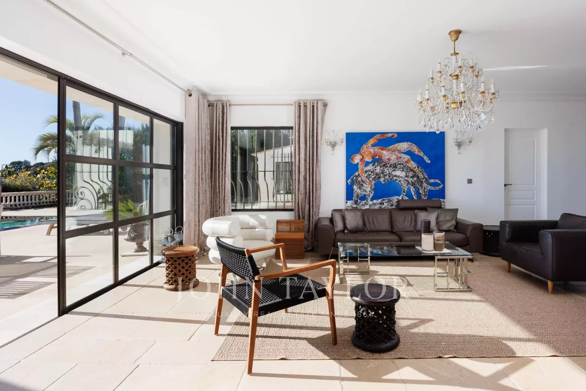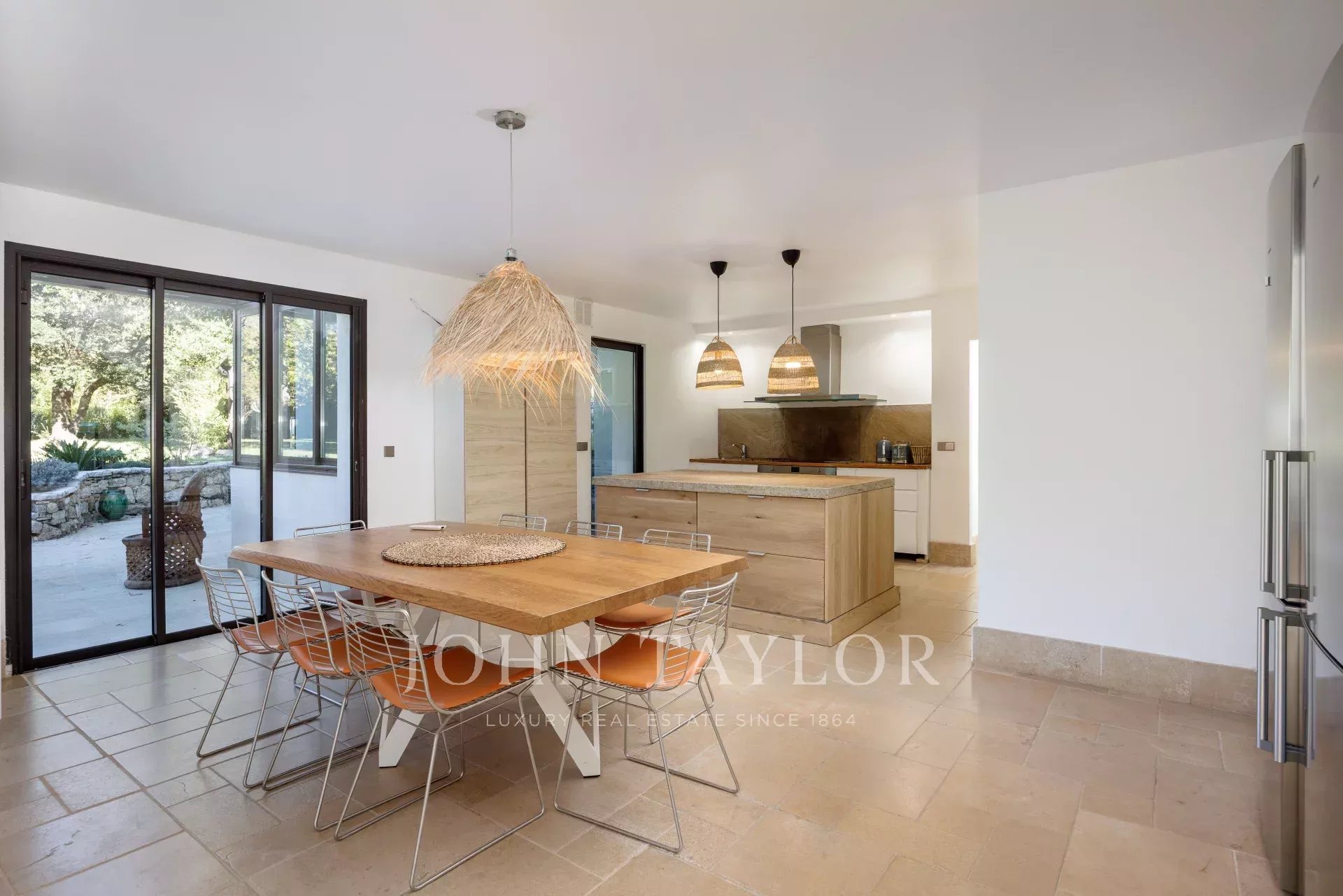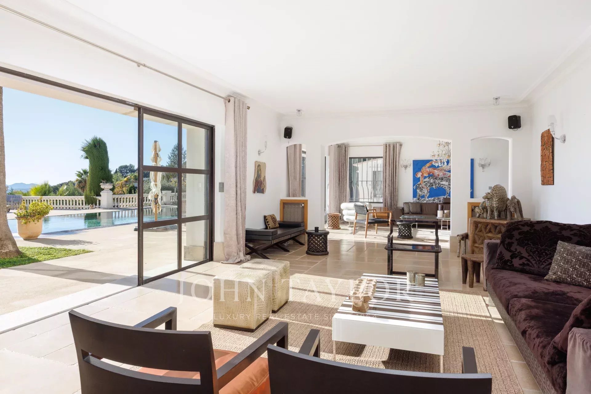 Banhada em luz graças à sua posição virada a sul, a propriedade possui 460 m² de elegância contemporânea situada em 3.500 m² de terreno plano e ajardinado.