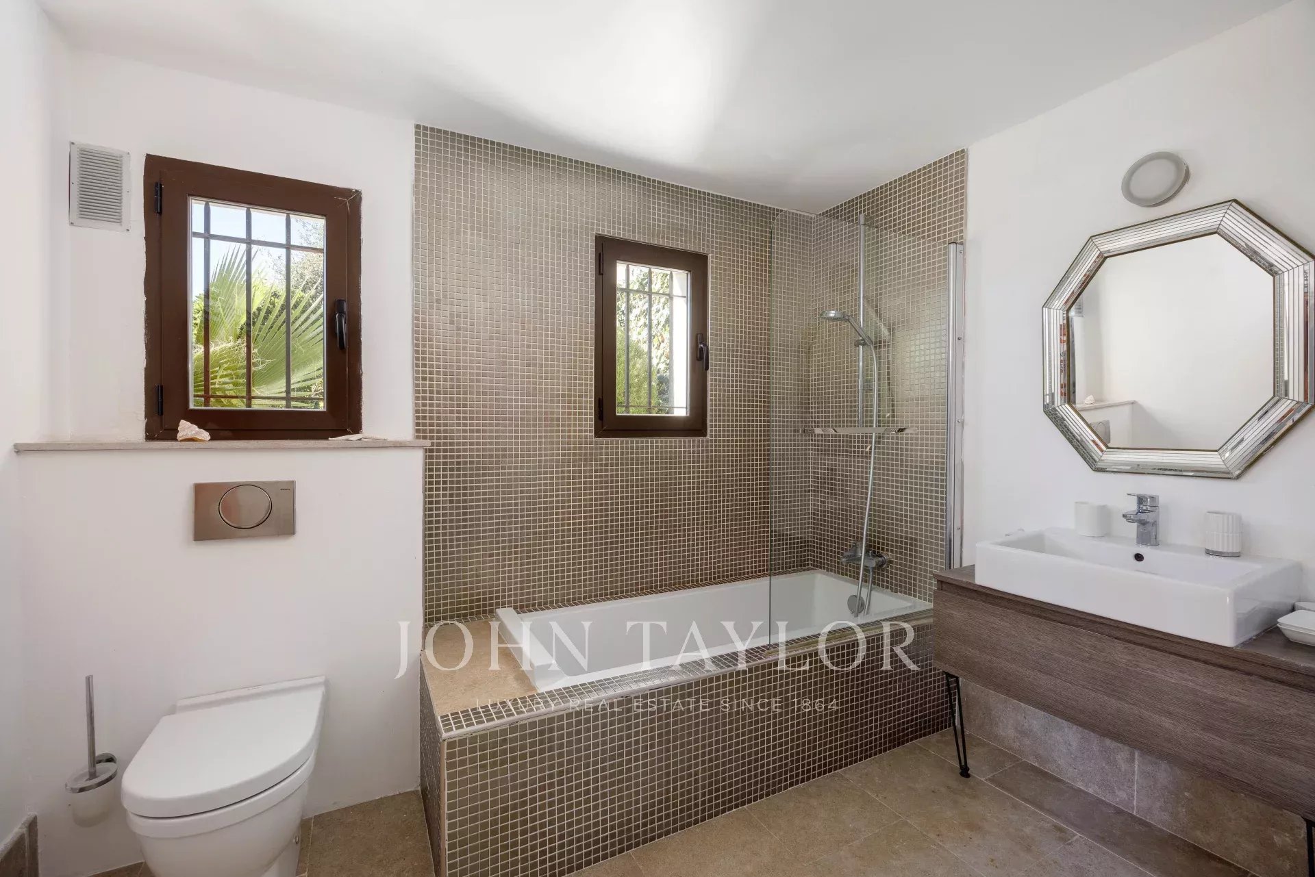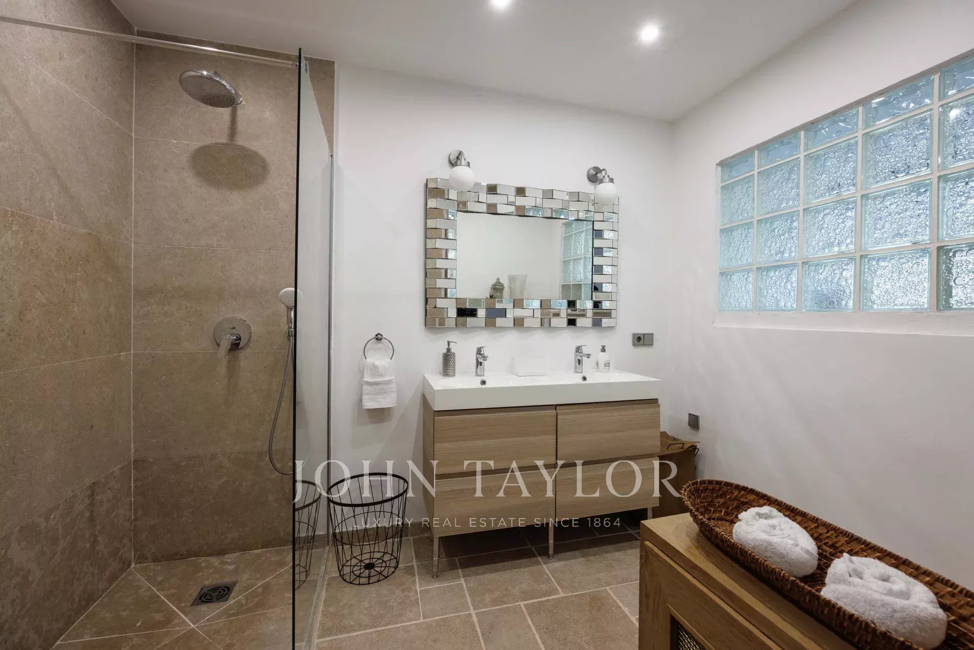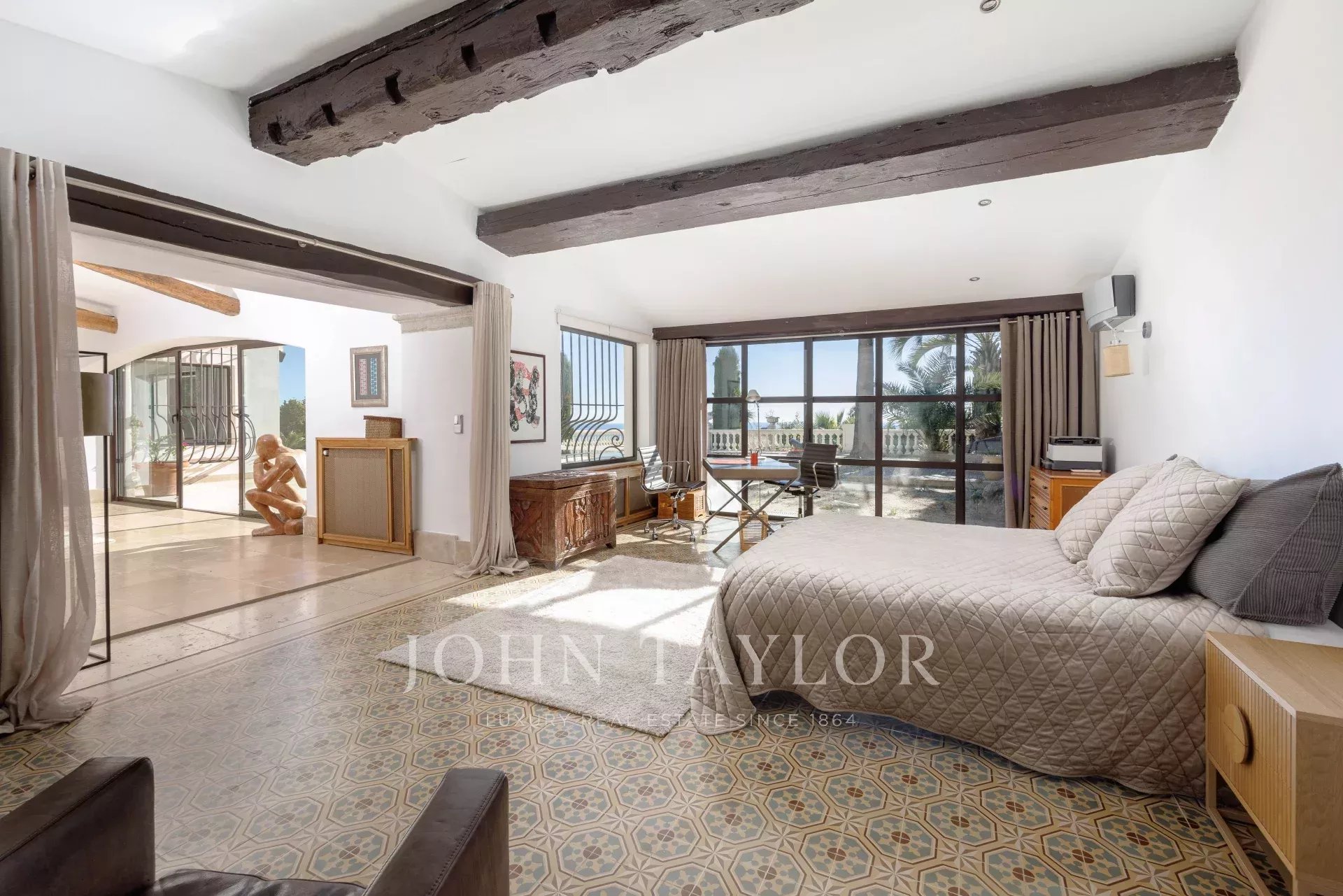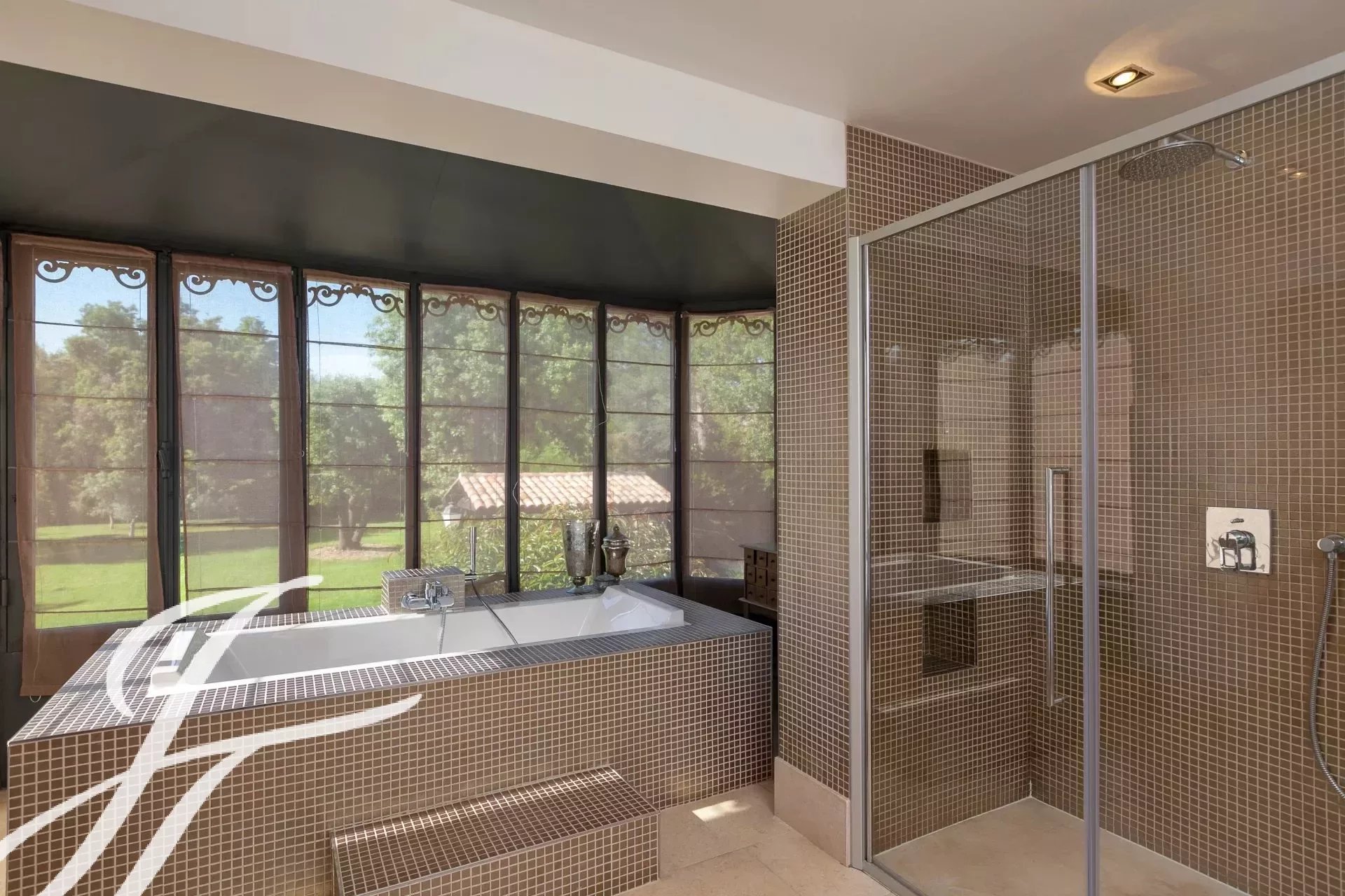Banhada em luz graças à sua posição virada a sul, a propriedade possui 460 m² de elegância contemporânea situada em 3.500 m² de terreno plano e ajardinado.